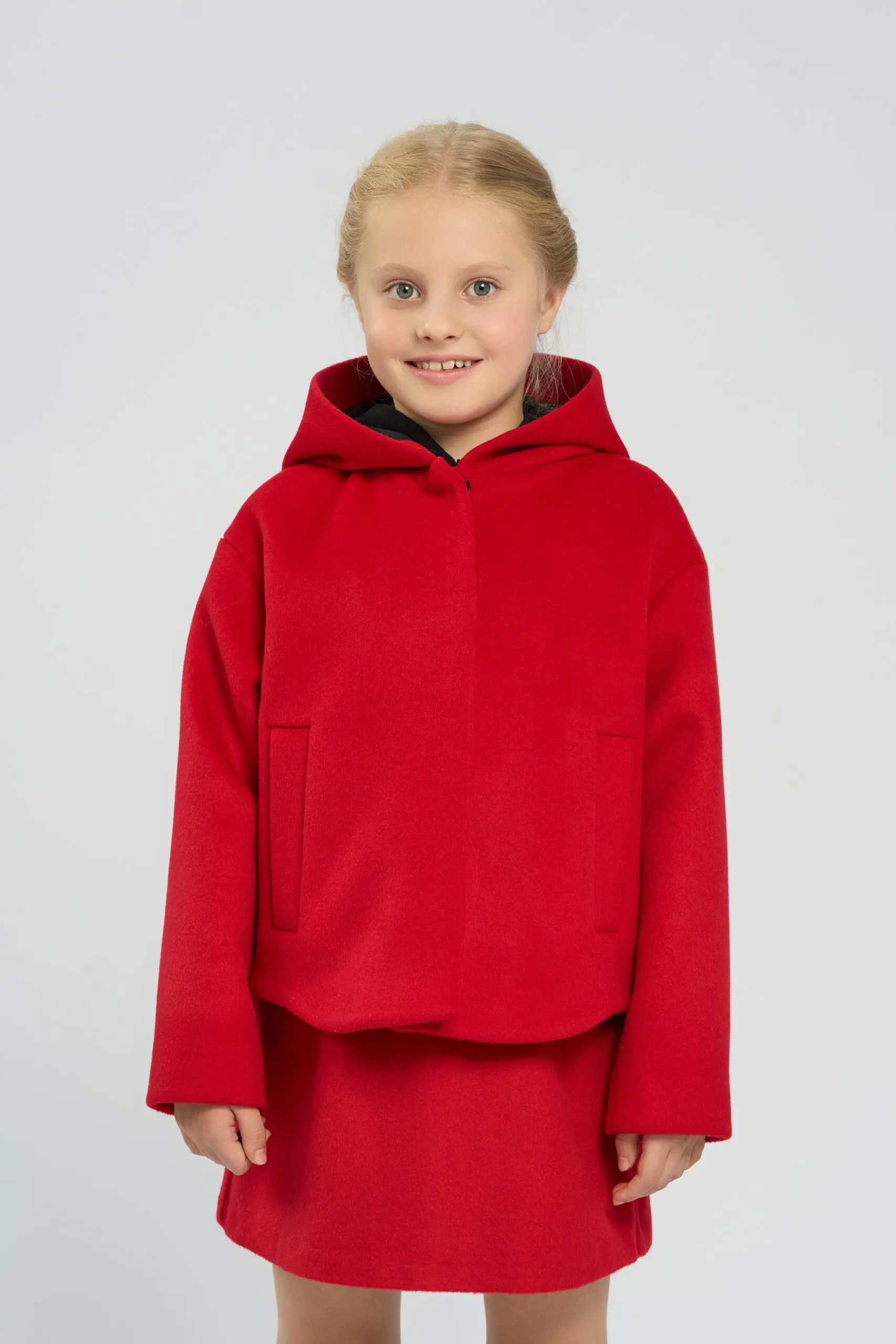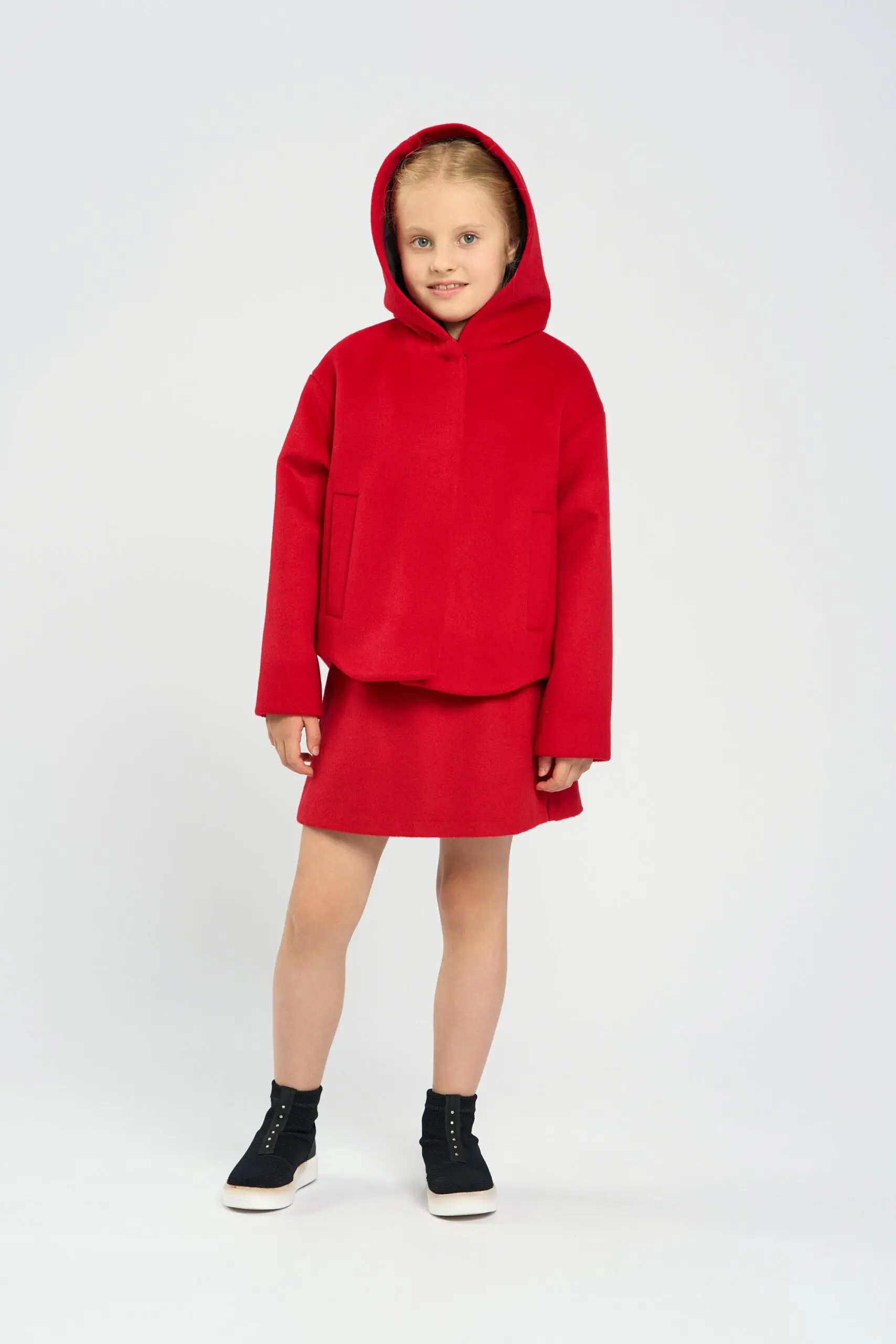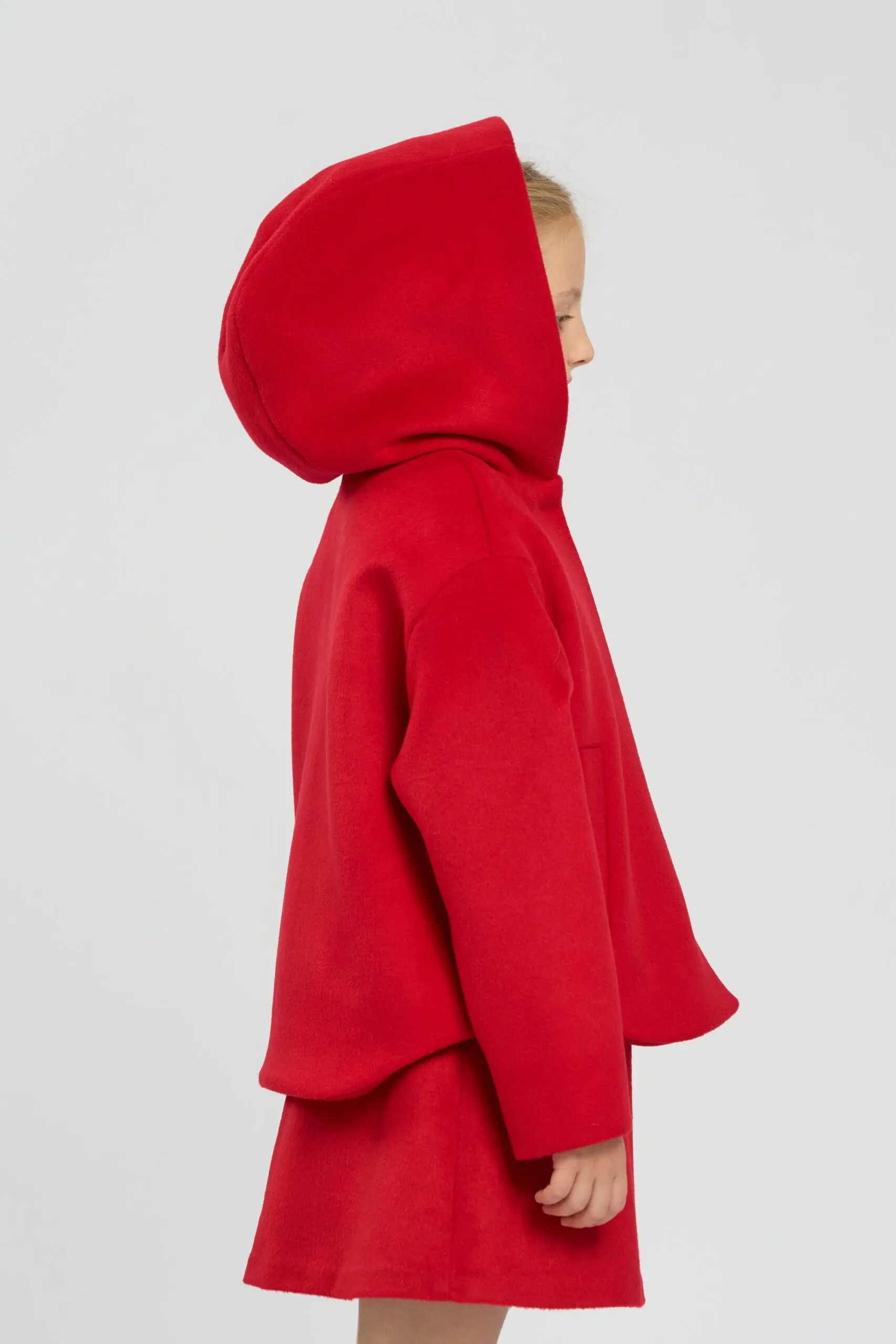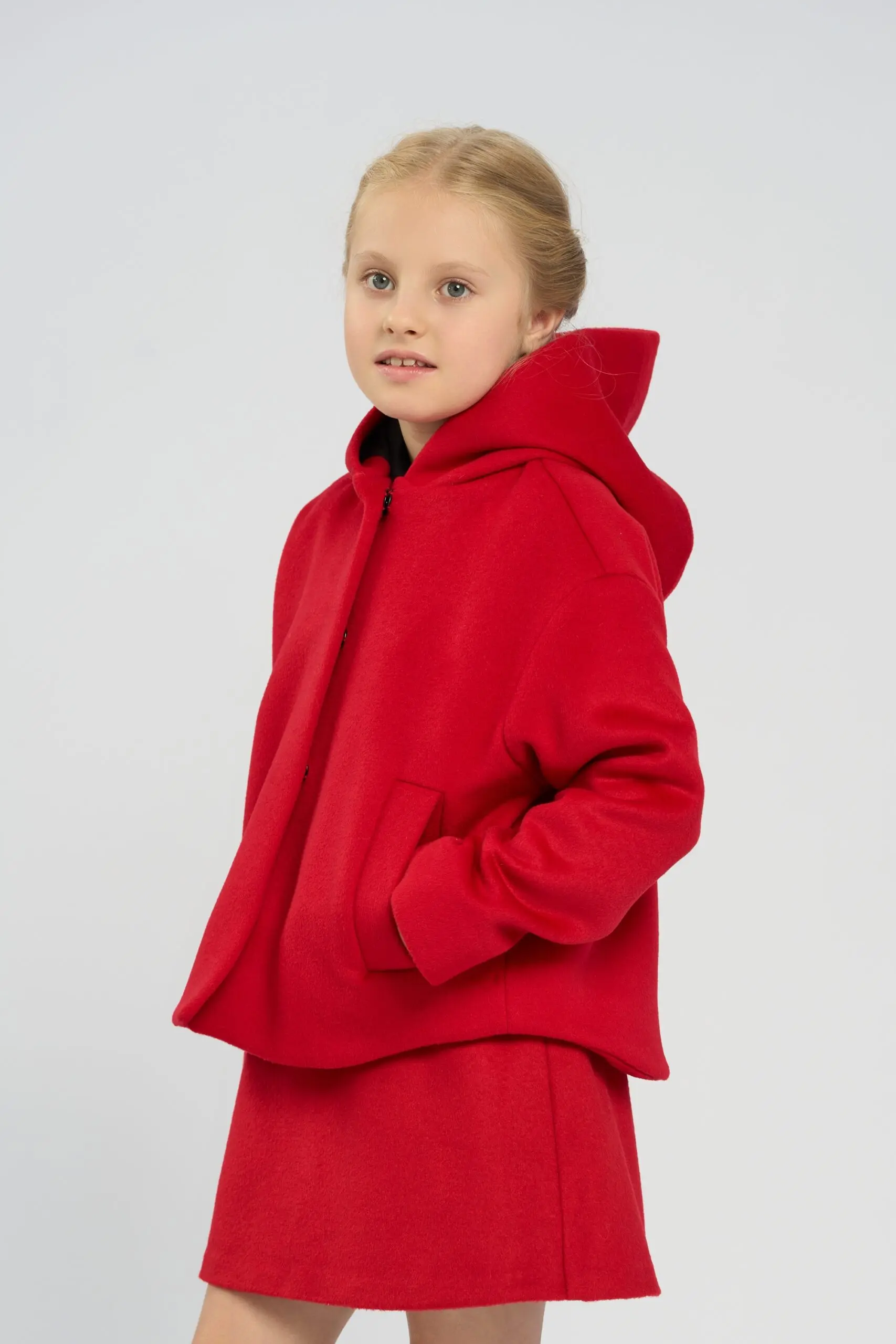Полупальто для девочки выполнено в акцентном красном цвете, что делает такую верхнюю одежду главной частью образа. Модель прямого силуэта дополнена капюшоном. Прорезные карманы по бокам и ... потайная застежка гармонично дополняют дизайн. Спущенная линия рукавов обеспечивает ребенку максимальный комфорт. Закругленная линия низа смягчает силуэт и добавляет одежде очарования. Наличие в составе ткани шерсти говорит о высоких тепловых свойствах одежды.
