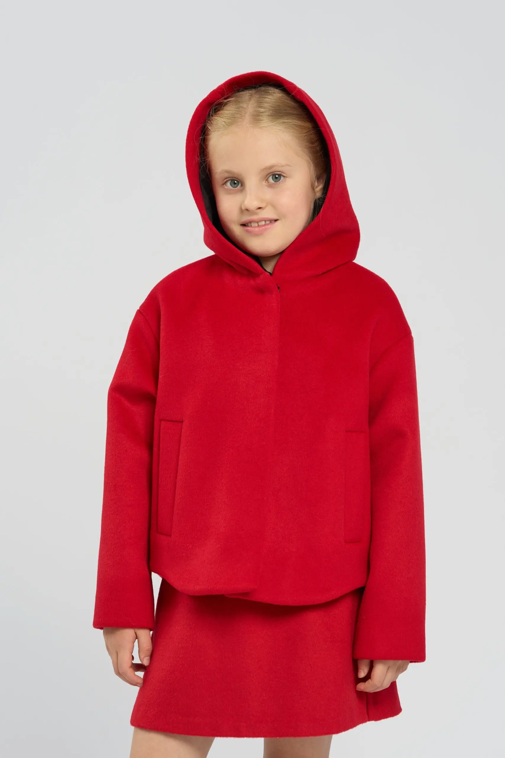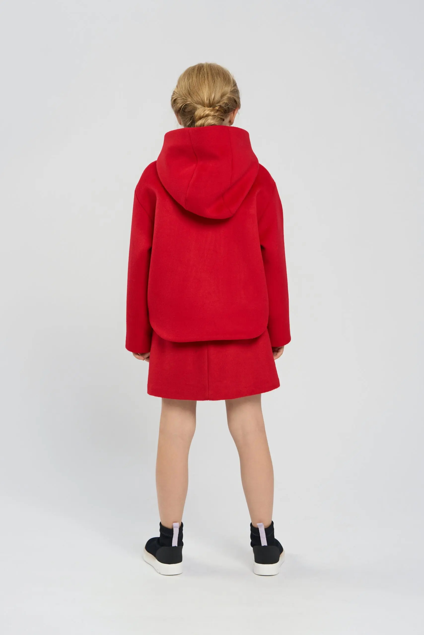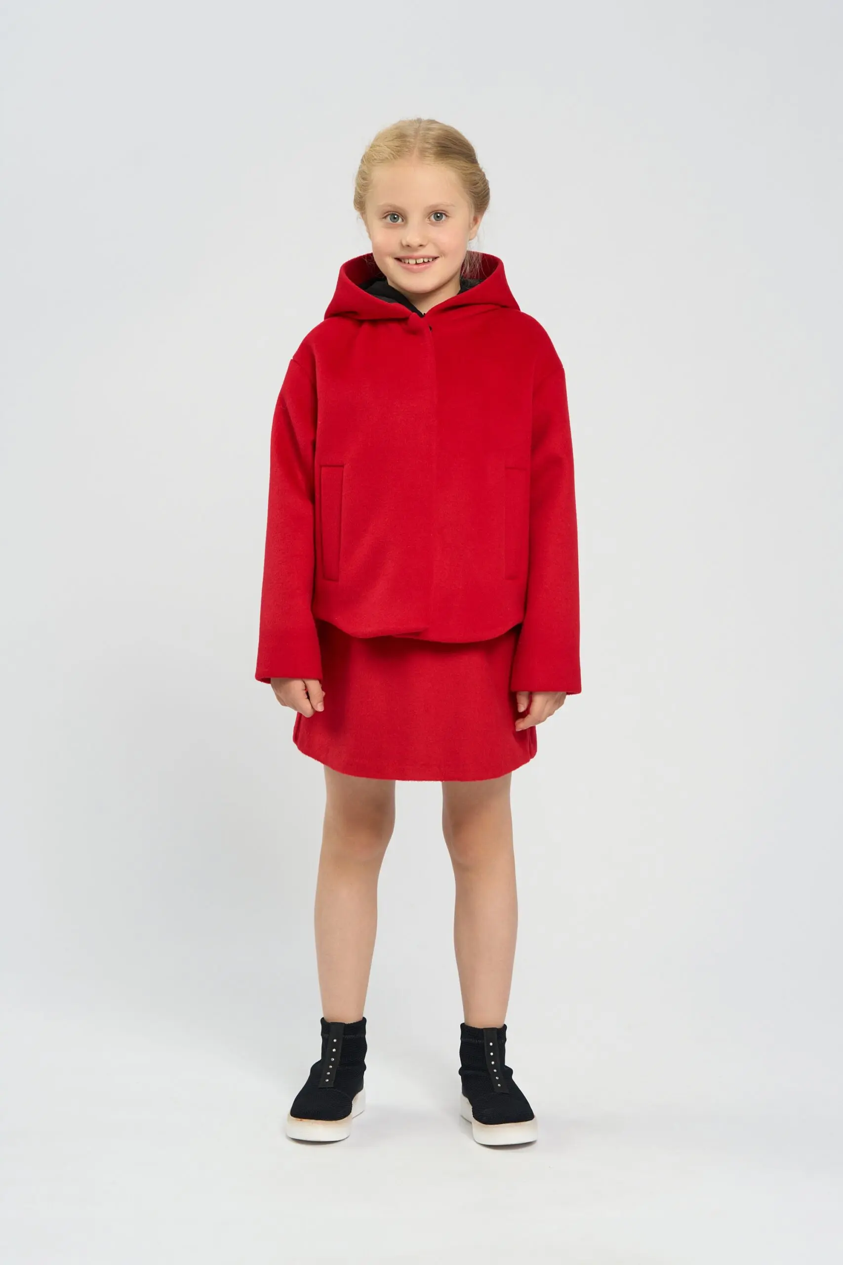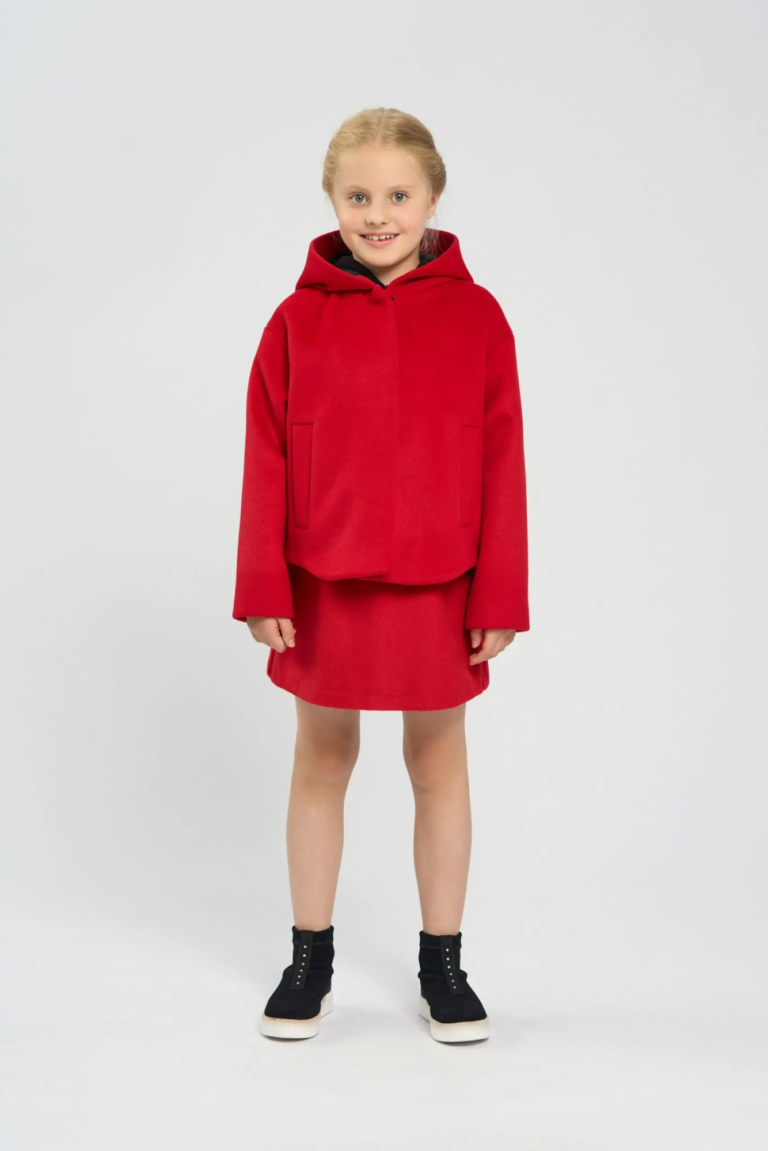Полупальто для девочки выполнено в акцентном красном цвете, что делает такую верхнюю одежду главной частью образа. Модель прямого силуэта дополнена капюшоном. Прорезные карманы по бокам и ... потайная застежка гармонично дополняют дизайн. Спущенная линия рукавов обеспечивает ребенку максимальный комфорт. Закругленная линия низа смягчает силуэт и добавляет одежде очарования. Наличие в составе ткани шерсти говорит о высоких тепловых свойствах одежды.