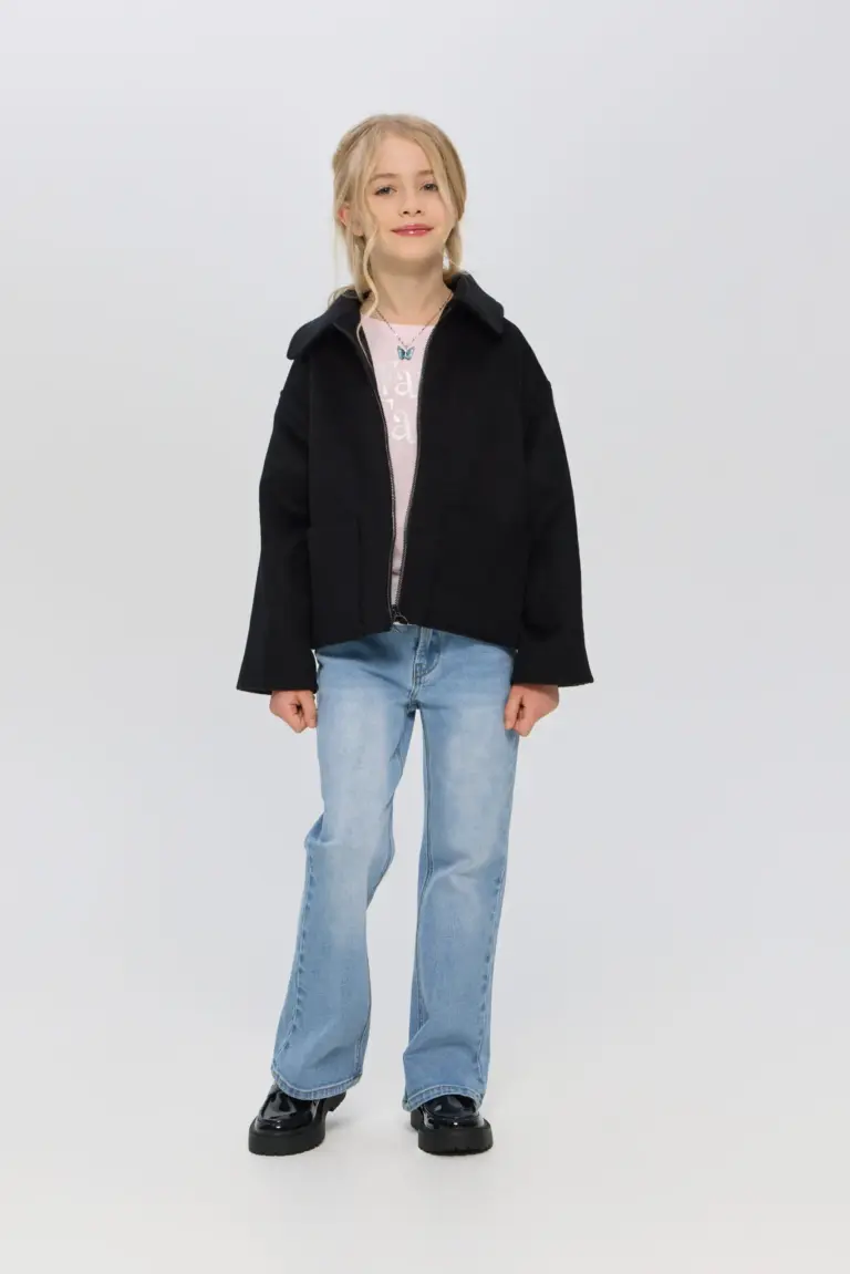 Полупальто −новый популярный тренд, который не сходит с подиумов. Еще одна замечательная модель для девочек в чёрном цвете. Стильное укороченное пальто с подкладкой из вискозы покоряет ... оригинальным фасоном и практичностью. Элегантный предмет гардероба свободного кроя из полушерстяной ткани идеально подходит для переменчивой весенней погоды. Маленькой моднице будет уютно и тепло во время прогулки.