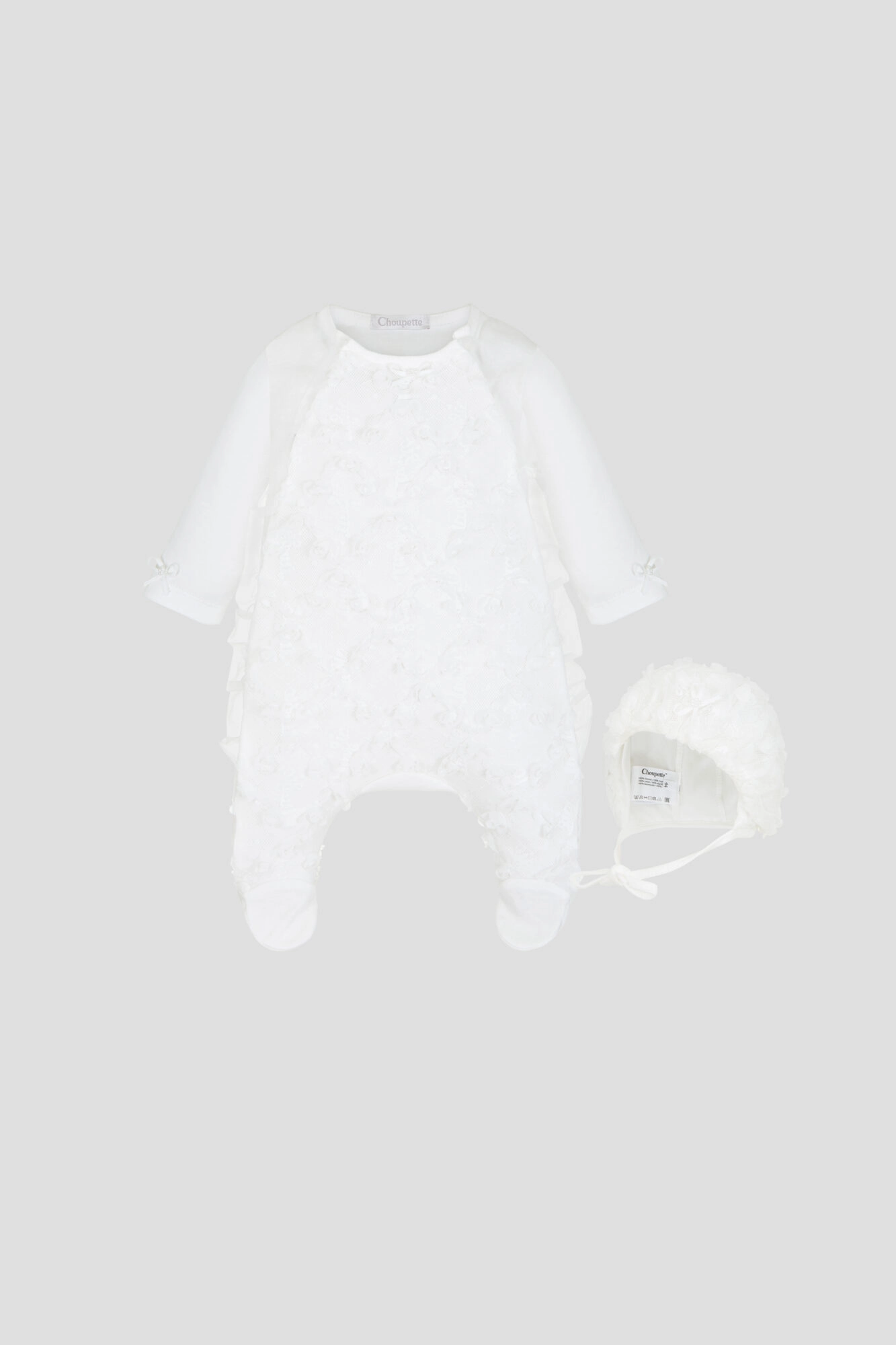 Встречайте самые важные моменты жизни вместе с нарядным комбинезоном в комплекте с чепчиком! Эта модель создана, чтобы подчеркнуть трогательную нежность малыша в день выписки из роддома, ... на фотосессии или семейном торжестве. Нежная цветочная вышивка добавляет образу изысканности, а продуманные детали — свободного кроя, длинные рукава и удобная застёжка на кнопках — гарантируют комфорт. Пусть первые праздники малыша будут по‑настоящему волшебными!