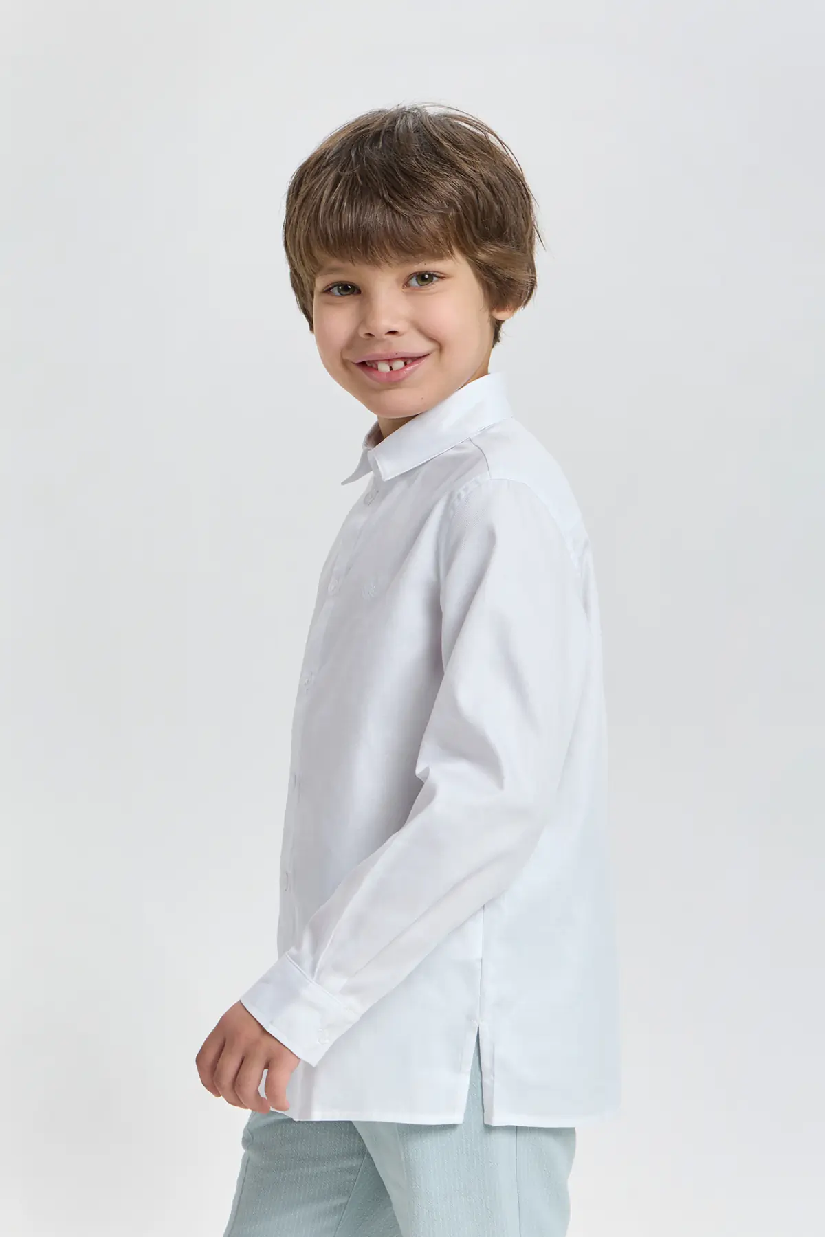 Классическая сорочка в белоснежном оттенке станет базовым элементом гардероба для мальчиков, стремящихся к аккуратному и безупречному внешнему виду. Модель прямого кроя выполнена из лёгкой, приятной к ... телу ткани, которая обеспечивает комфорт на протяжении всего дня. Изделие дополнено аккуратным отложным воротником, длинными рукавами с манжетами и застёжкой на пуговицы, а сдержанный дизайн подчёркивает универсальность и элегантность. Такая сорочка отлично подойдёт для школьных мероприятий, торжественных случаев и семейных праздников, помогая создавать гармоничные и стильные образы.