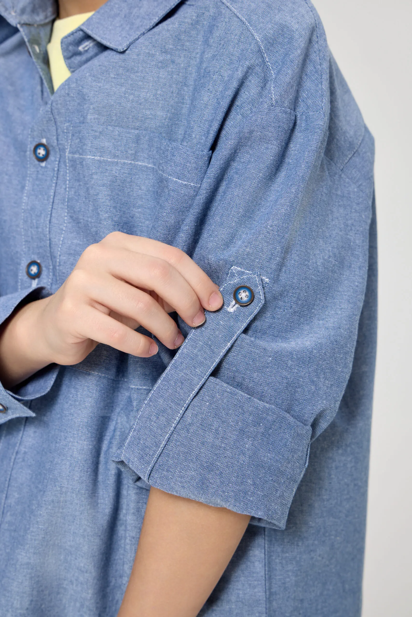 Удобная детская рубашка голубого цвета станет любимой одеждой маленького модника. Свободный крой не стесняет движений. Прямой силуэт создает простой и стильный образ. Удобная застежка на пуговицы ... по всей длине делает процесс переодевания быстрым и легким, позволяя ребенку самостоятельно справляться с этой задачей. Стильный декор в виде объемного кармана добавляет функциональности: в нем можно хранить разные мелочи. Регулировка длины на рукавах позволяет адаптировать рубашку под любую погоду. Мягкий дышащий материал обеспечит комфорт в течение всего дня, позволяя коже дышать и предотвращая раздражение. Легкость в уходе за тканью – дополнительное преимущество для занятых родителей.