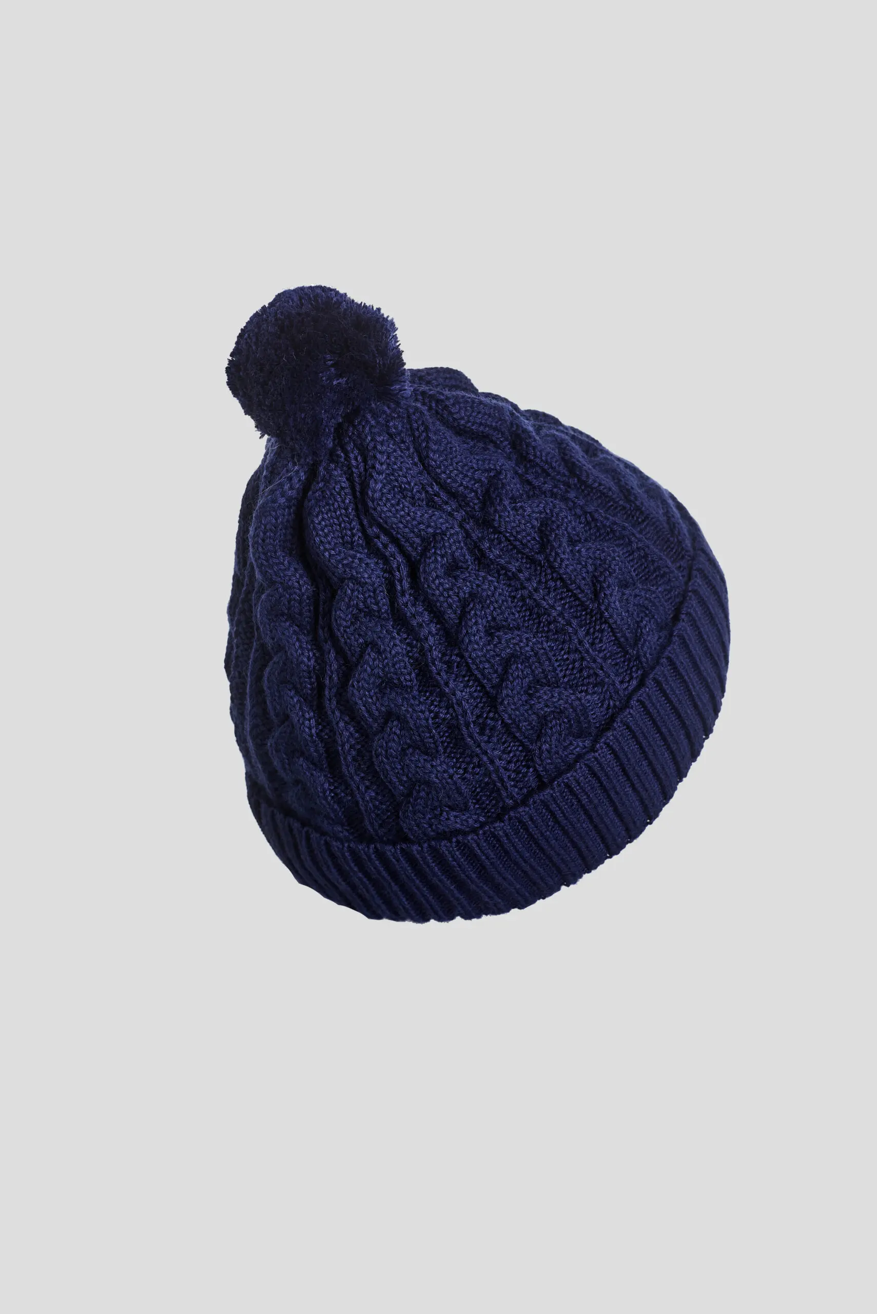 Шапка с крупными косами и помпоном из пряжи