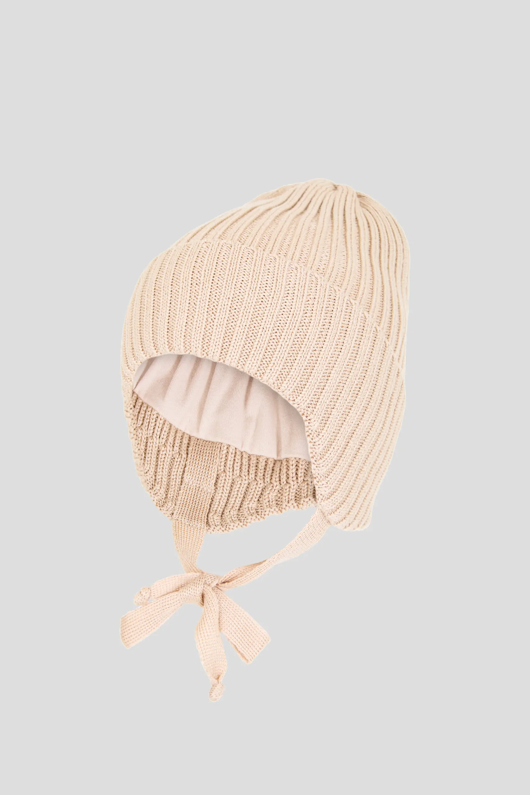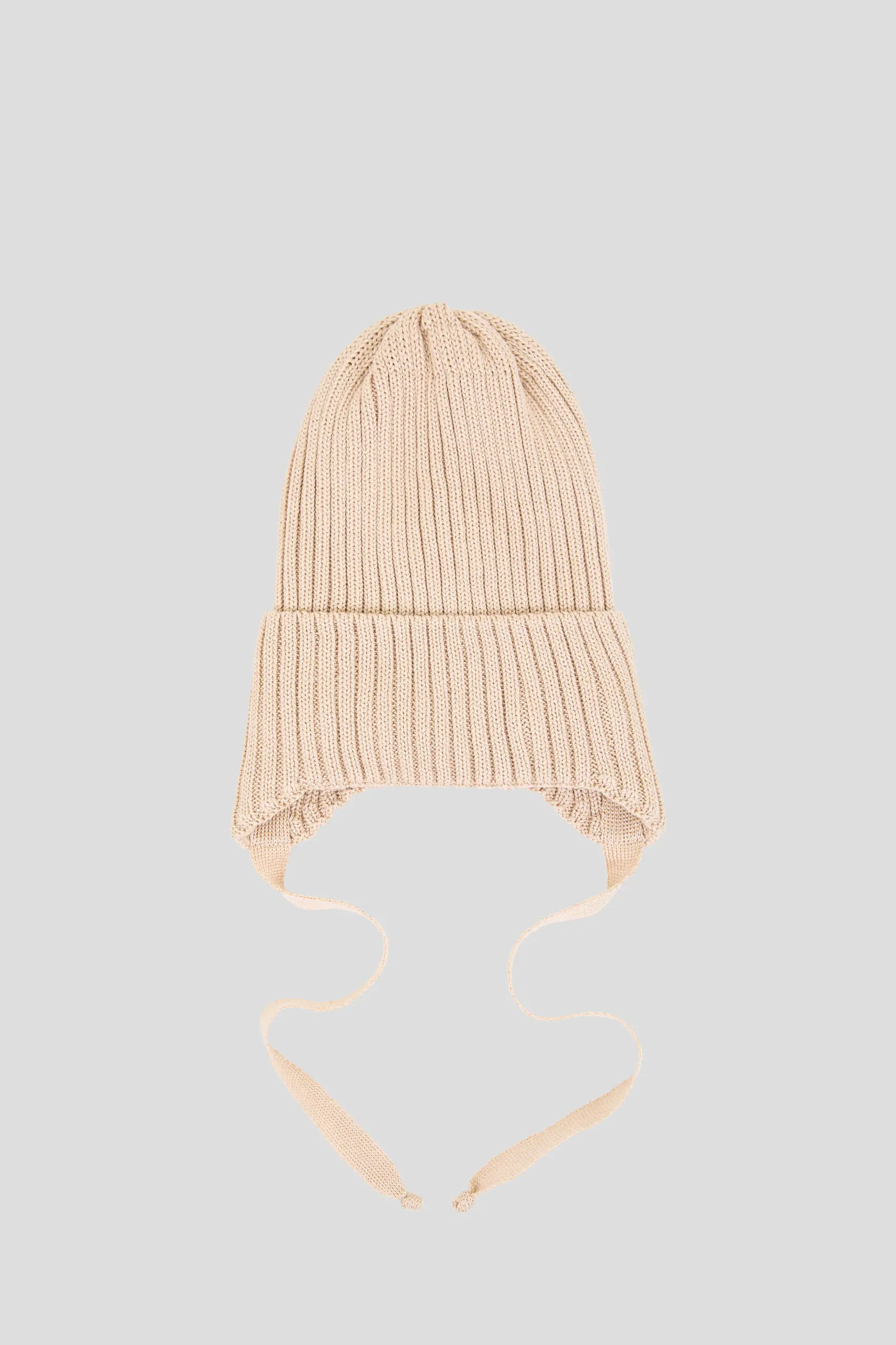 Детская вязаная шапка бежевого цвета — это идеальный аксессуар для холодной погоды. Она выполнена из мягкой и теплой пряжи. Подкладка из натурального материала гарантирует отличную воздухопроницаемость. Надежную ... фиксацию на голове обеспечивают длинные завязки.