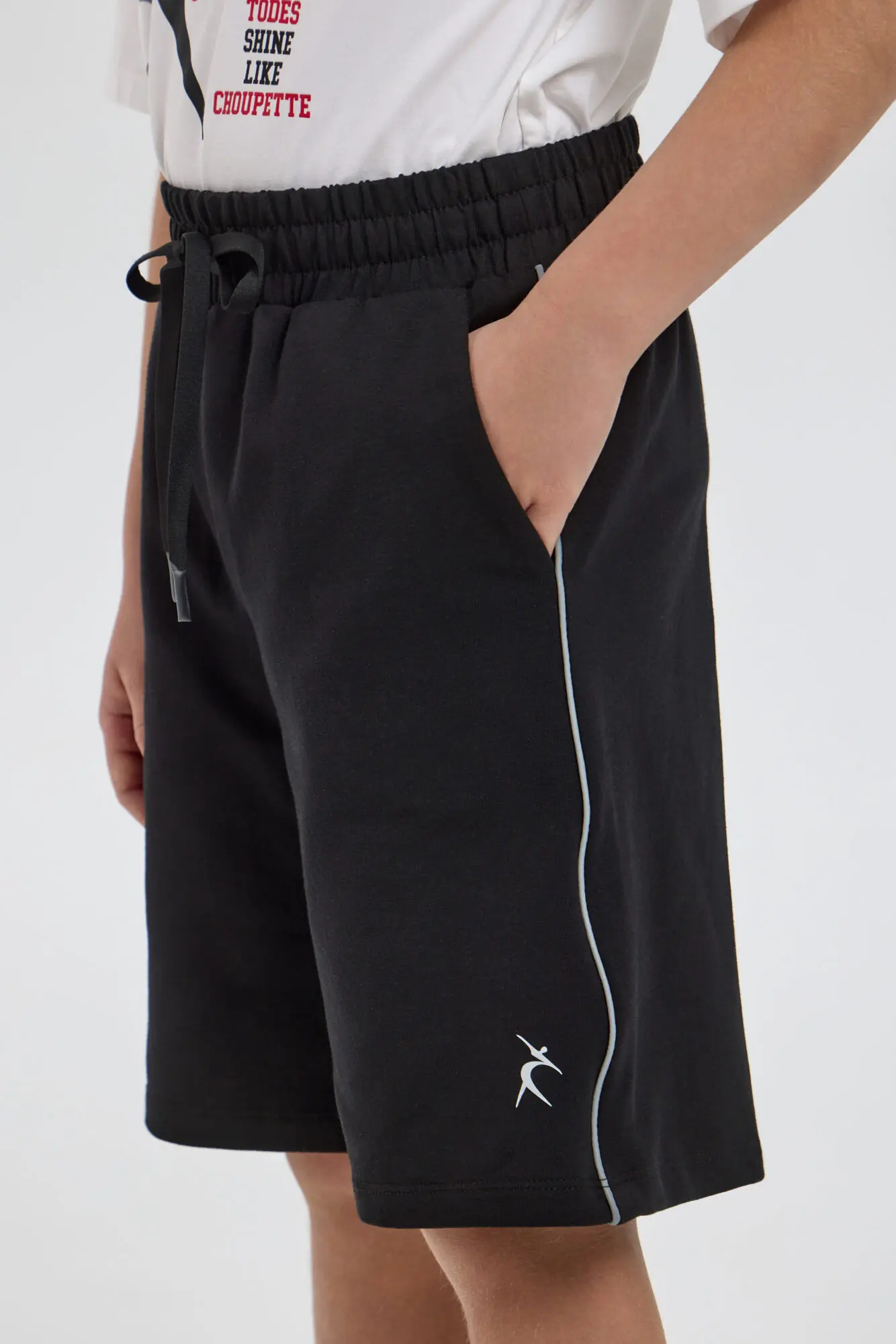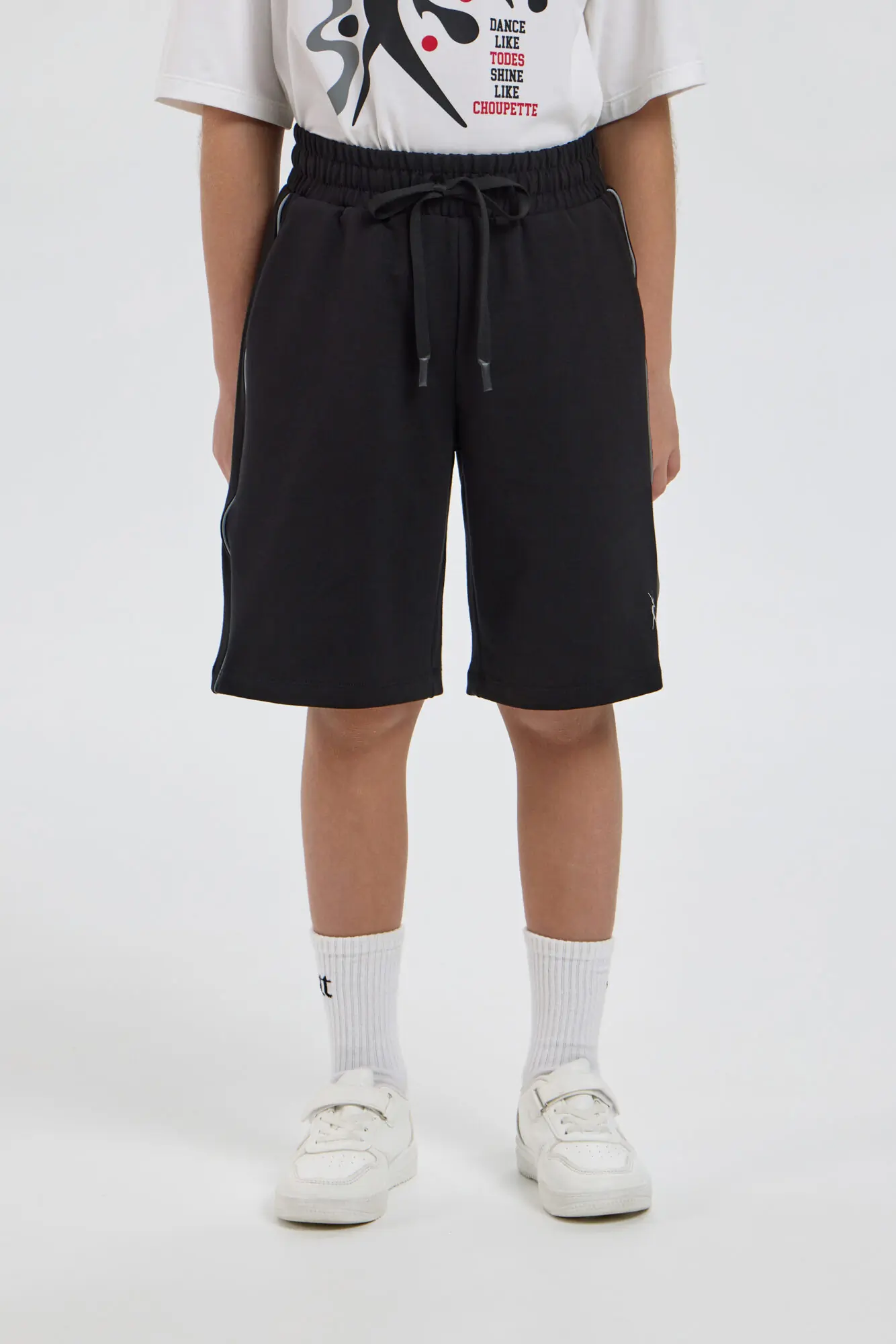 Чёрные спортивные шорты из коллекции TODES х Choupette. Модель оснащена регулируемым поясом и светоотражающим кантом. За счёт продуманного кроя и эластичных материалов обеспечивает полную свободу и ... удобство при активном движении. Подходит для тренировок, танцевальных батлов, выступлений, репетиций и повседневного использования в стилистике стрит- и хип-хоп культуры. Светоотражающие элементы делают эту модель универсальной для создания как сценических, так и уличных образов.