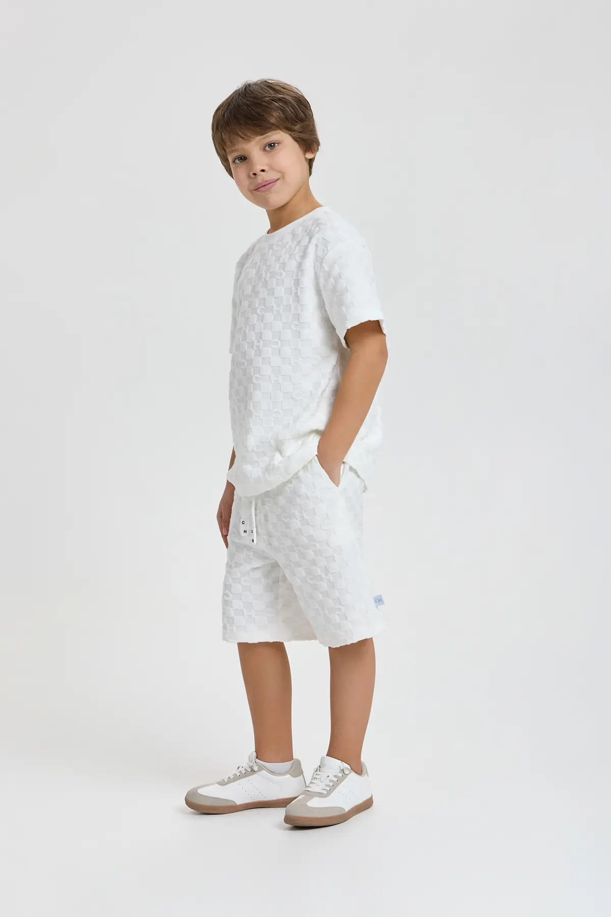 Стильные шорты в нежном молочно-белом оттенке подойдут мальчикам, выбирающим лаконичные и изящные решения для праздничного гардероба. Модель прямого силуэта выполнена из фактурной ткани с рельефной поверхностью, ... придающей образу глубину и выразительность. Пояс на мягкой резинке дополнен регулируемым шнурком, обеспечивая комфортную посадку, а сдержанный дизайн подчёркивает современность и аккуратность изделия. Эти шорты отлично подойдут для торжественных событий, семейных встреч и летних праздников, где важны удобство и стиль.