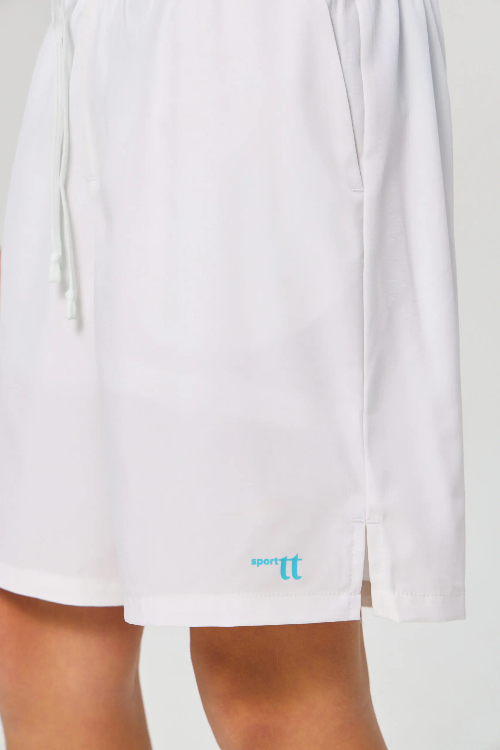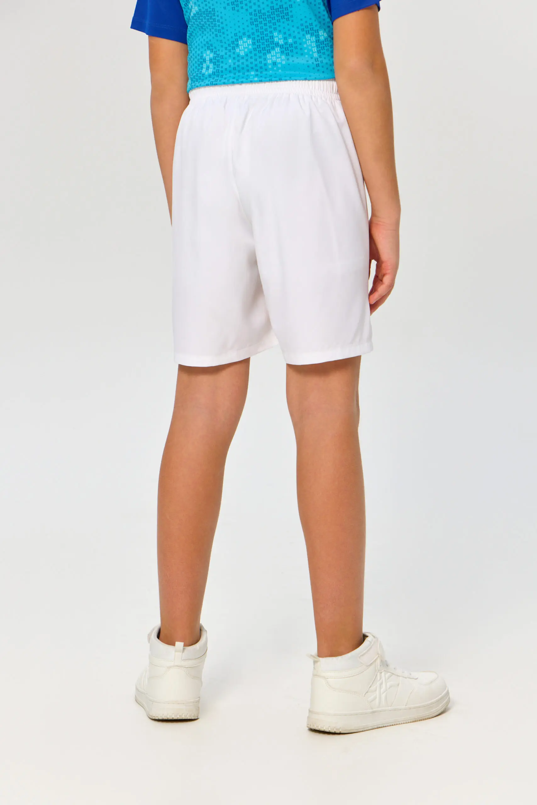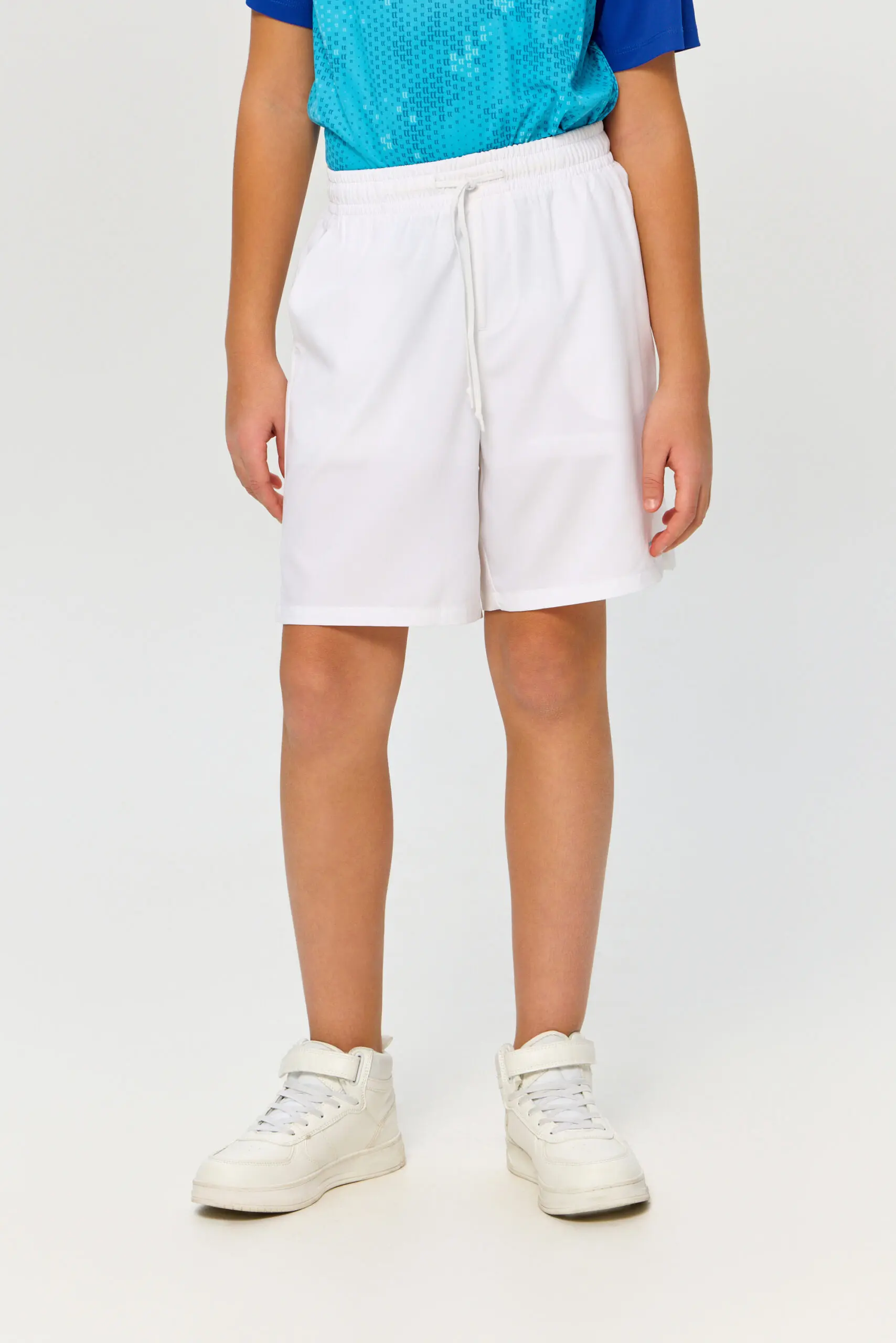 Для игры в теннис выбирайте белые спортивные шорты для мальчика. Модель свободного кроя не сковывает движений, а эластичный пояс с регулируемой кулиской гарантирует идеальную посадку по ... фигуре. В боковых карманах удобно хранить теннисный мяч. Современный эластичный спортивный трикотаж с технологией влагоотведения эффективно удаляет влагу, поддерживая кожу ребенка сухой во время тренировок.