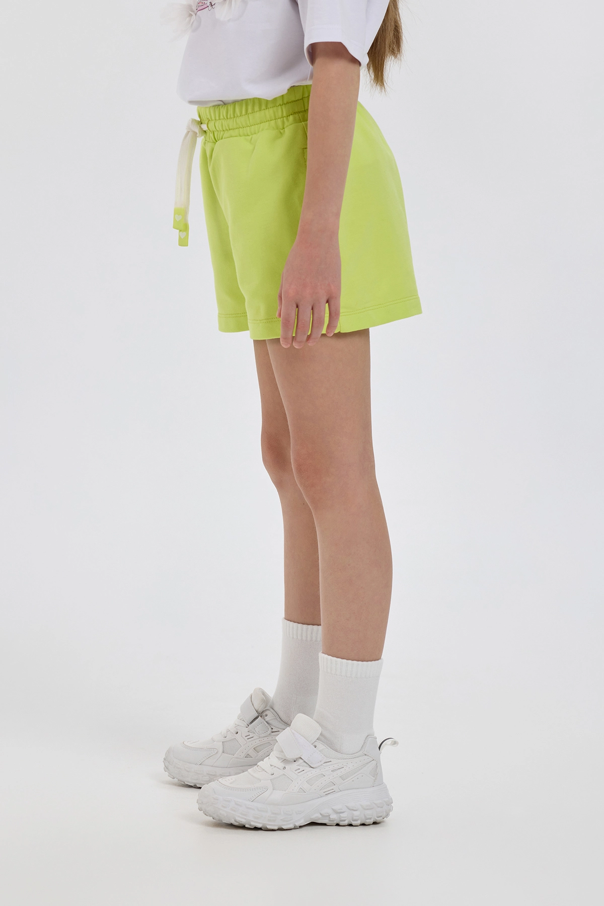 Стильные спортивные шорты насыщенного лаймового оттенка идеально подходят для тренировок, танцевальных занятий, активных игр и повседневной носки. Модель свободного кроя выполнена из мягкого и комфортного трикотажа, ... который обеспечивает свободу движений и удобство в течение всего дня. Эластичный пояс дополнен регулируемым шнурком, позволяющим легко адаптировать посадку по фигуре. Аккуратные подвороты по низу придают изделию аккуратный и современный вид. Боковые карманы добавляют функциональности. Шорты легко сочетаются с футболками, топами и худи, а также гармонично смотрятся с кроссовками и спортивной обувью. Универсальная модель станет отличным выбором для занятий в студии, репетиций, прогулок и отдыха. Яркая неоново-лаймовая цветовая гамма соответствует актуальным трендам спортивной и уличной моды, делая образ заметным и стильным.