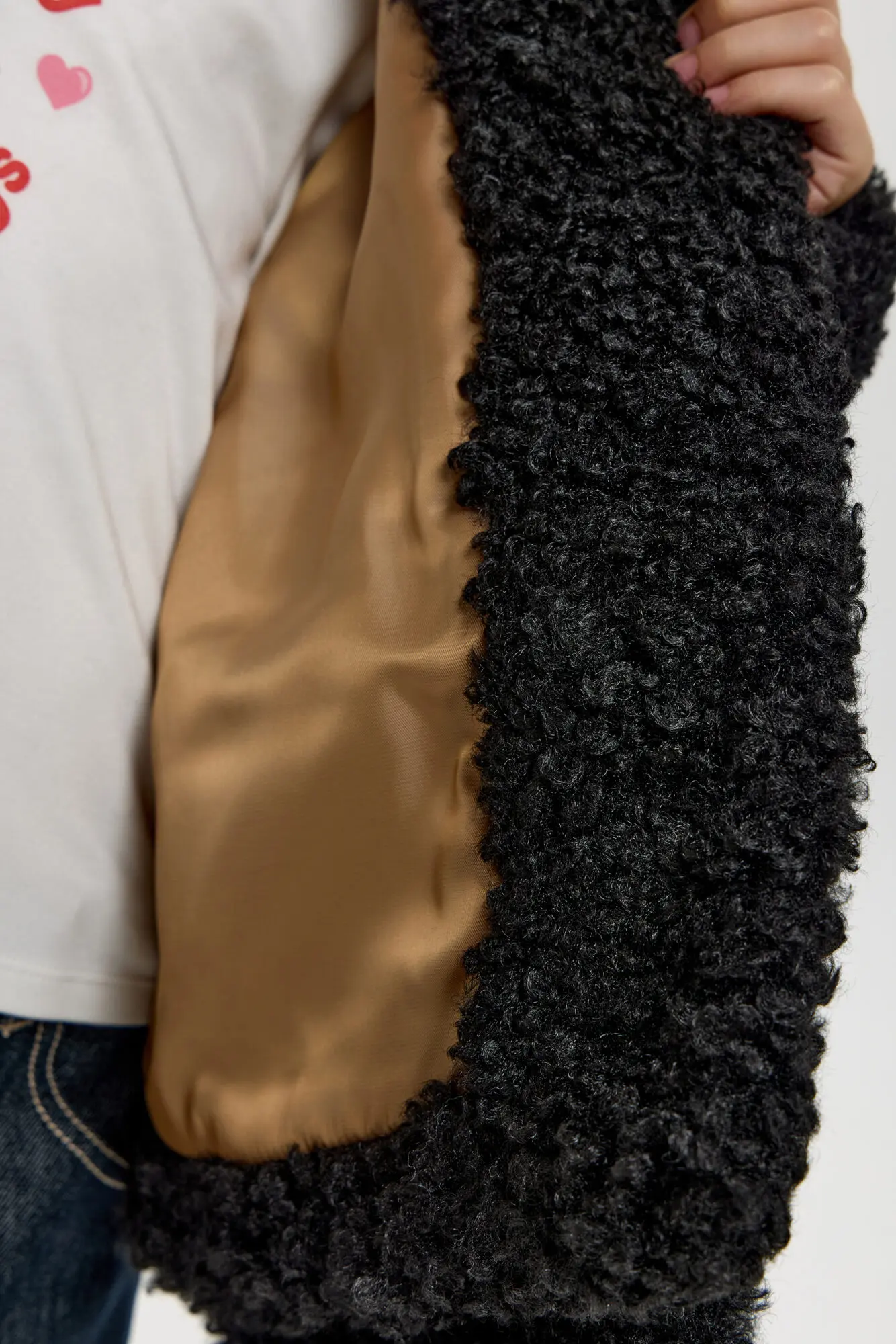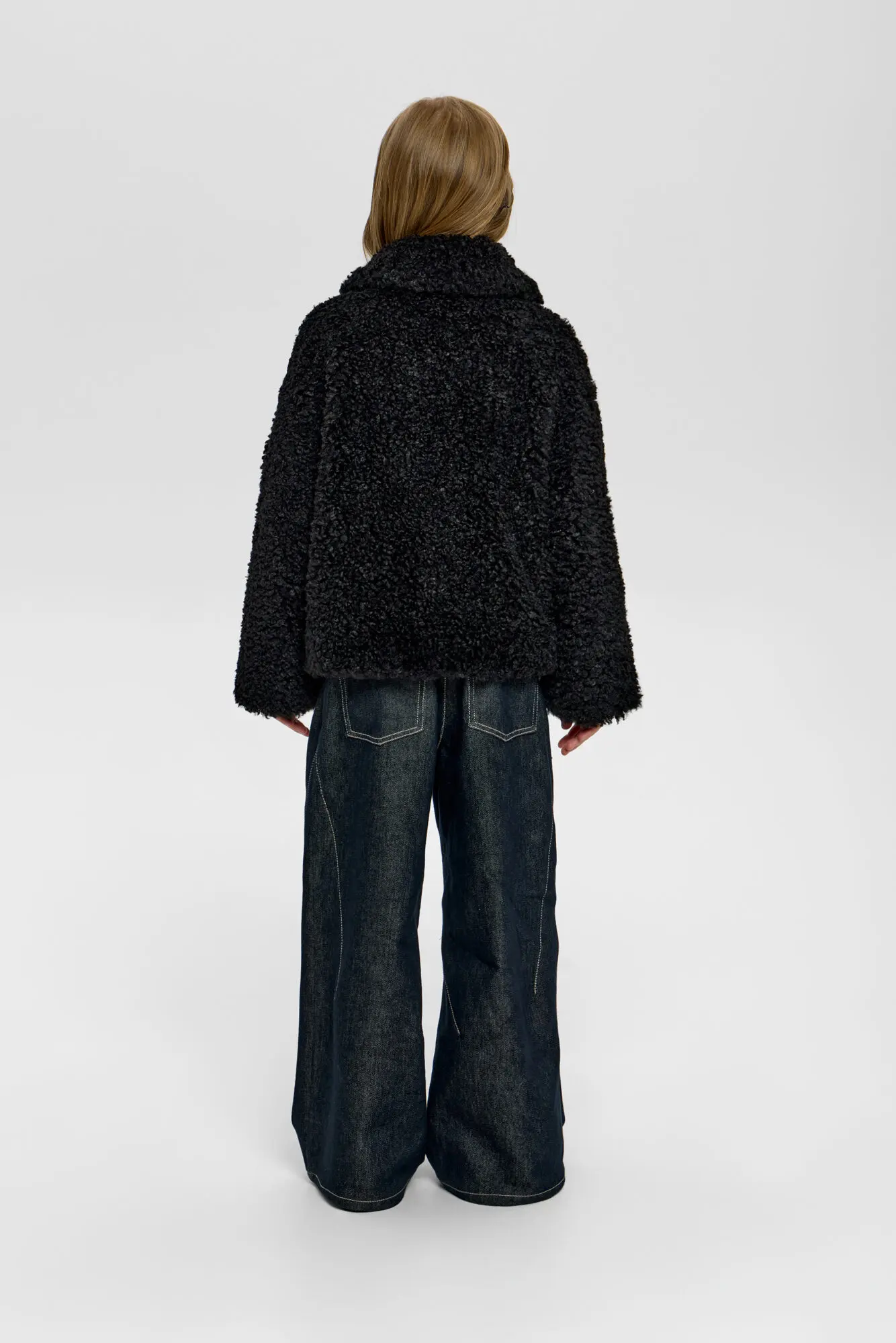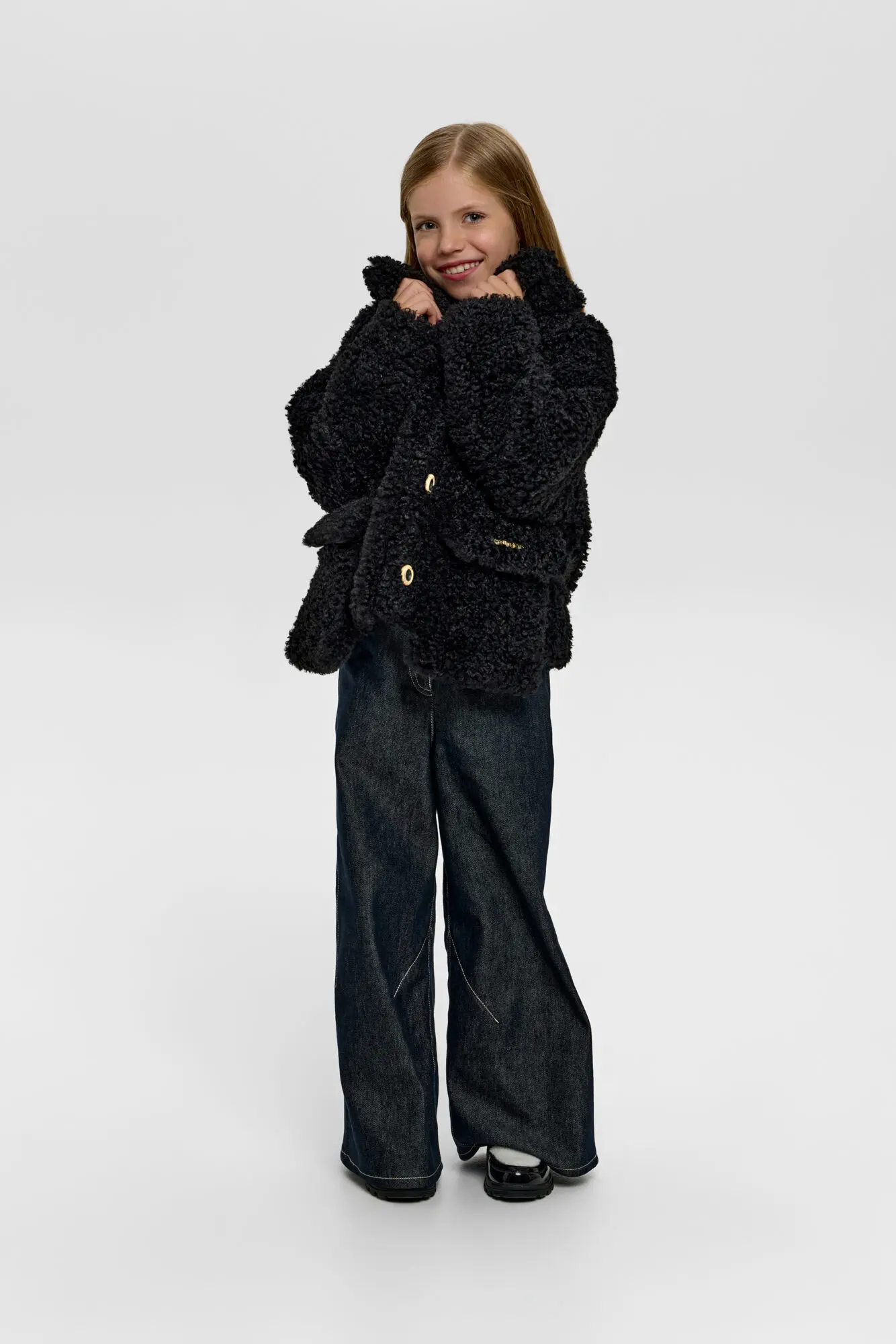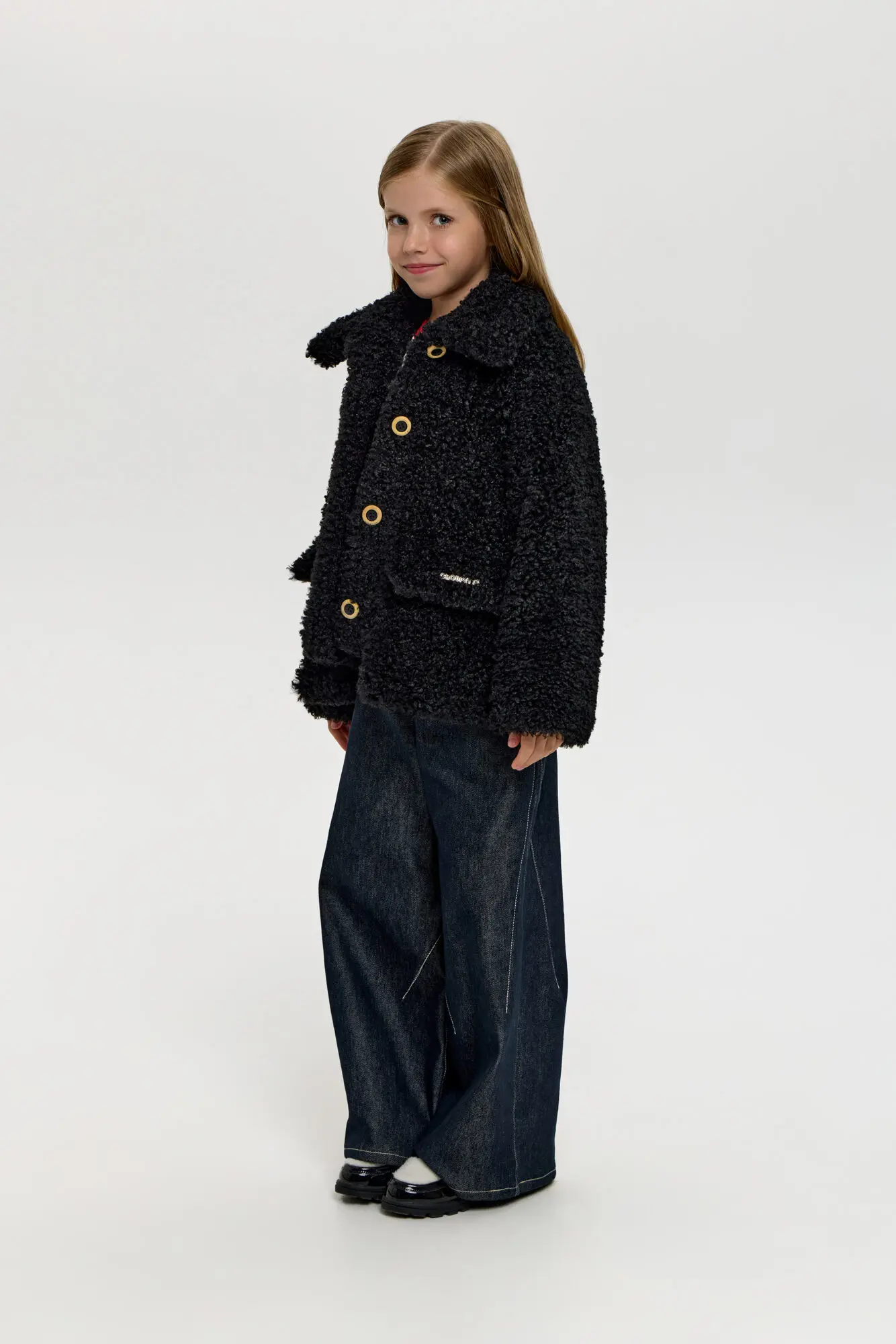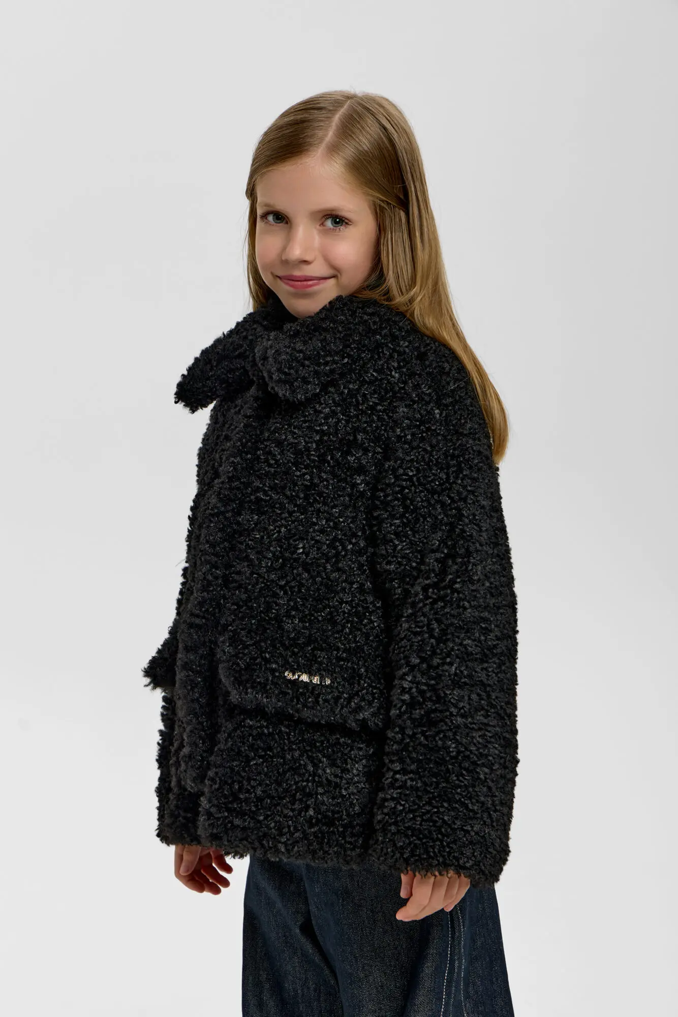 Шуба из искусственного меха – прекрасный выбор для сезонов осень-зима или еврозима. Чёрная, объёмная шуба легко вписывается в любой стиль и станет незаменимой вещью в гардеробе ... юной модницы. Модель имеет свободный силуэт и широкий отложной ворот. Застёгивается на удобные пуговицы. Дополняют дизайн два больших кармана с декоративными клапанами. Рекомендуется носить при температуре до +5 градусов.