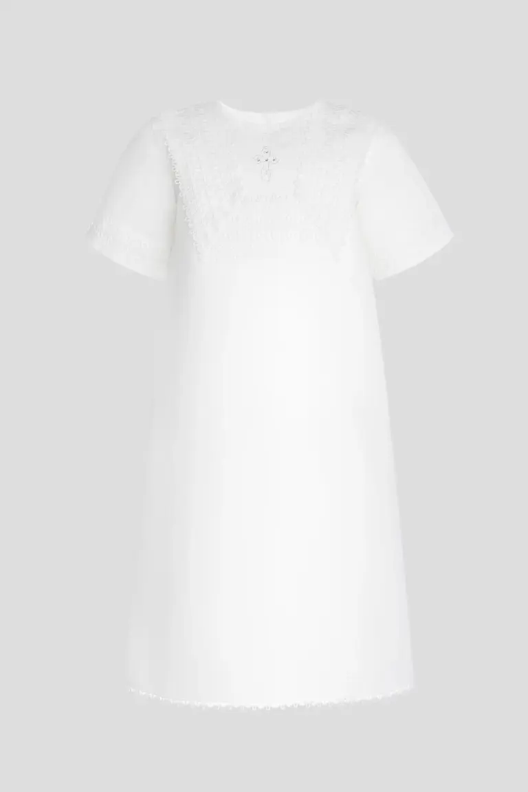 Идеальный наряд для крещения − белые оттенки символизируют чистоту помыслов. Крещение особенный обряд, поэтому выбор одежды очень важен. Сорочка с короткими рукавами выполнена из 100% хлопка ... оттенка экрю и декорирована кружевами с вышивкой. Удобная застежка на пуговицы. Подходящая длина − рубашка полностью закрывает ножки. Ребенку будет комфортно, положительные эмоции во время данной церемонии имеют большое значение.