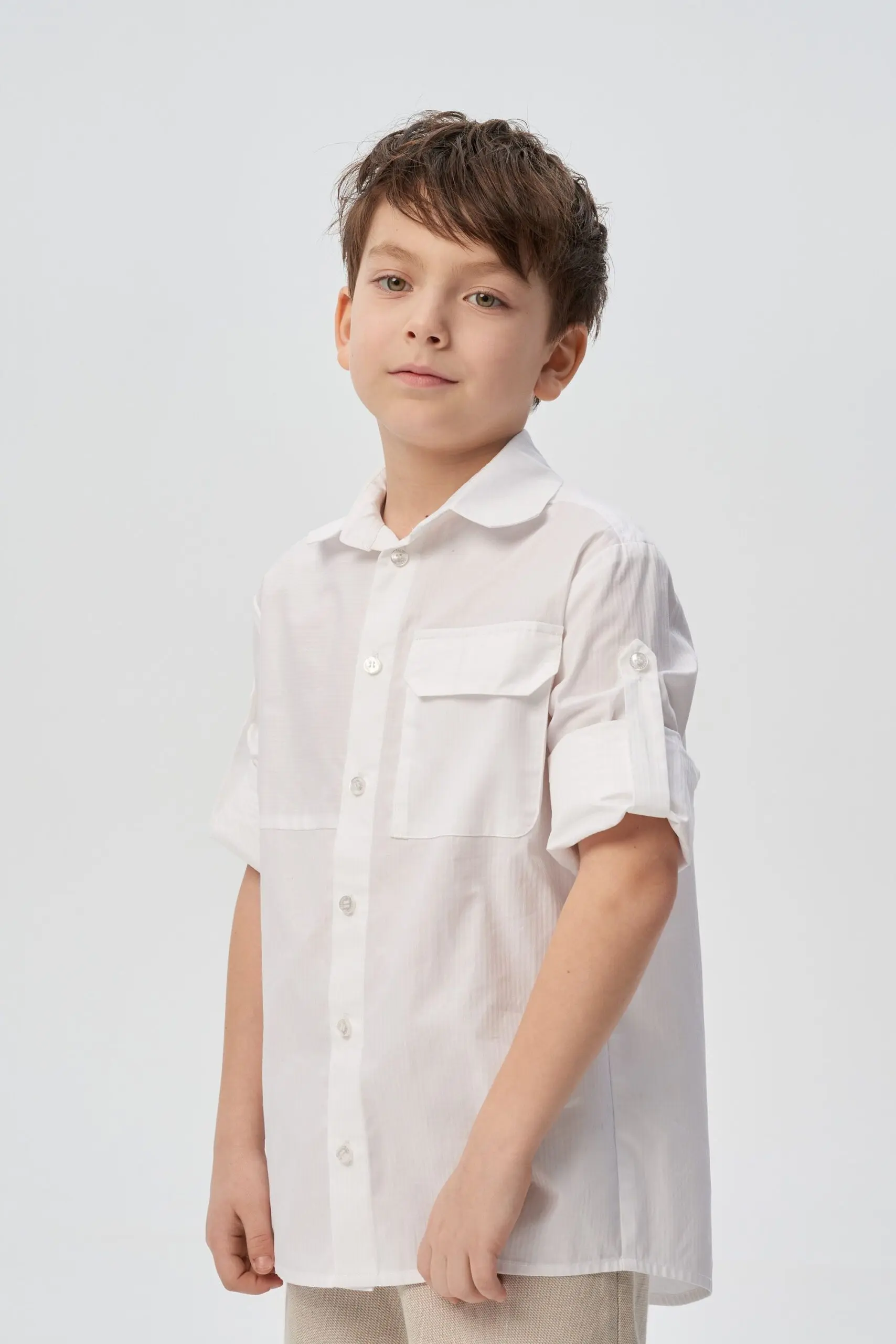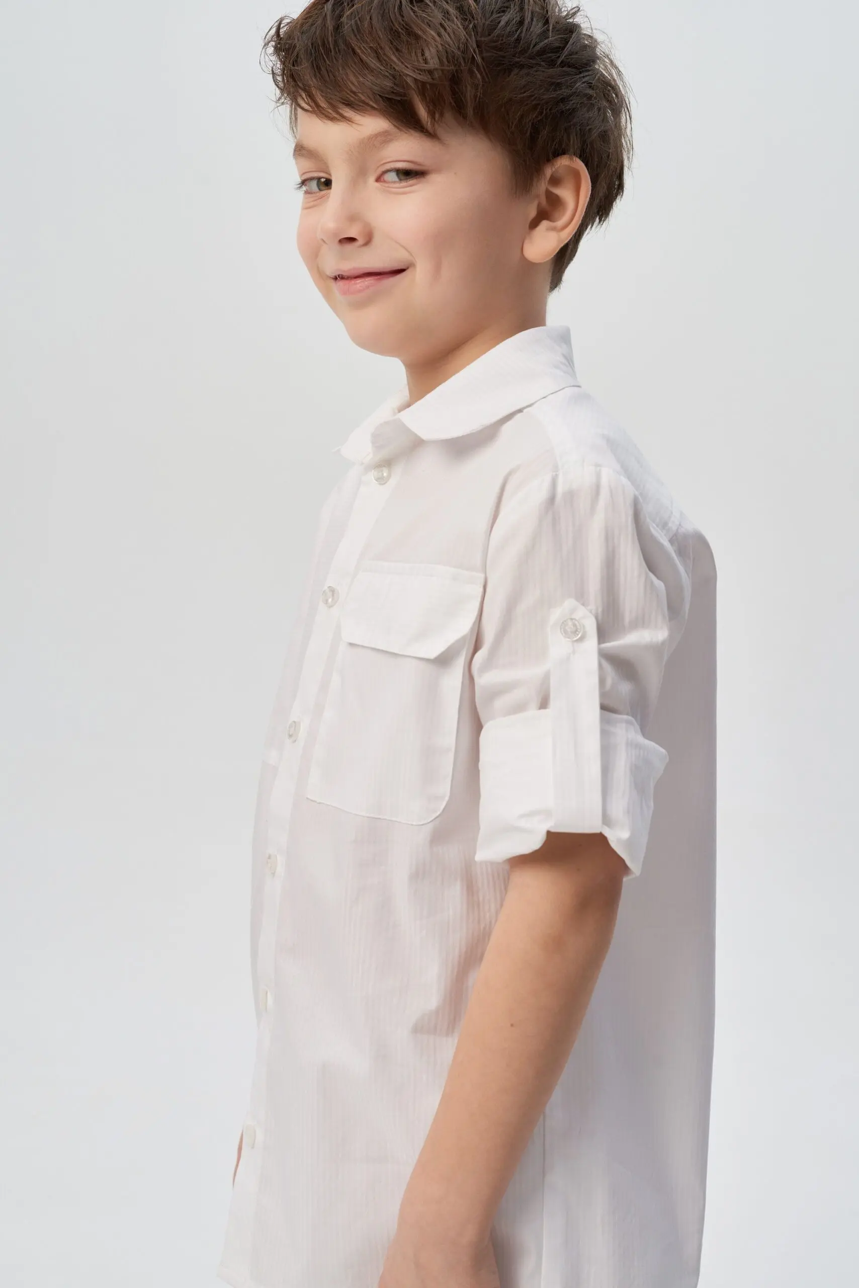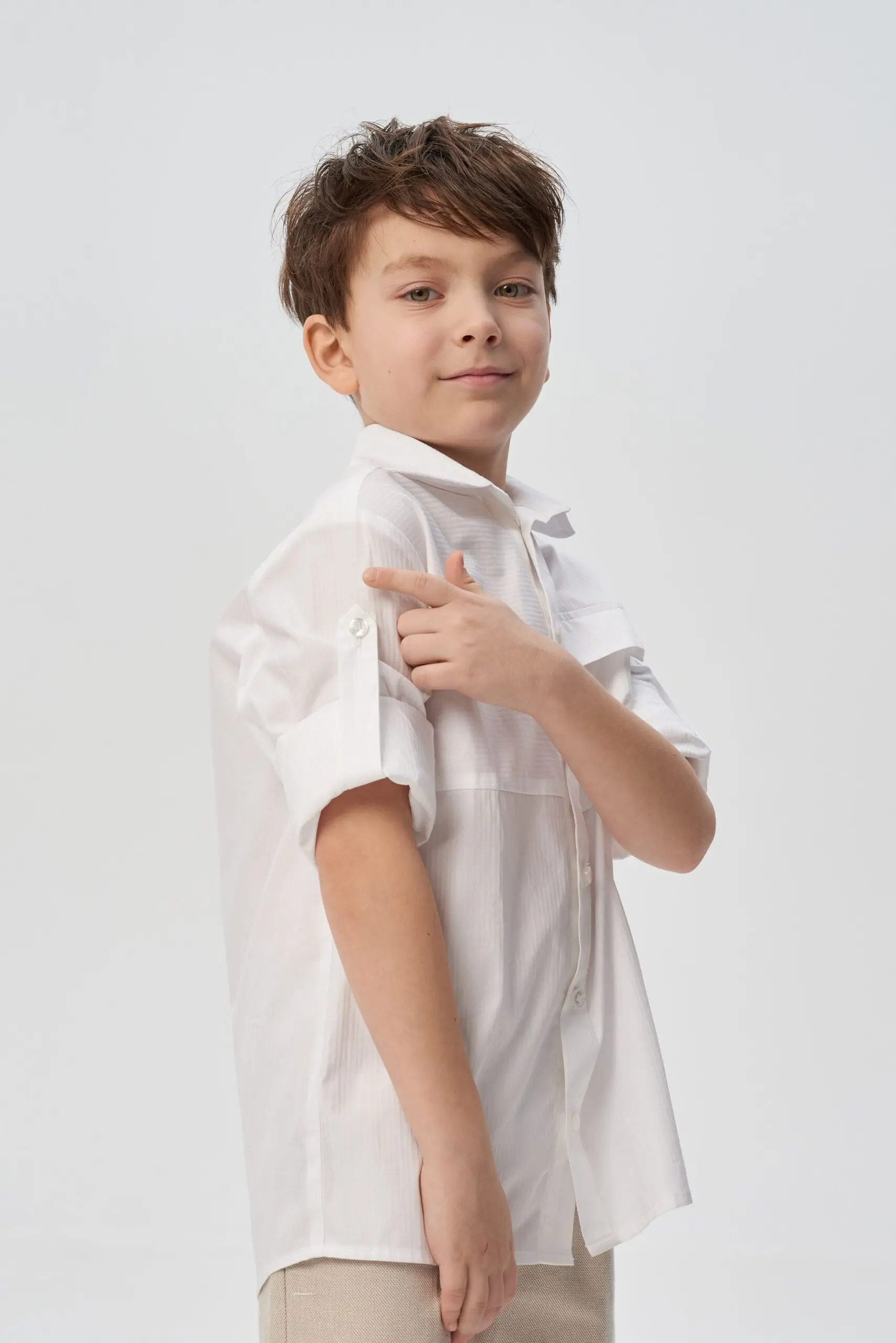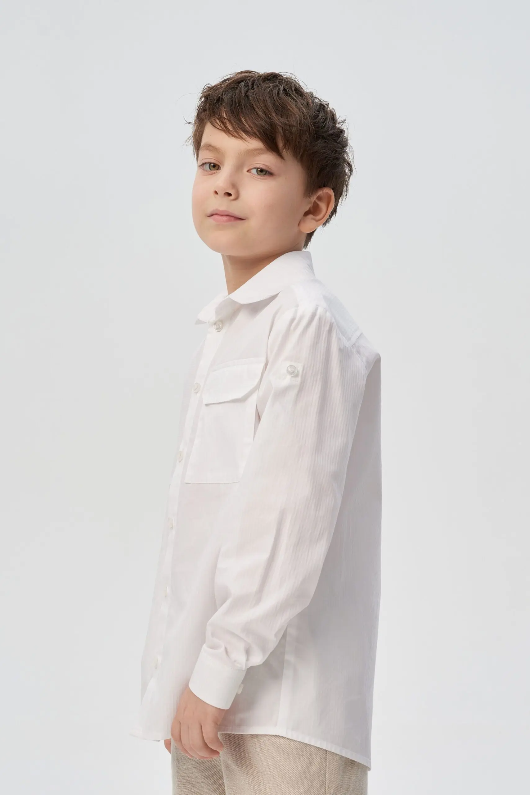 Сорочка для мальчика изготовлена из натурального хлопка, материал обладает высокими гигиеническими свойствами, хорошо пропускает воздух, сохраняет форму и цвет.