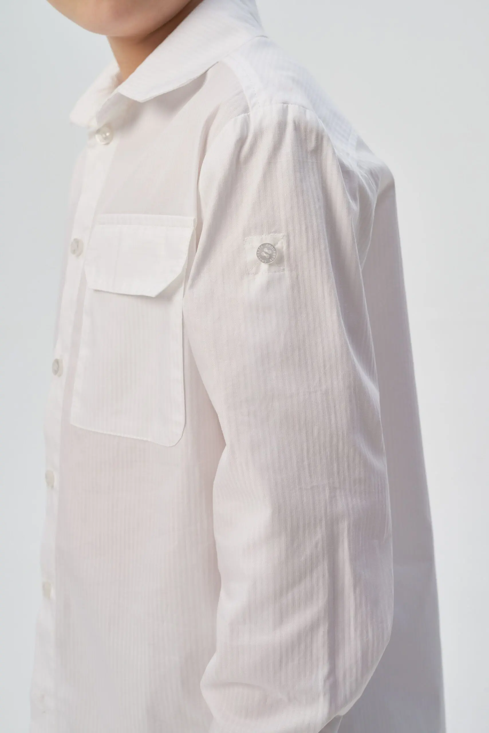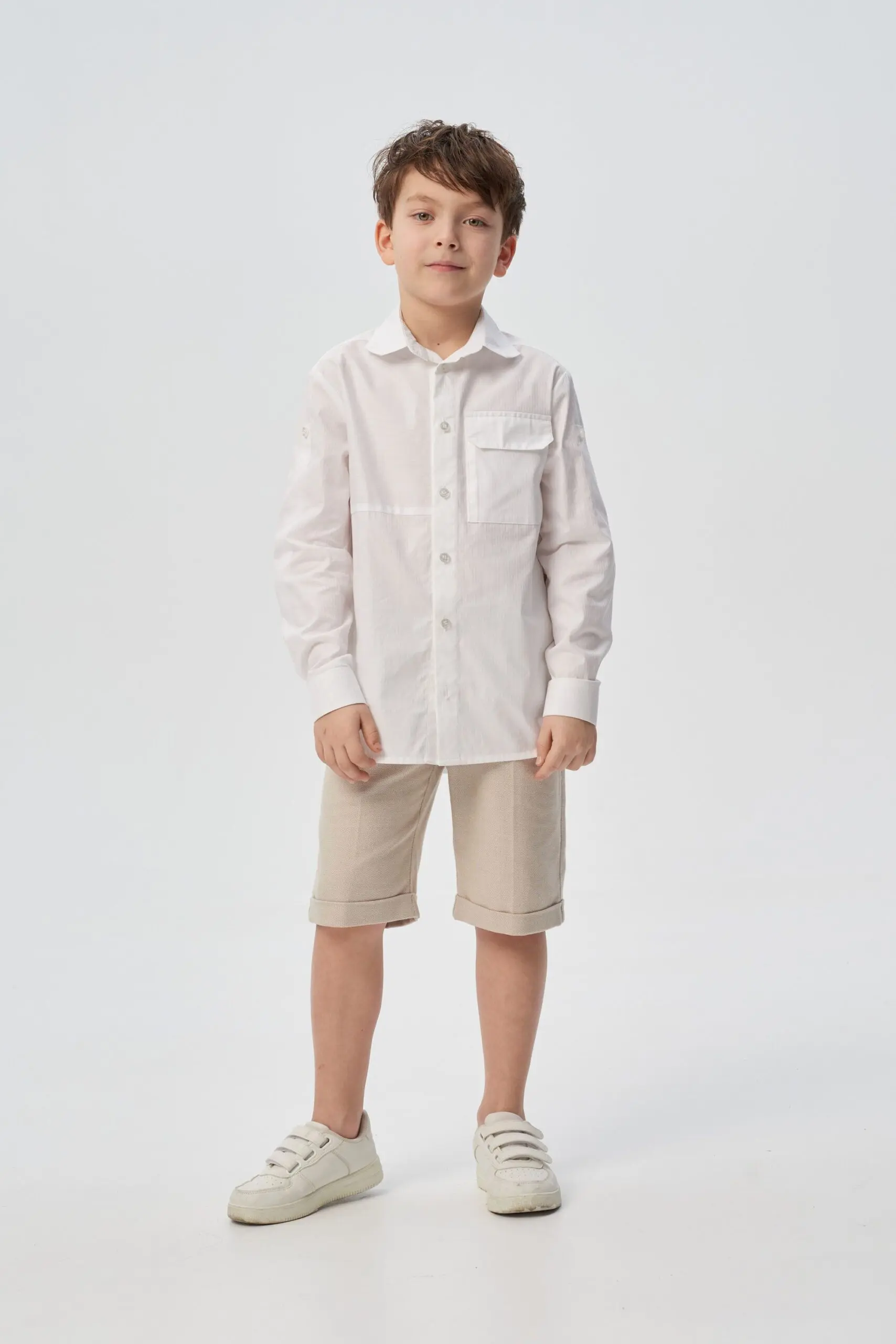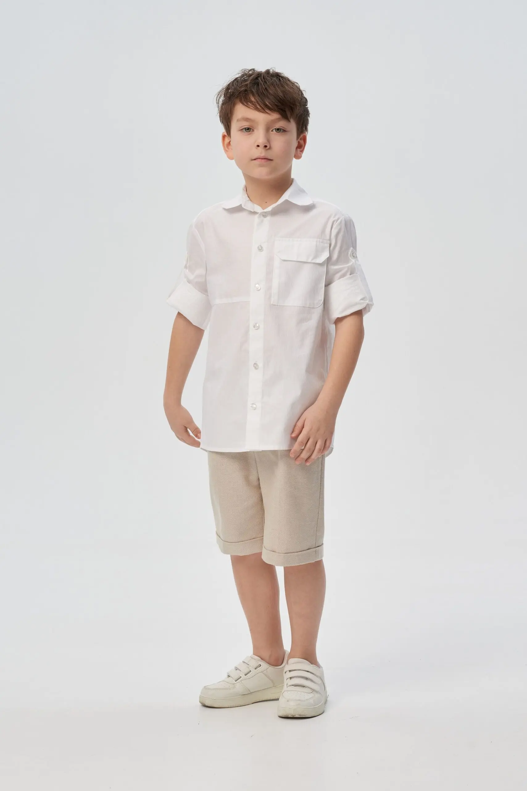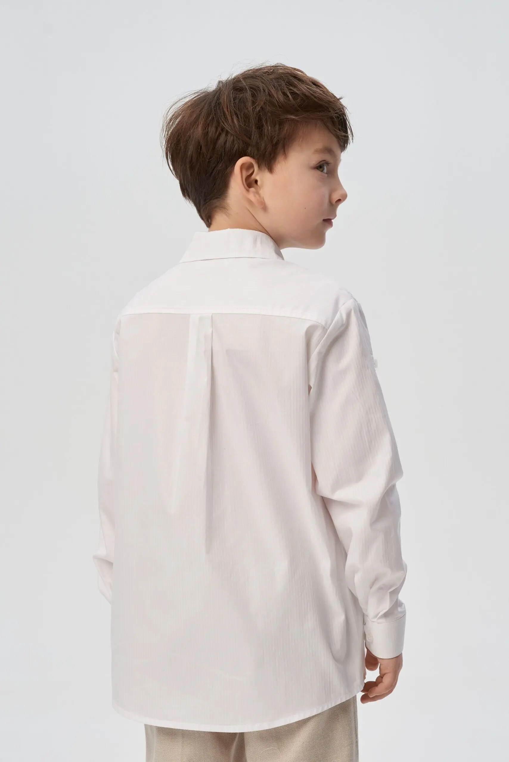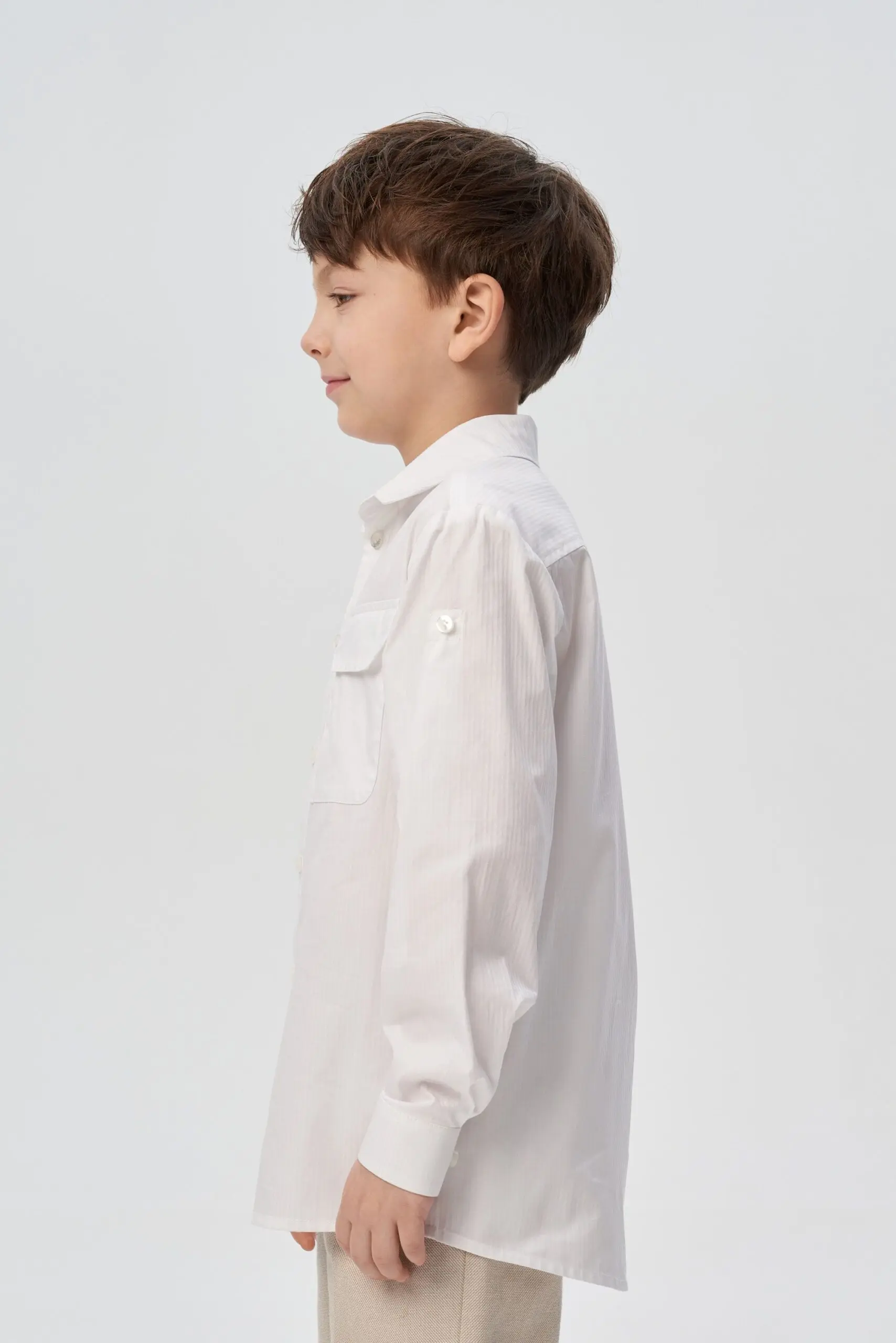 Сорочка для мальчика изготовлена из натурального хлопка, материал обладает высокими гигиеническими свойствами, хорошо пропускает воздух, сохраняет форму и цвет.