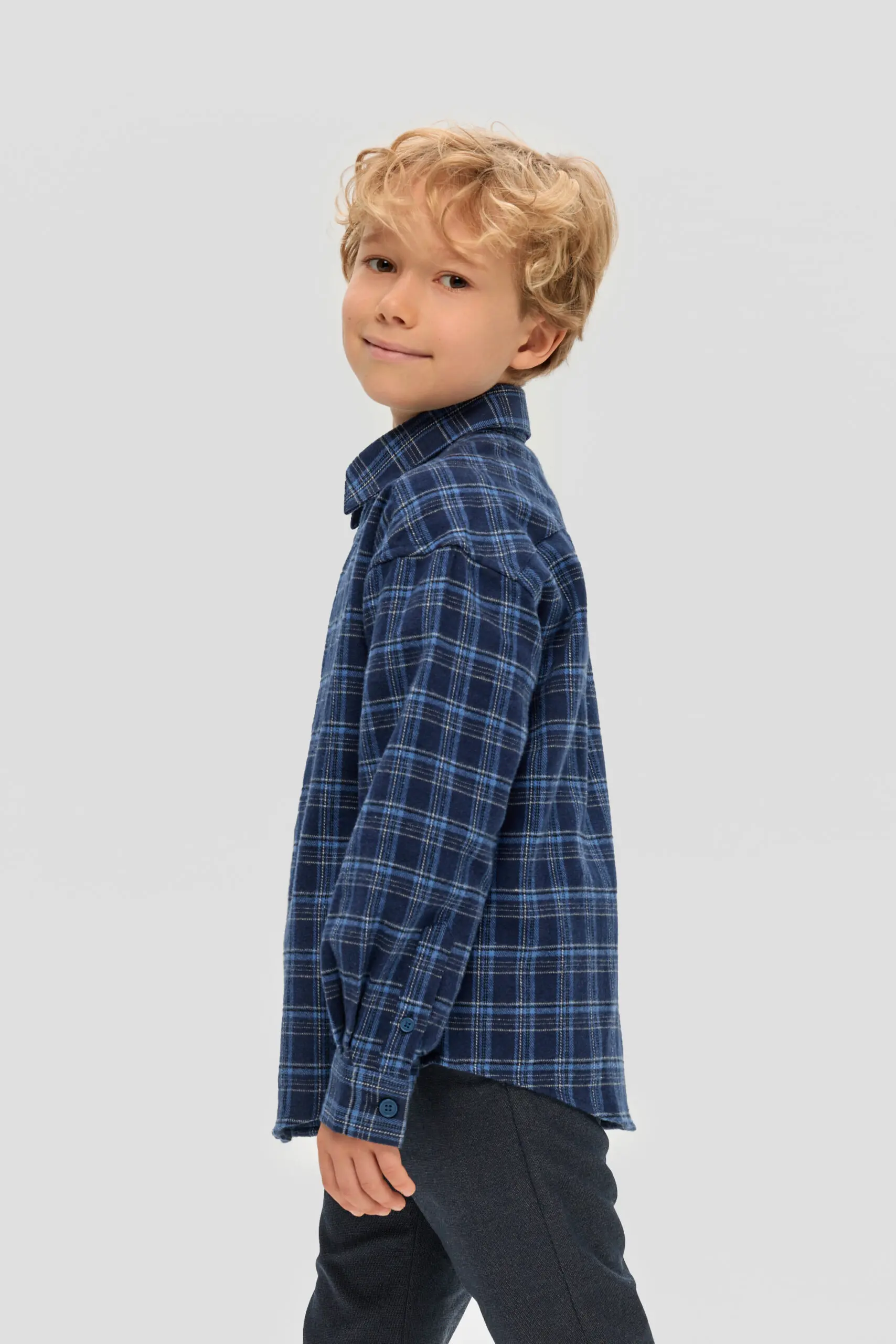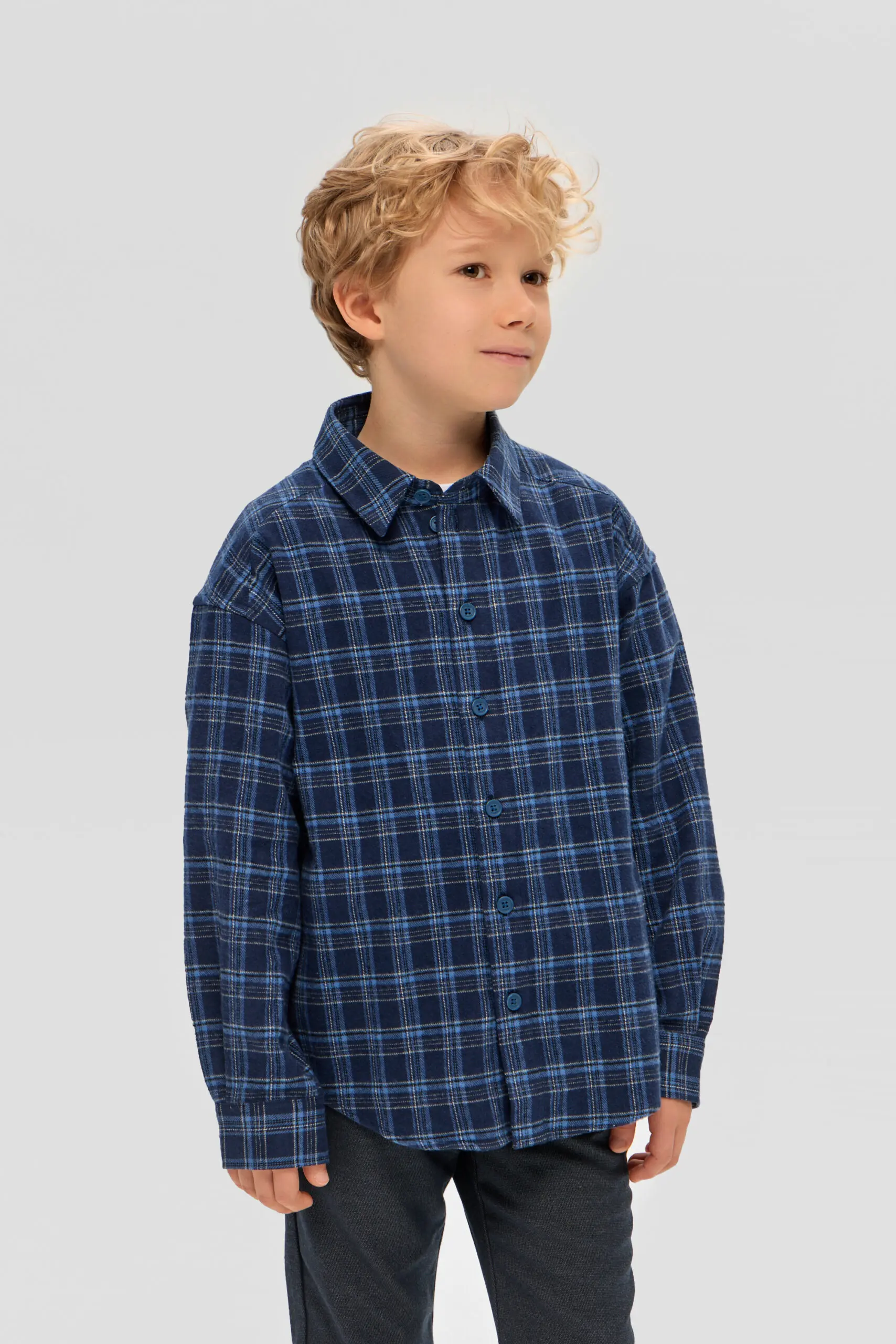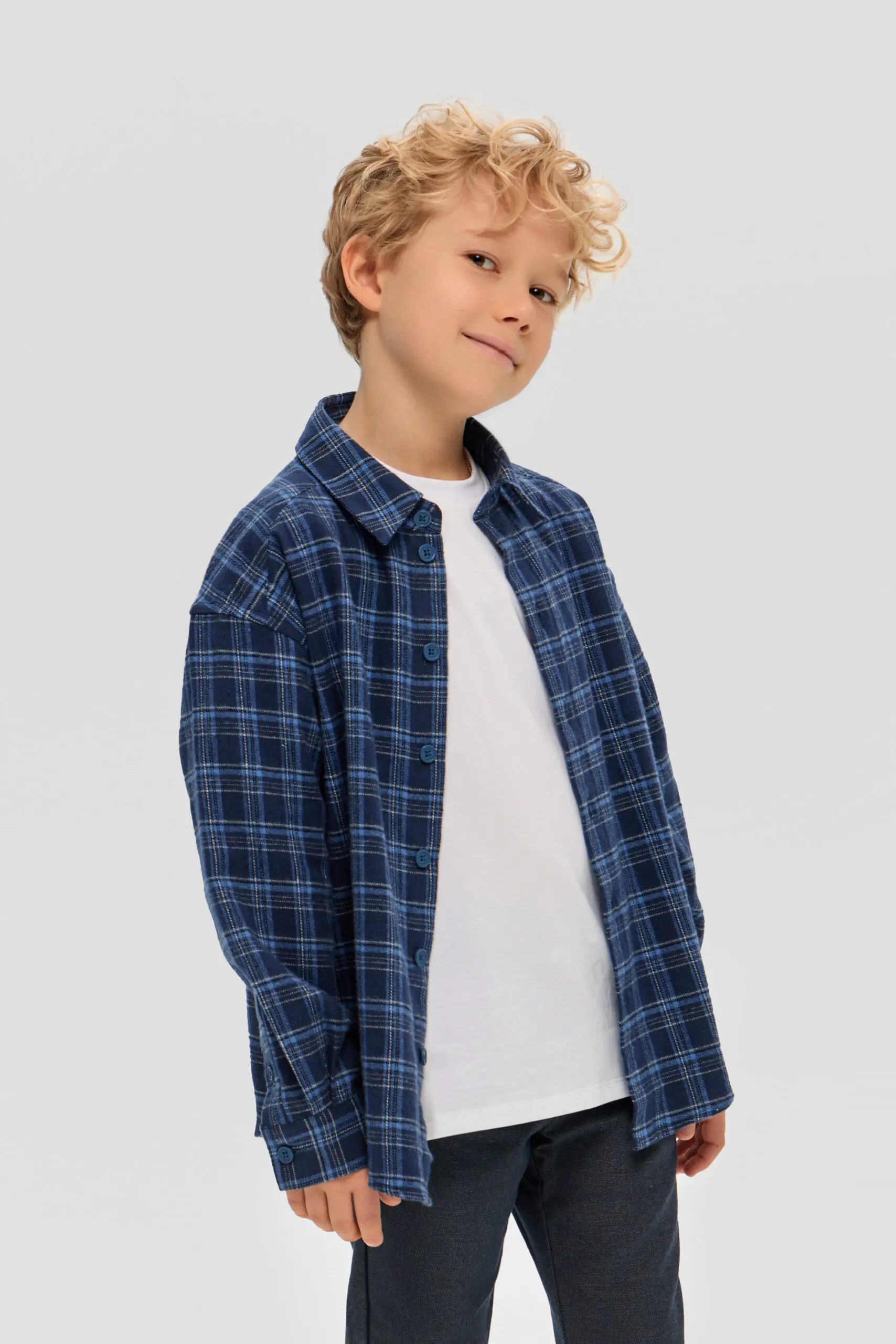 Рубашка в клетку для мальчика – это универсальный и удобный элемент одежды. Модель свободного кроя изготовлена из натурального хлопка. Благодаря превосходному материалу и тщательно разработанному дизайну, ... ребенок будет чувствовать себя комфортно как в школе, так и на прогулке с друзьями. Рубашка оснащена длинными рукавами, линия плеча легка приспущена. Воротник классический, отложной. Застежка выполнена на пуговицах по всей длине изделия. Клетчатая рубашка прекрасно комбинируется с джинсами, брюками и футболками, предоставляя множество возможностей для создания стильных образов.