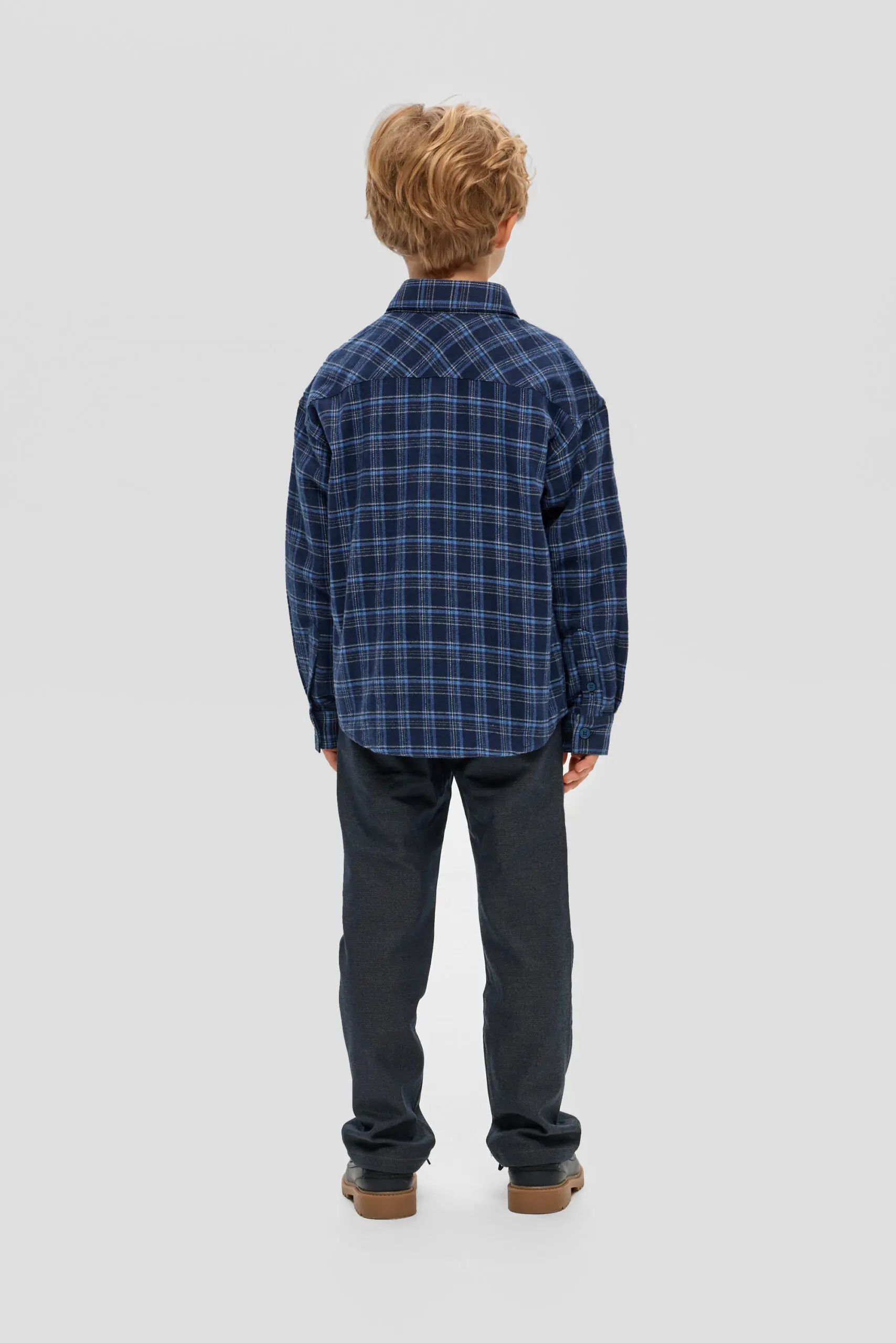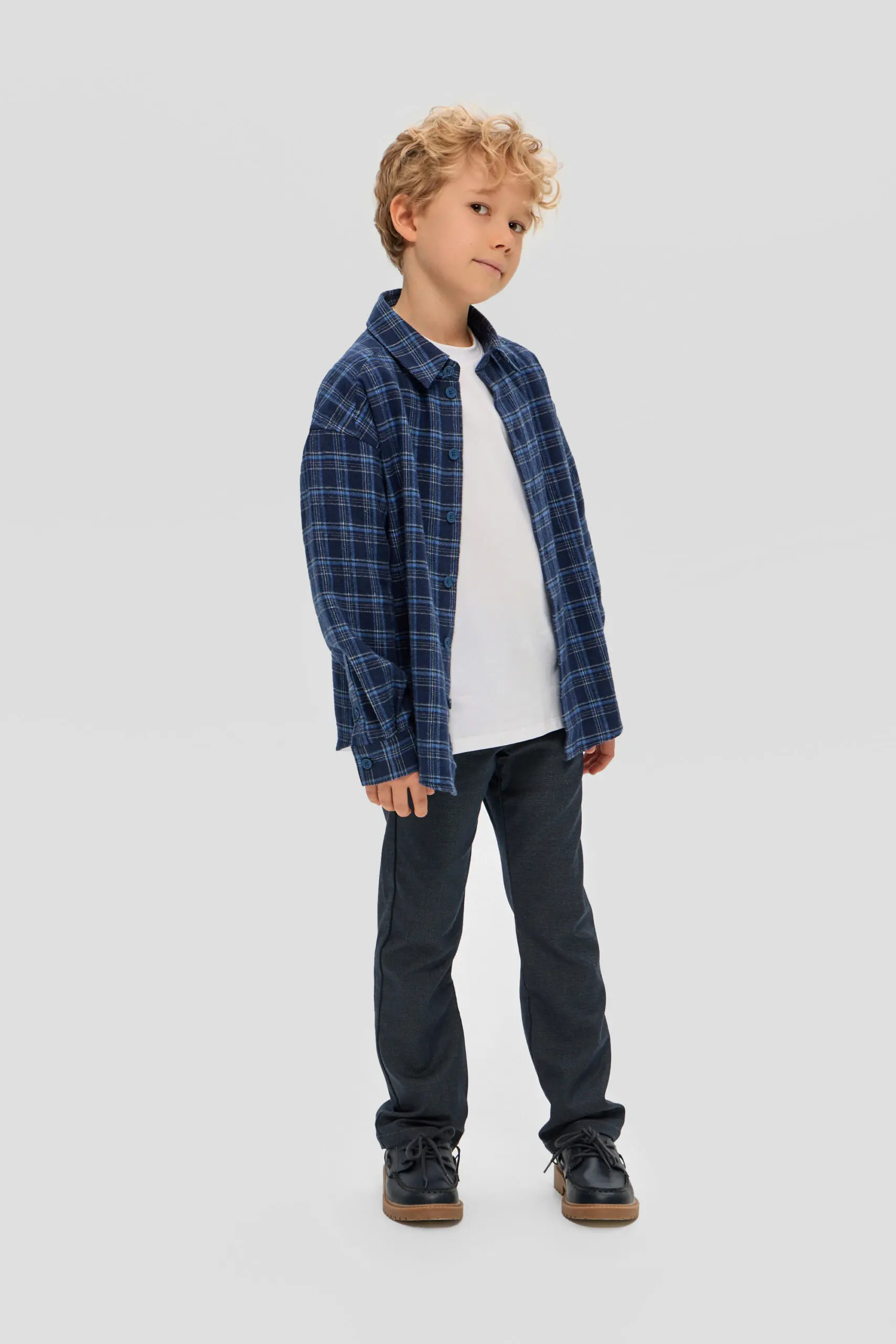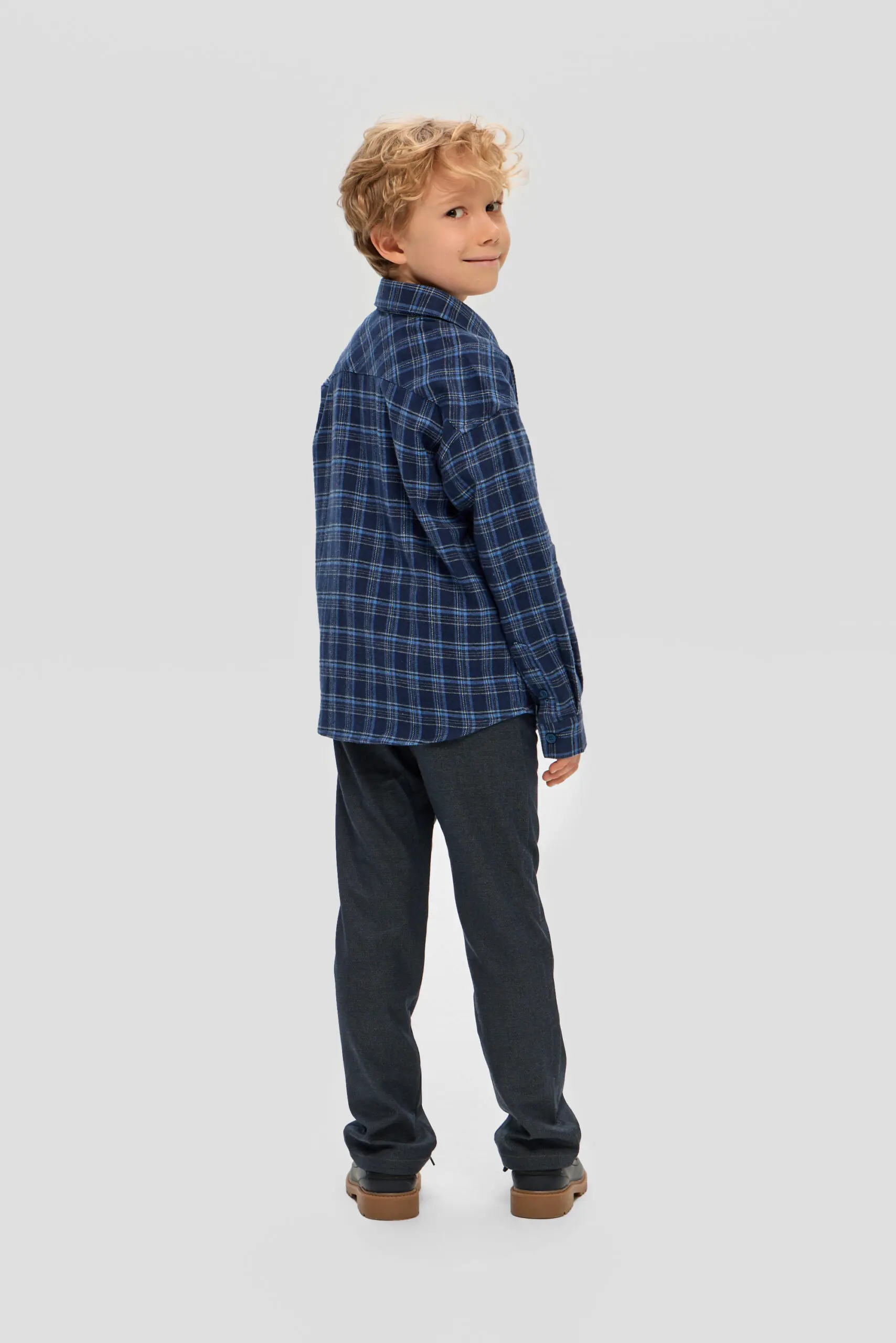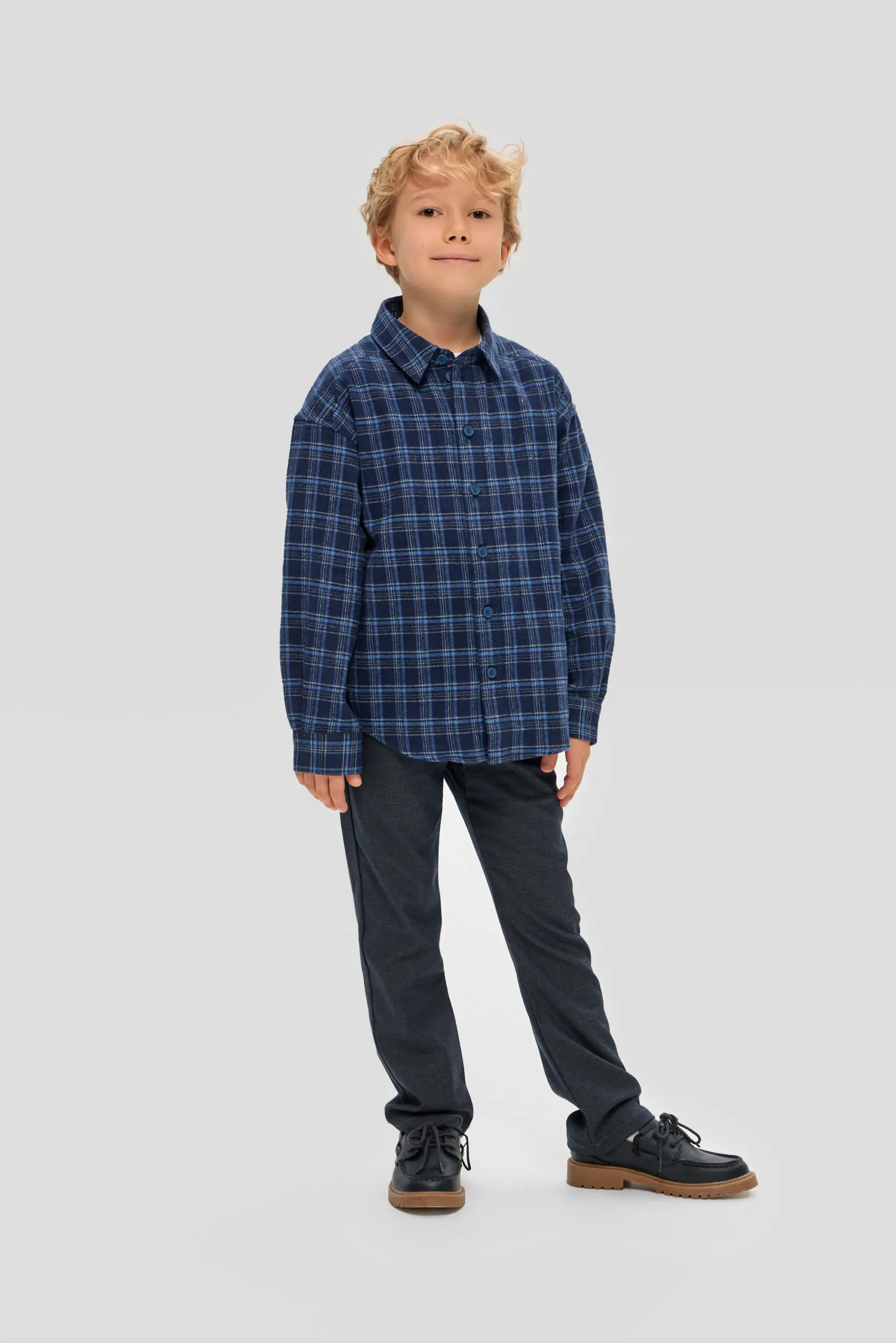 Рубашка в клетку для мальчика – это универсальный и удобный элемент одежды. Модель свободного кроя изготовлена из натурального хлопка. Благодаря превосходному материалу и тщательно разработанному дизайну, ... ребенок будет чувствовать себя комфортно как в школе, так и на прогулке с друзьями. Рубашка оснащена длинными рукавами, линия плеча легка приспущена. Воротник классический, отложной. Застежка выполнена на пуговицах по всей длине изделия. Клетчатая рубашка прекрасно комбинируется с джинсами, брюками и футболками, предоставляя множество возможностей для создания стильных образов.