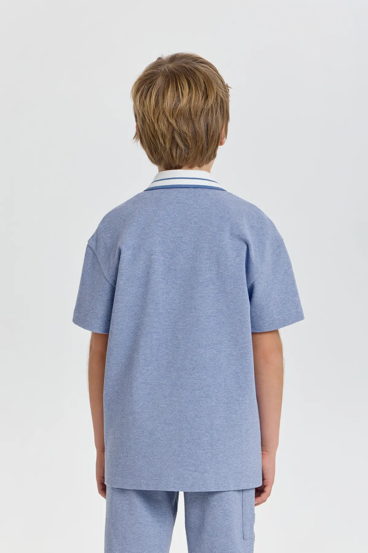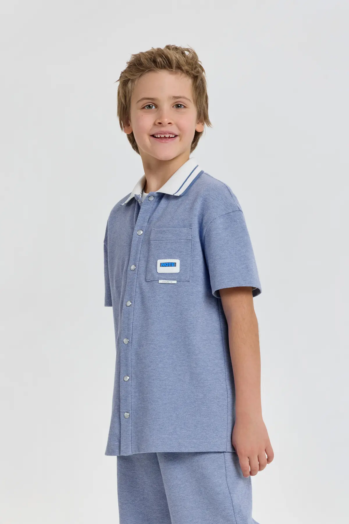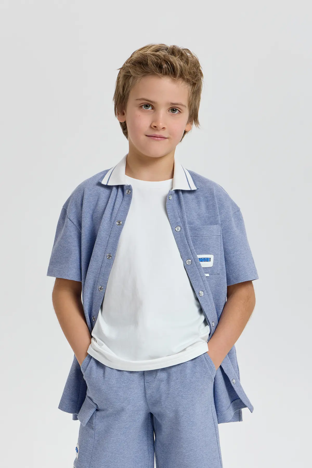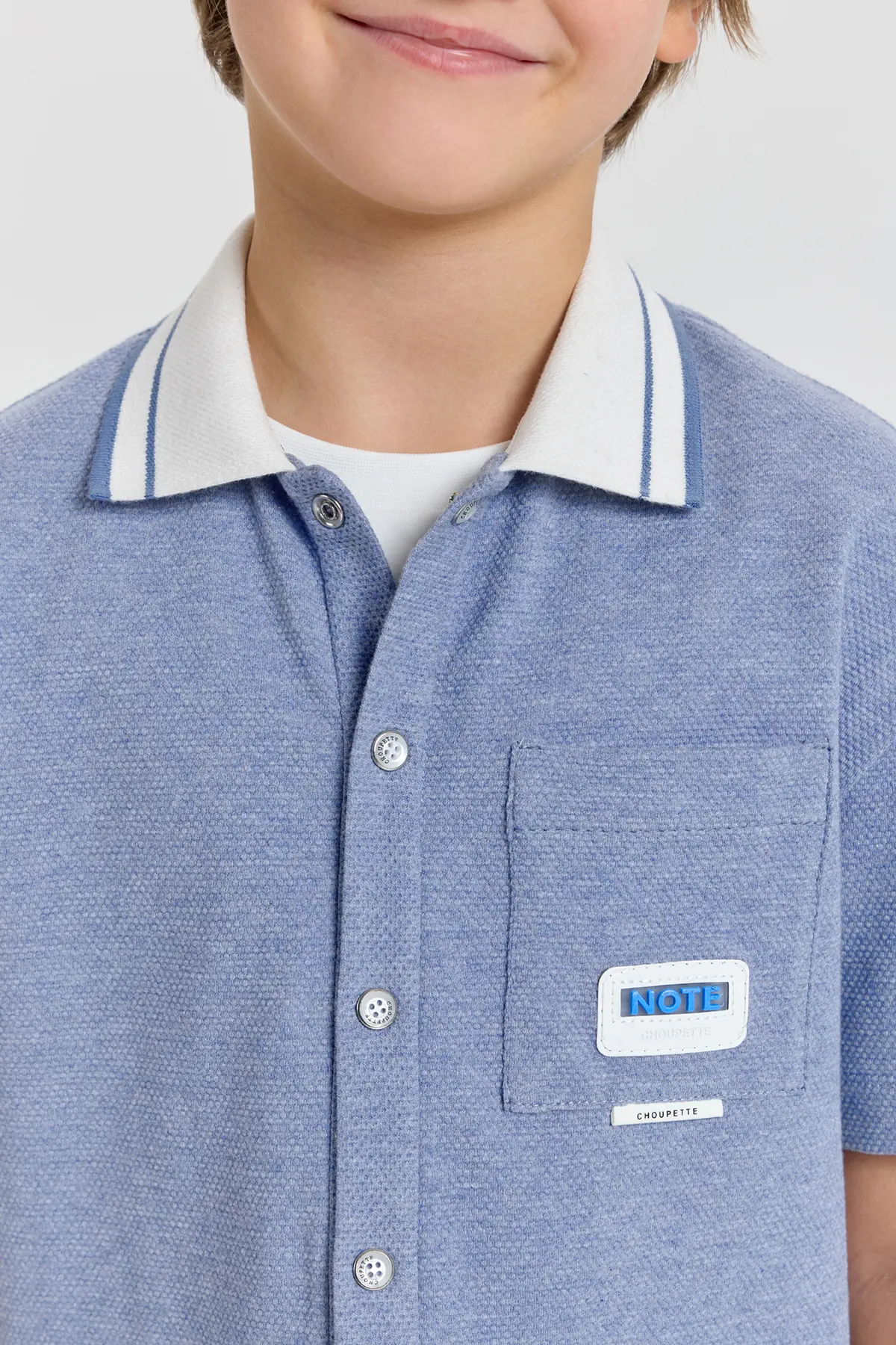 Лёгкая рубашка-жакет в изысканном серо-голубом цвете создана для мальчиков, которые ценят аккуратный внешний вид и стильные решения для особых случаев. Модель свободного силуэта выполнена из фактурной ... ткани, придающей образу выразительность и современное звучание. Дизайн дополнен отложным воротником, короткими рукавами и застёжкой на пуговицы, а накладной карман с лаконичным декором добавляет практичности и завершает образ. Такая рубашка-жакет станет отличным выбором для праздников, встреч и семейных мероприятий.