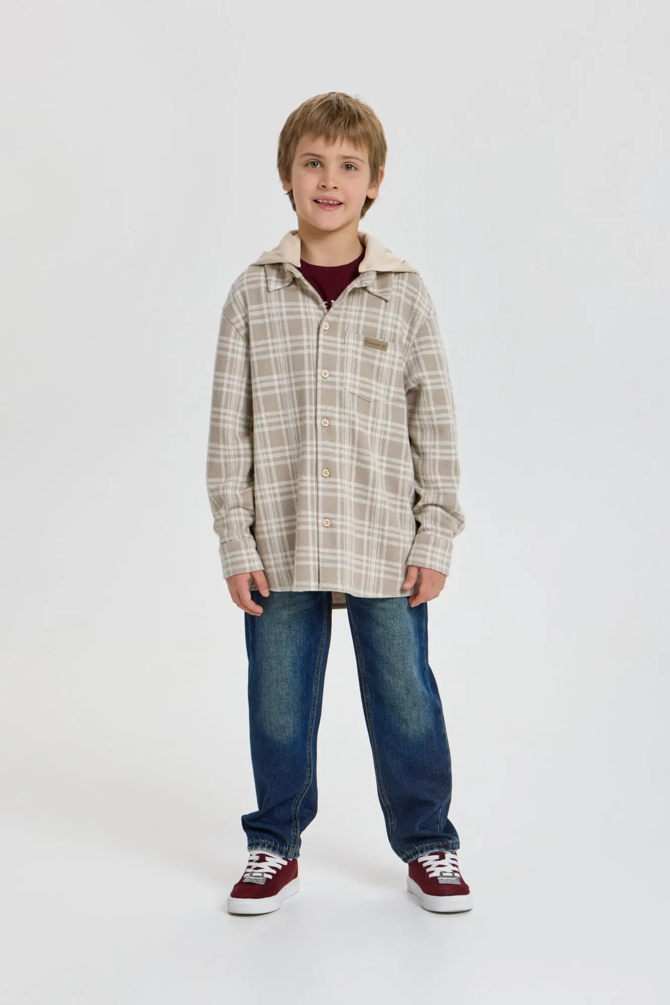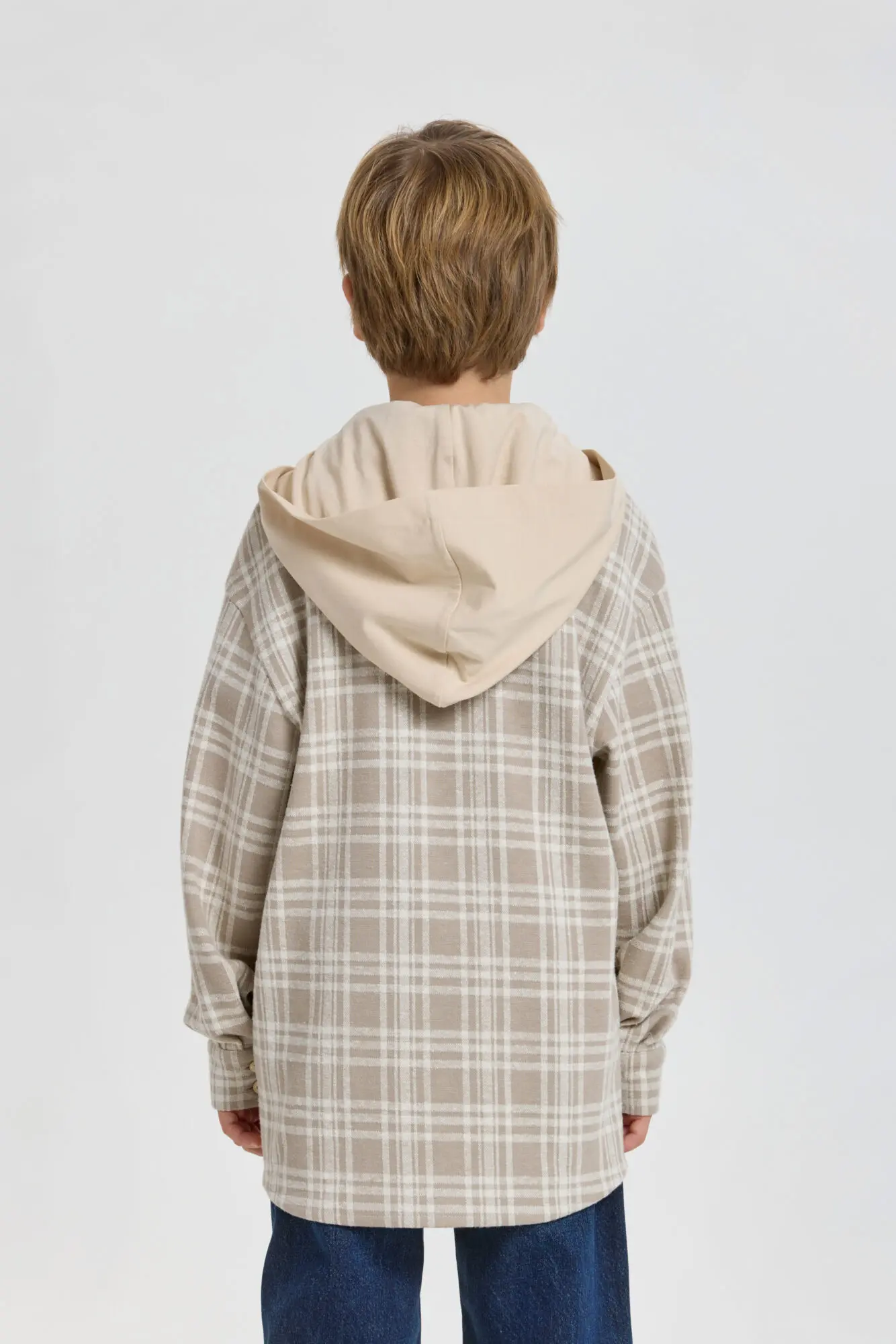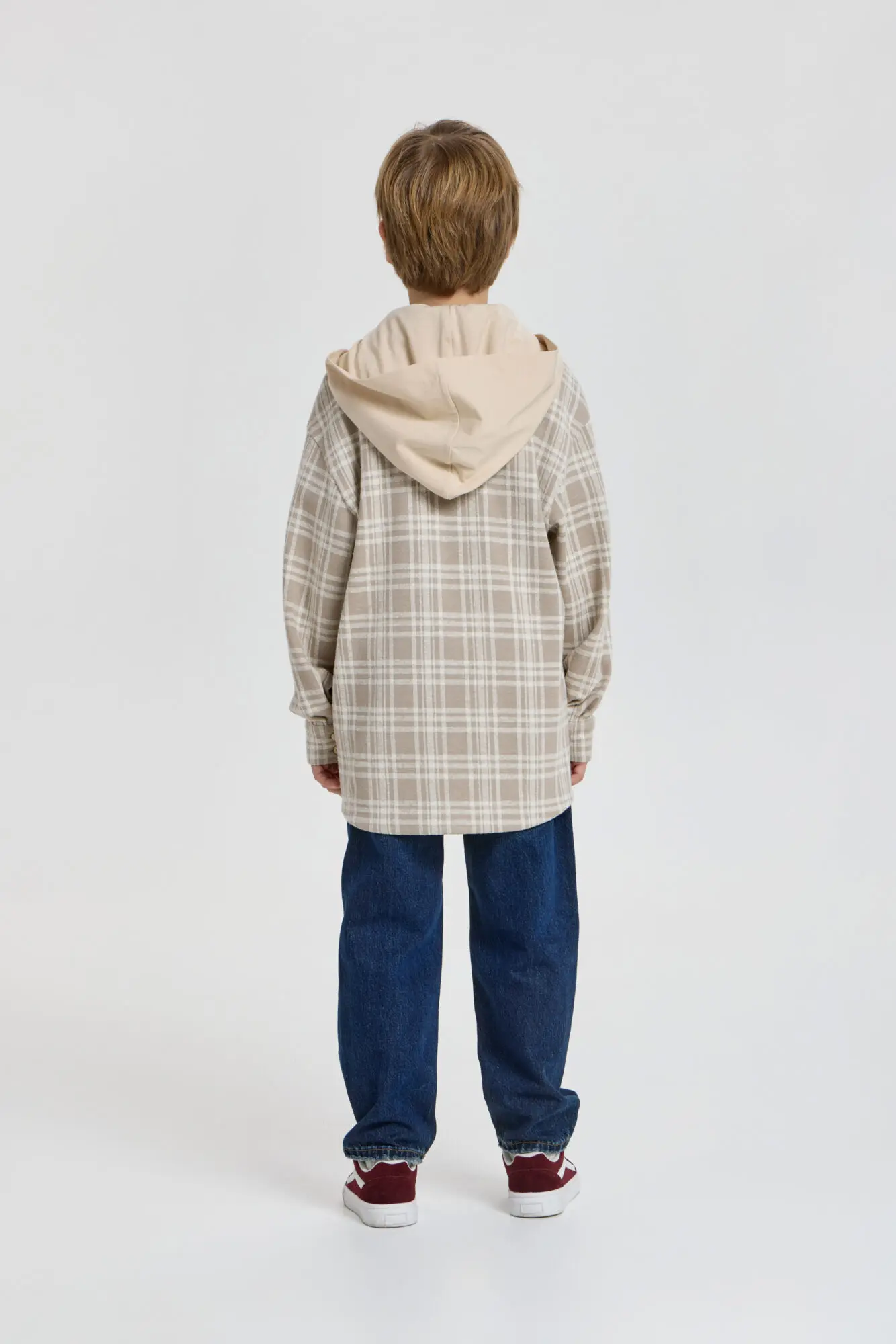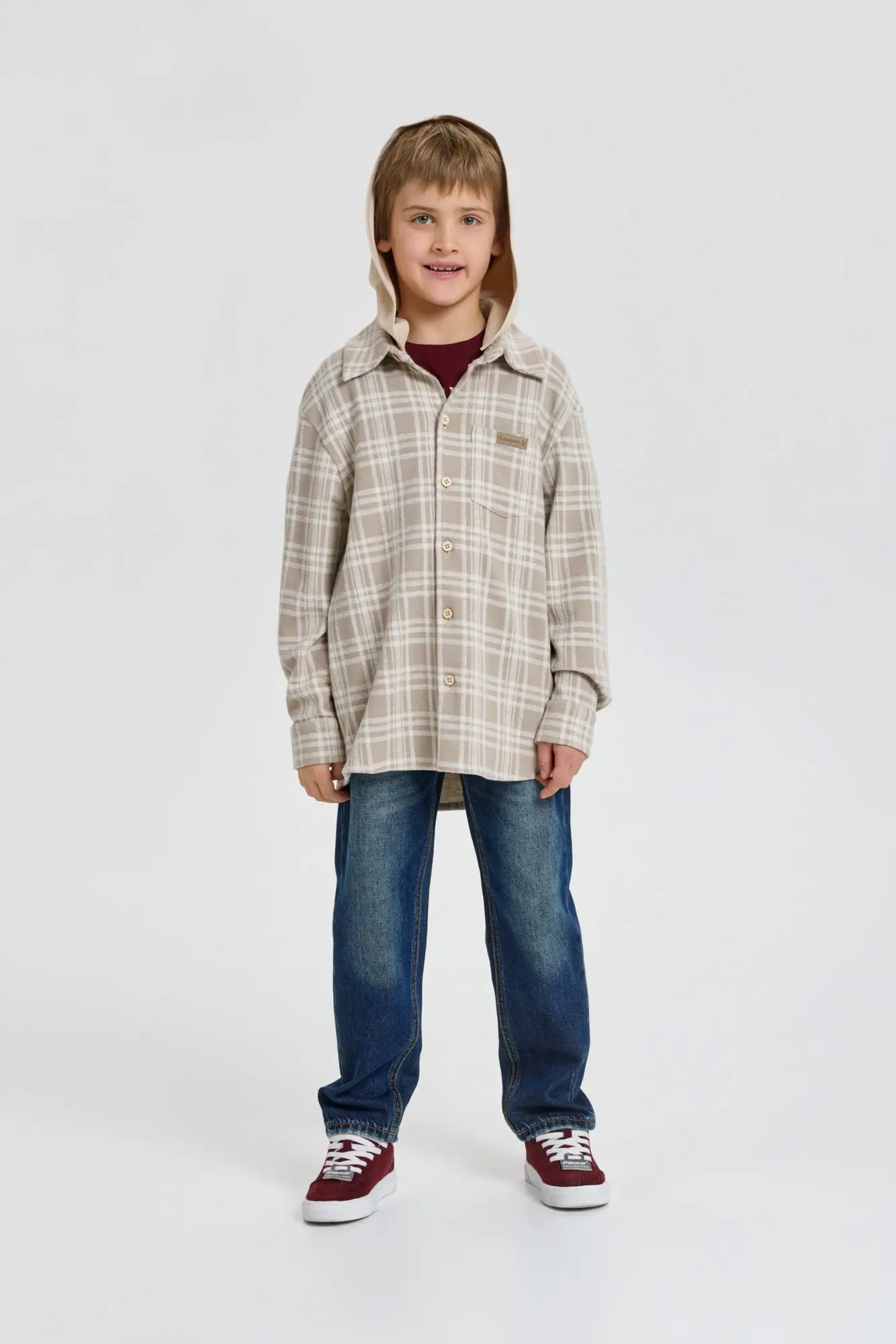 Стильная рубашка в клетку для мальчика — отличный выбор для создания модных и непринужденных детских образов. Модель свободного кроя оверсайз с удлиненной спинкой. Благодаря длинным рукавам ... со спущенной линией плеча, нагрудному карману и трикотажному капюшону, рубашка является трендом подростковой моды. Клетчатая рубашка прекрасно дополнит любой образ в стиле городской моды и станет отличным вариантом для любого времени года.
