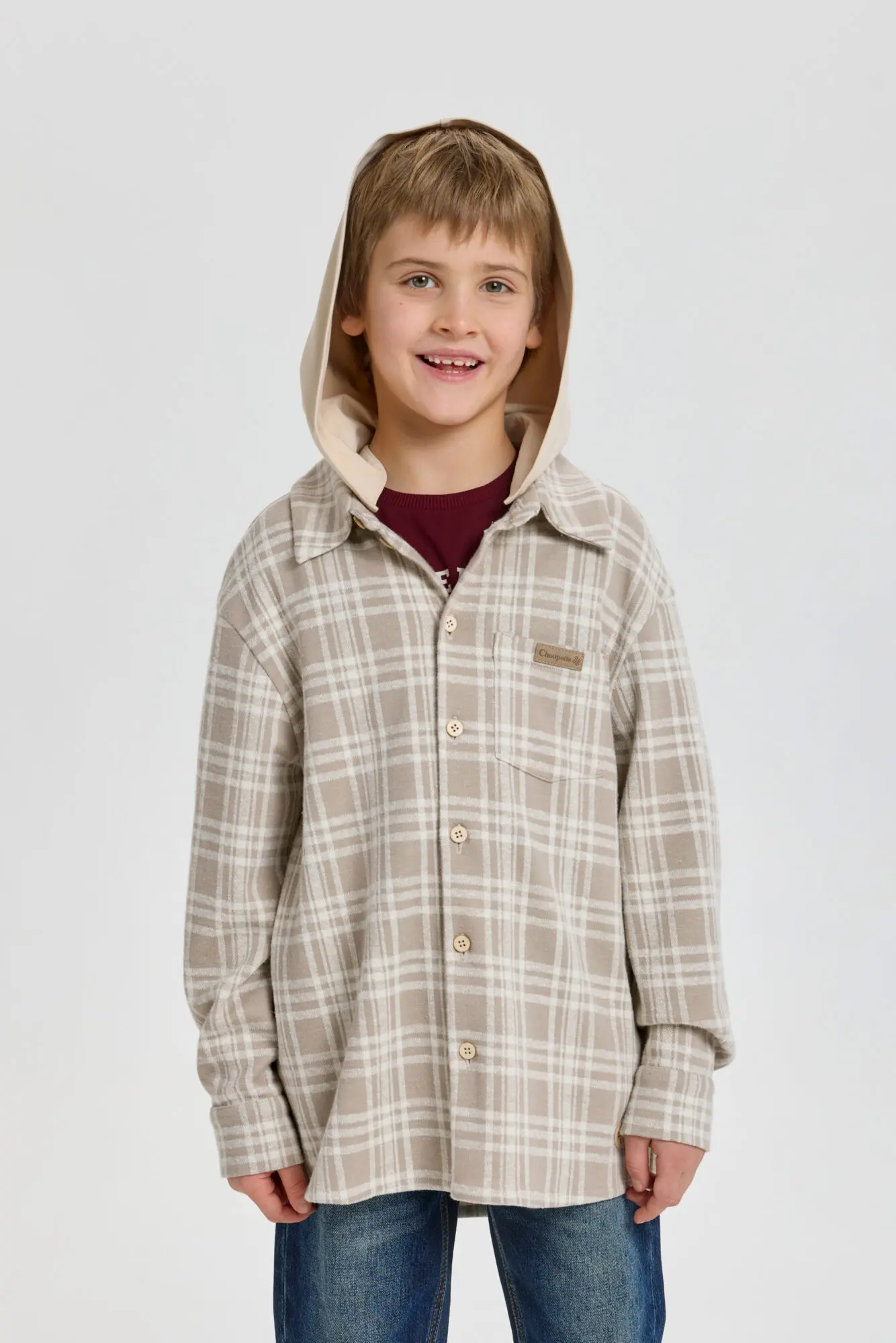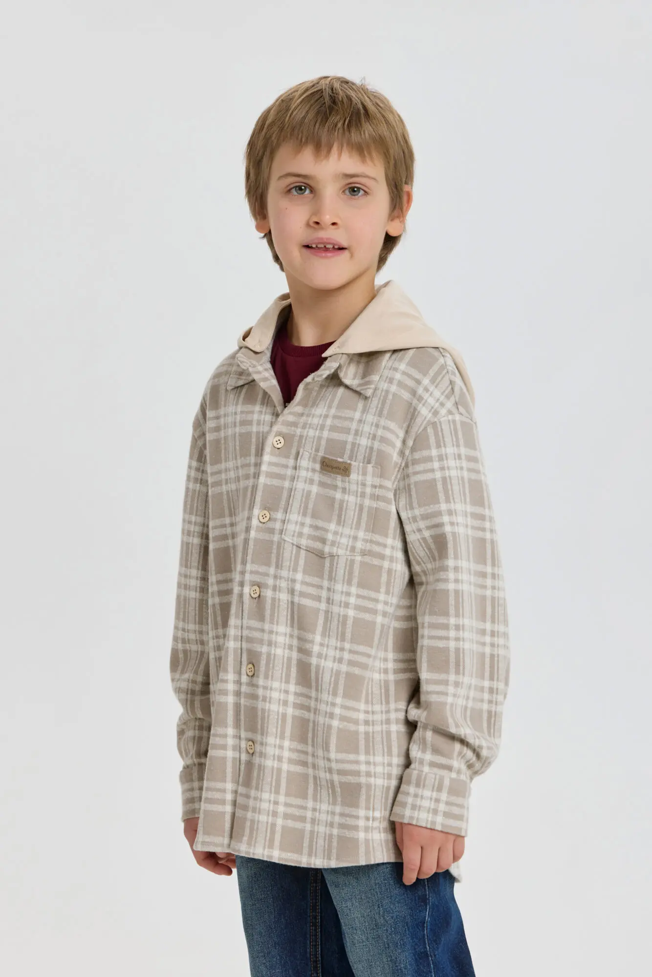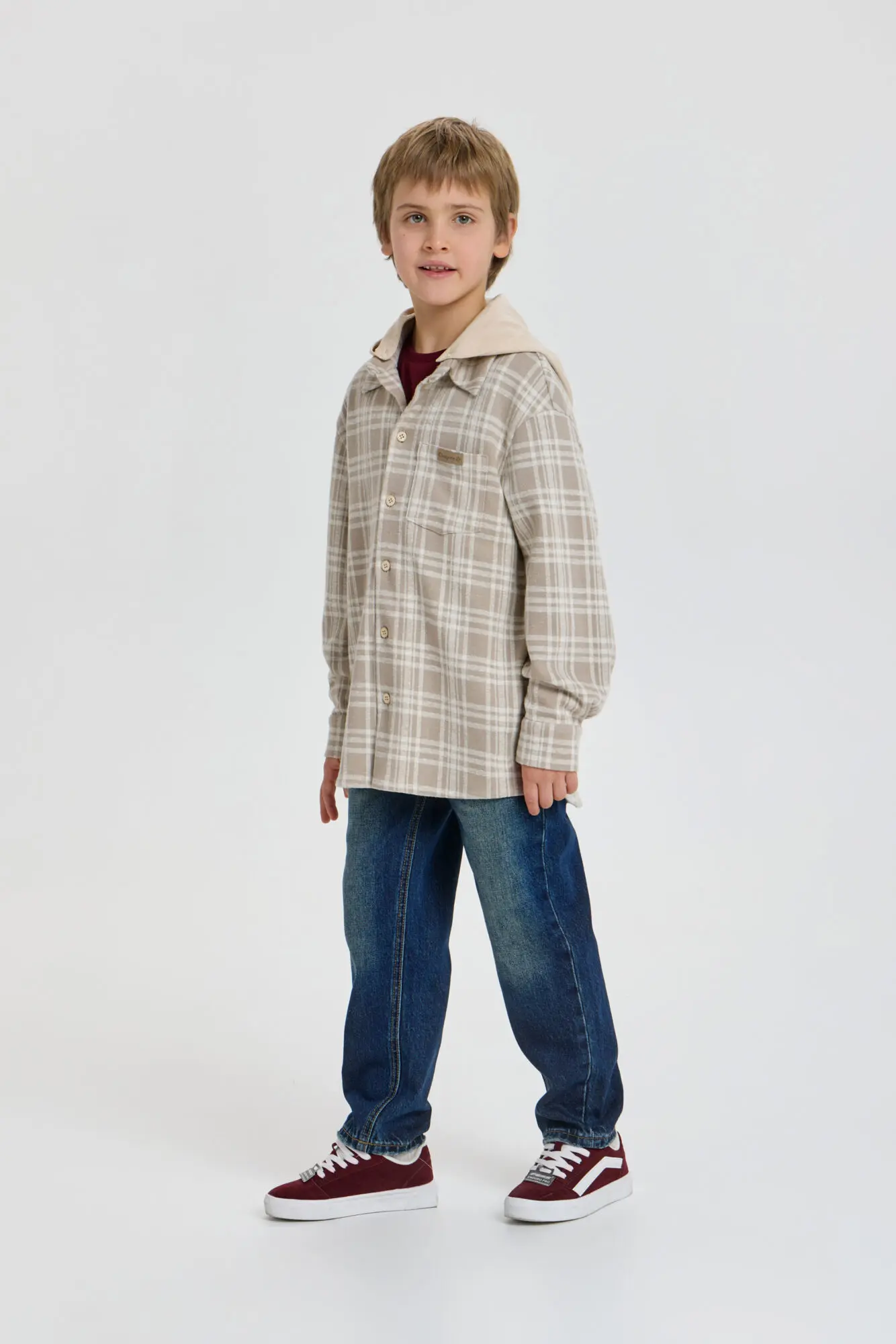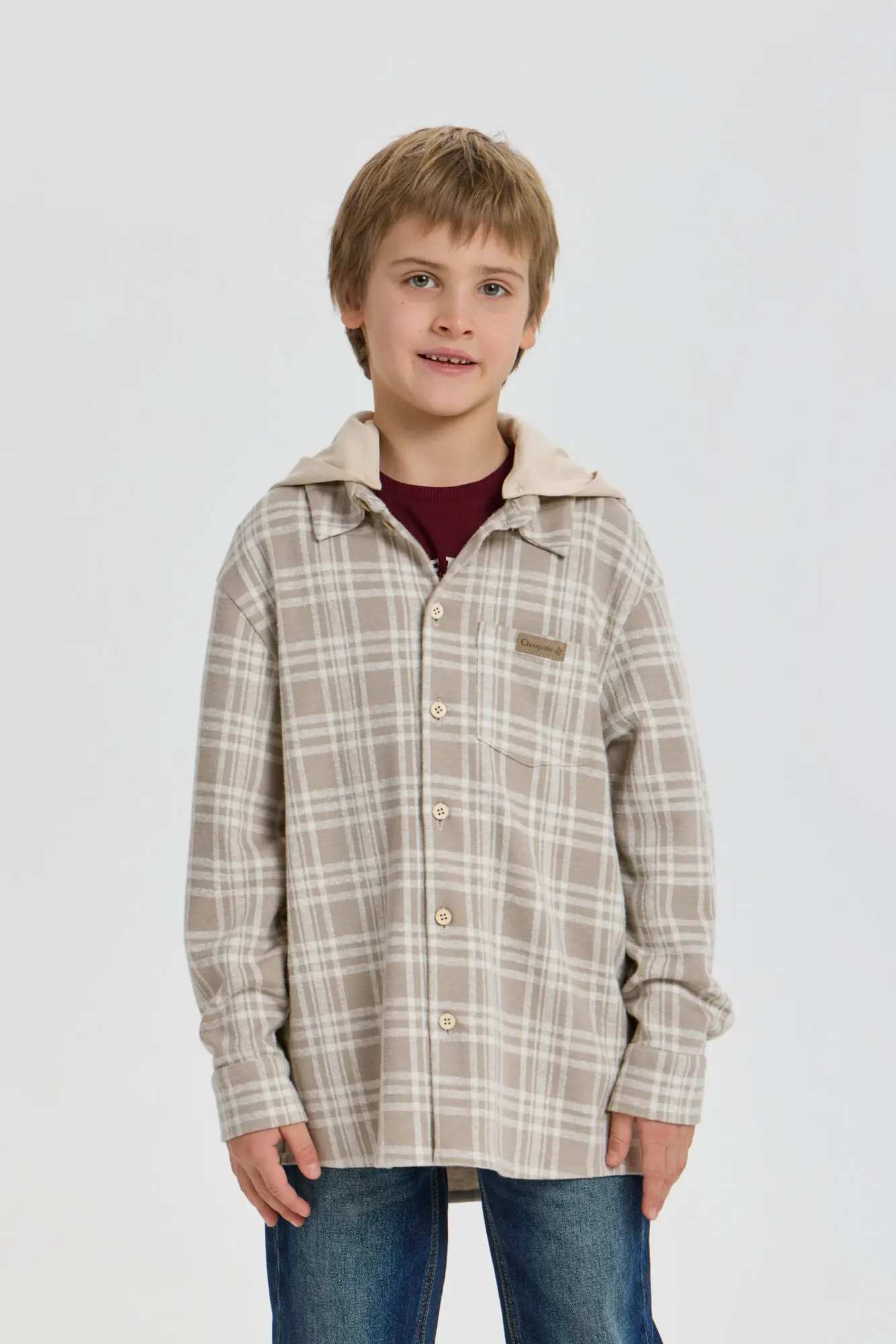 Стильная рубашка в клетку для мальчика — отличный выбор для создания модных и непринужденных детских образов. Модель свободного кроя оверсайз с удлиненной спинкой. Благодаря длинным рукавам ... со спущенной линией плеча, нагрудному карману и трикотажному капюшону, рубашка является трендом подростковой моды. Клетчатая рубашка прекрасно дополнит любой образ в стиле городской моды и станет отличным вариантом для любого времени года.