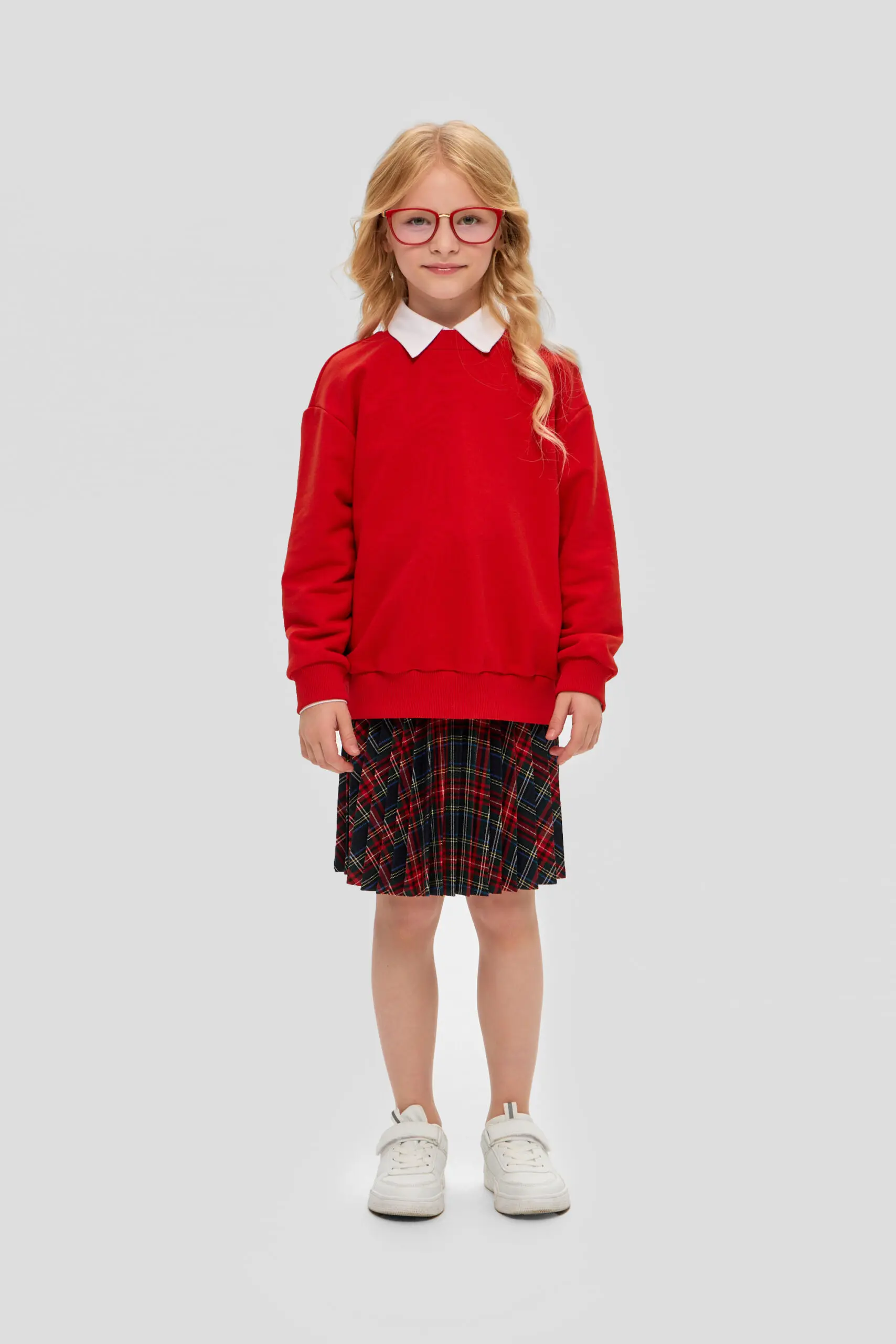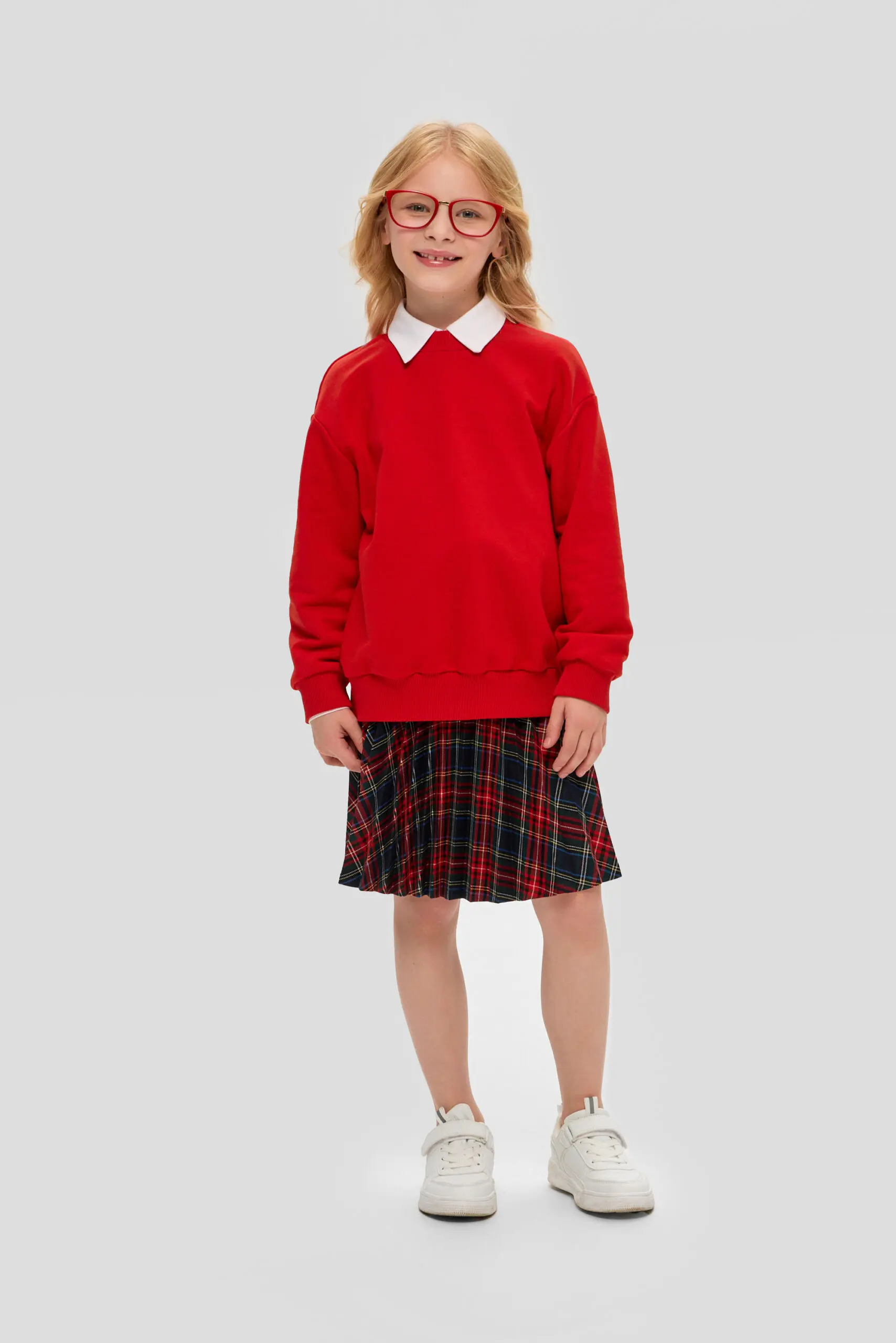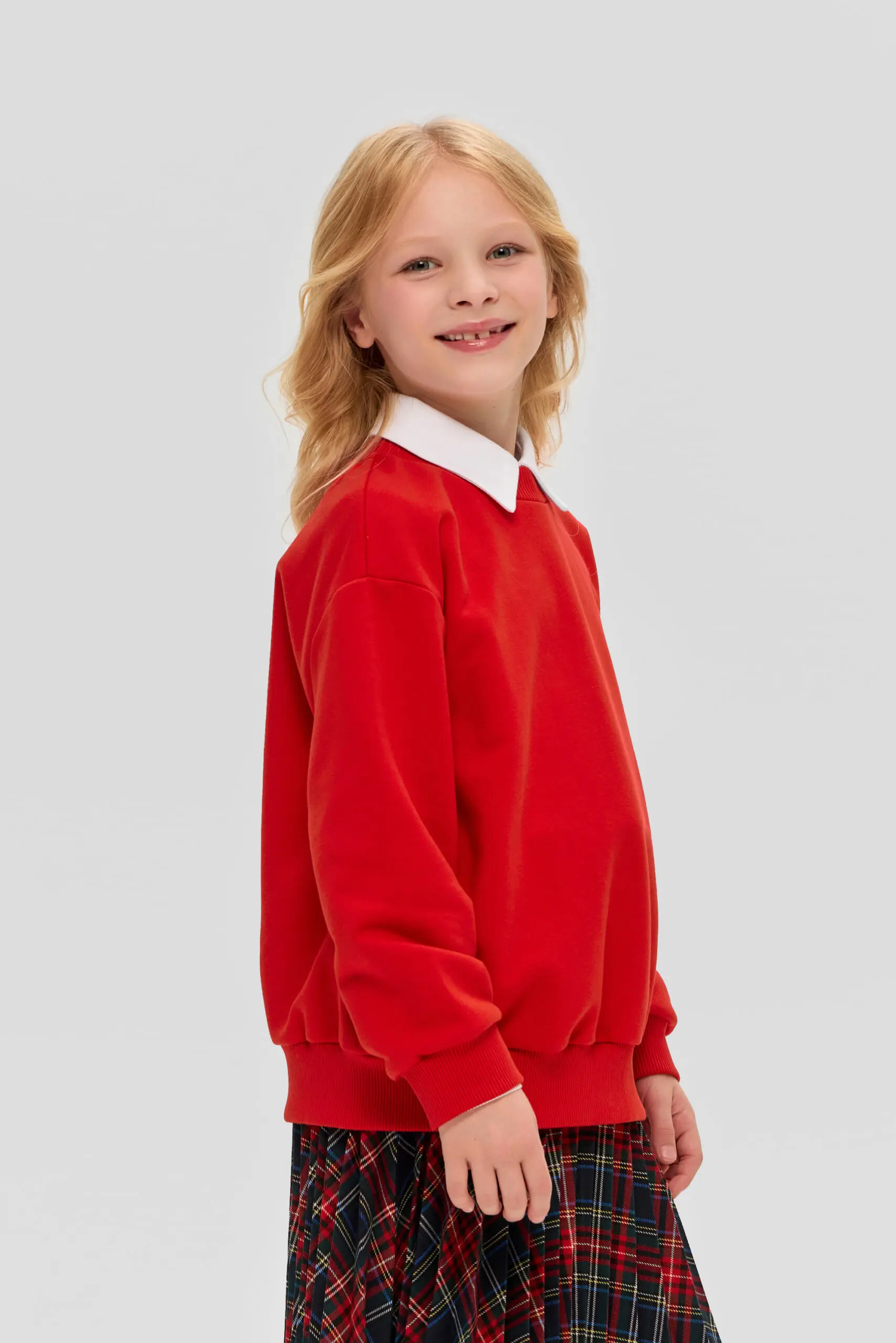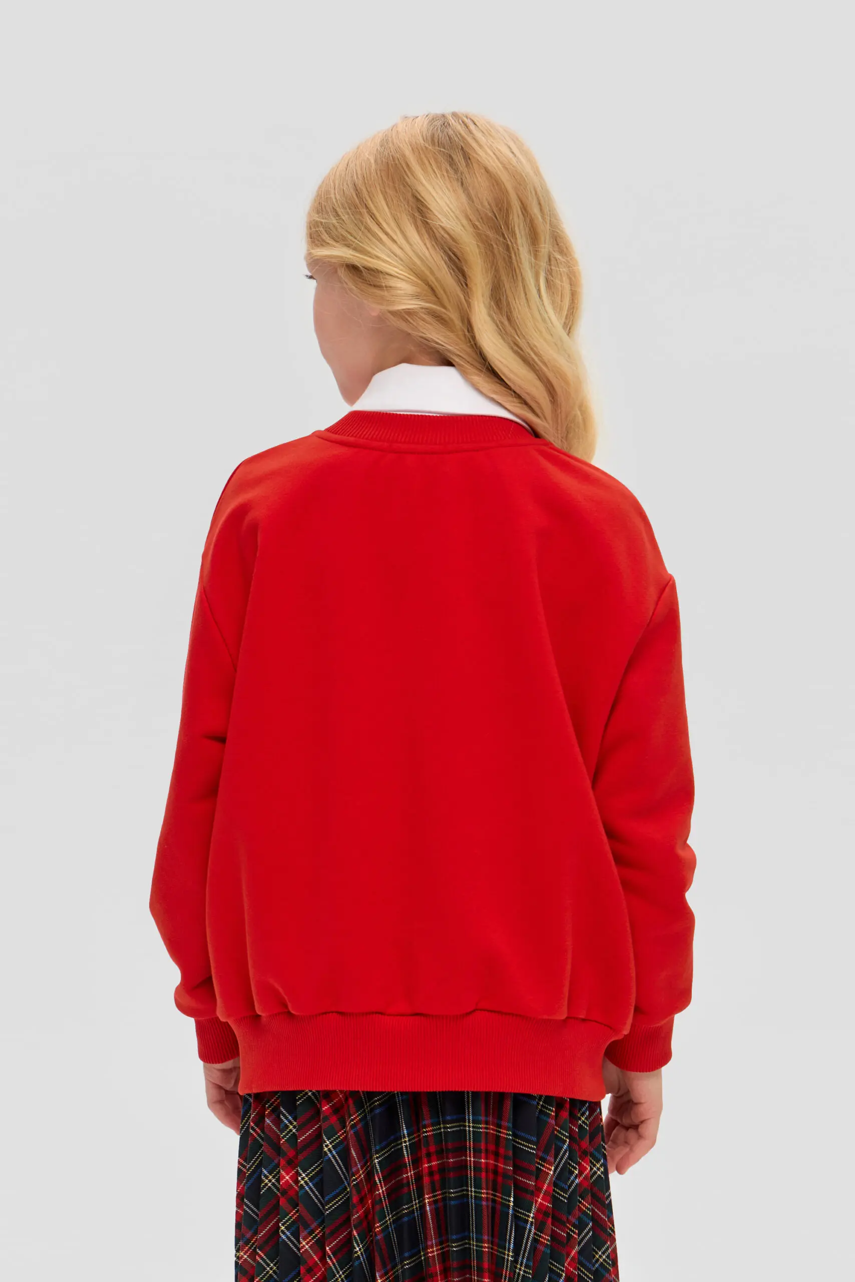 Стильный и яркий джемпер для девочки – практичная и многофункциональная деталь гардероба, уместная как в учебном заведении, так и на повседневных мероприятиях. Свободный силуэт свитшота и ... округлый вырез горловины, обработан изящной бейкой, формируют современный облик. Длинные рукава и подол джемпера оформлены широкими эластичными манжетами, добавляющими модели неповторимости. Этот джемпер превосходно сочетается с юбками и брюками различных фасонов. В комбинации с белой блузой с отложным воротником он позволит создать праздничный ансамбль.