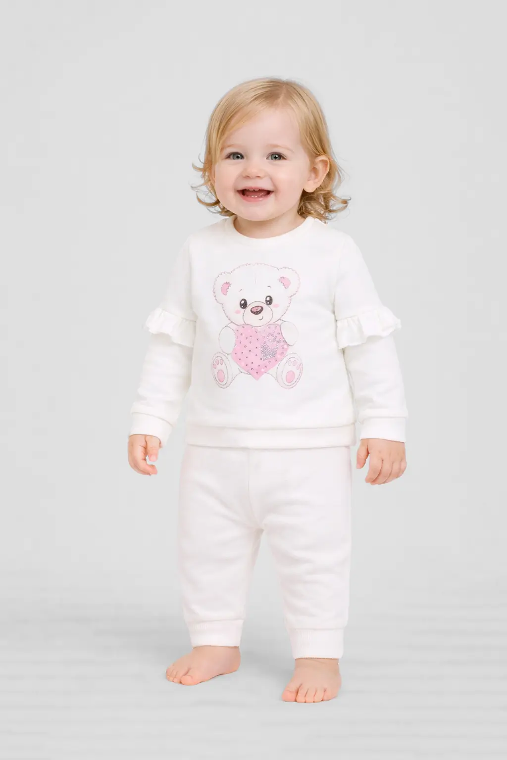 Идеальный свитшот для девочки станет жемчужиной весенне-летнего сезона. Эта модель свободного силуэта, с округлым вырезом под горло, сшита из нежного хлопкового трикотажа. Длиные рукава украшены изящными ... оборками. Застёжка на кнопках, расположенная на плечевом шве, делает переодевание очень удобным. Оригинальный декор представлен крупным принтом и сверкающими стразами. Низ изделия и рукава оформлены притачной манжетой. Такой свитшот отлично сочетается с брюками и разнообразными юбками.