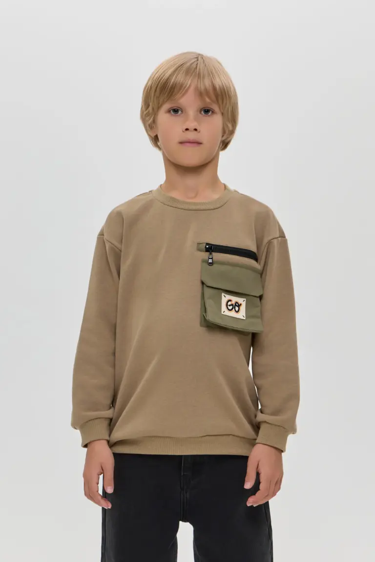 Свитшот для мальчиков в цвете хаки — идеальный выбор для активных и стильных детей. Изготовленный из ткани с преимущественным содержанием высококачественного хлопка, он обеспечивает ребенку максимум ... комфорта.