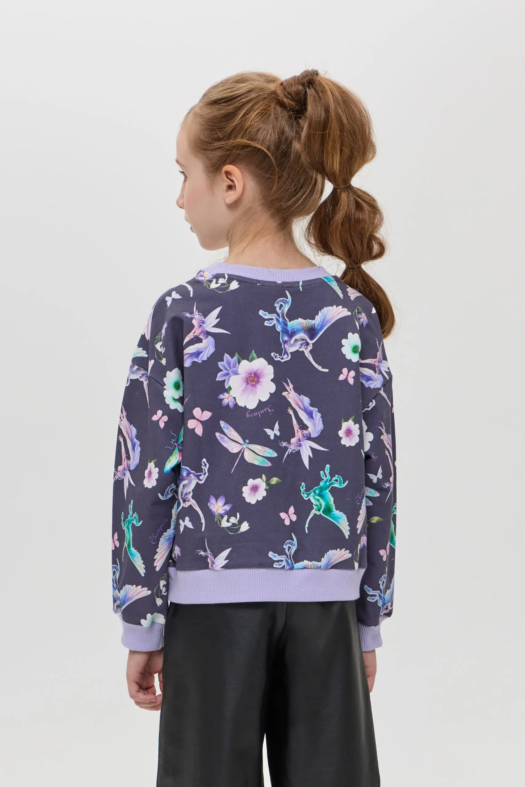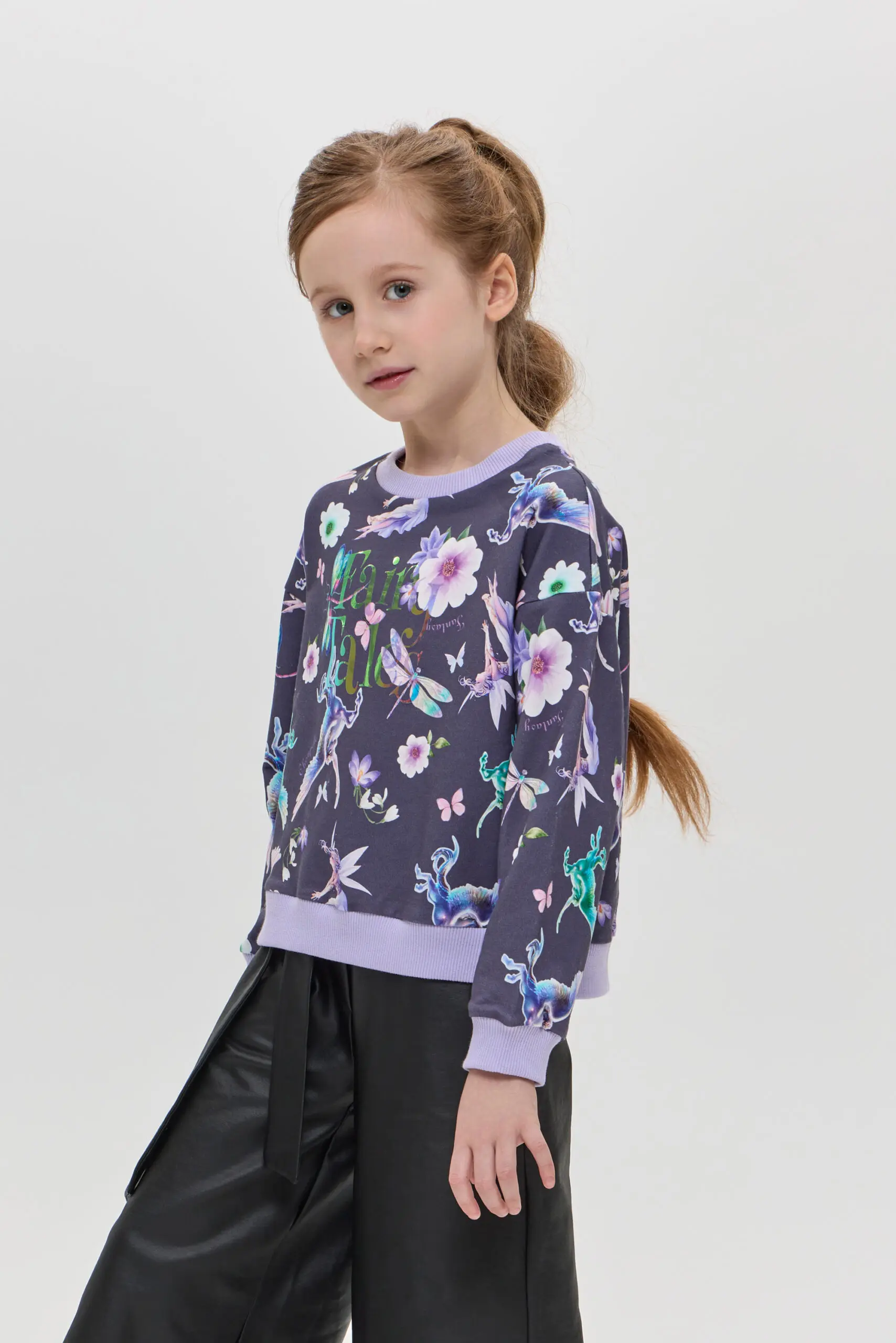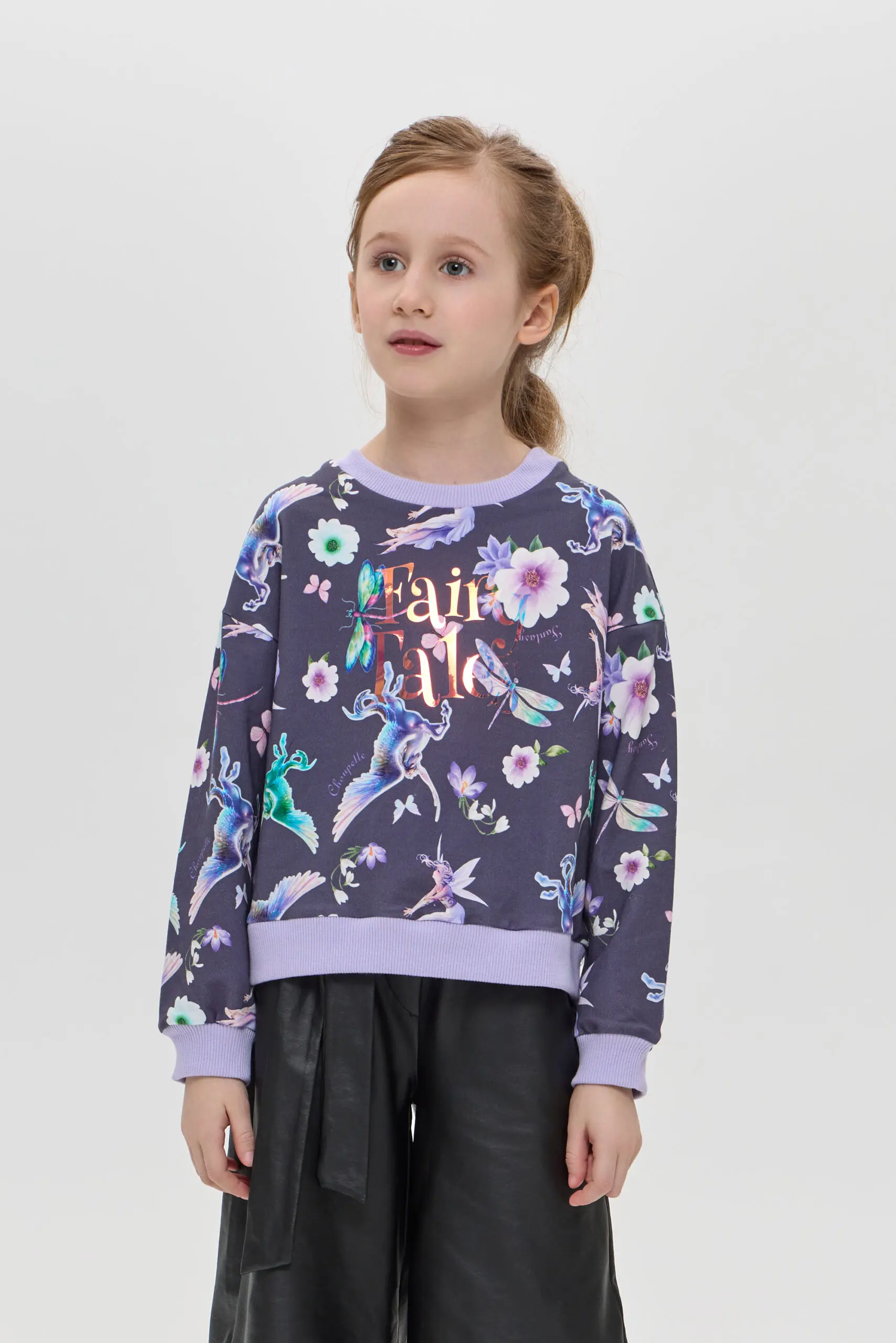 Трикотажный свитшот для девочки — это не просто элемент гардероба, а настоящая находка для каждой маленькой модницы. Удобная хлопковая модель свободного кроя обеспечивает максимальный комфорт на ... протяжении всего дня, позволяя свободно двигаться и играть. Округлый вырез горловины и длинные рукава с манжетами добавляют стильный штрих. Свитшот легко комбинируется с различными предметами гардероба: его можно носить как с юбками, так и с джинсами или брюками.