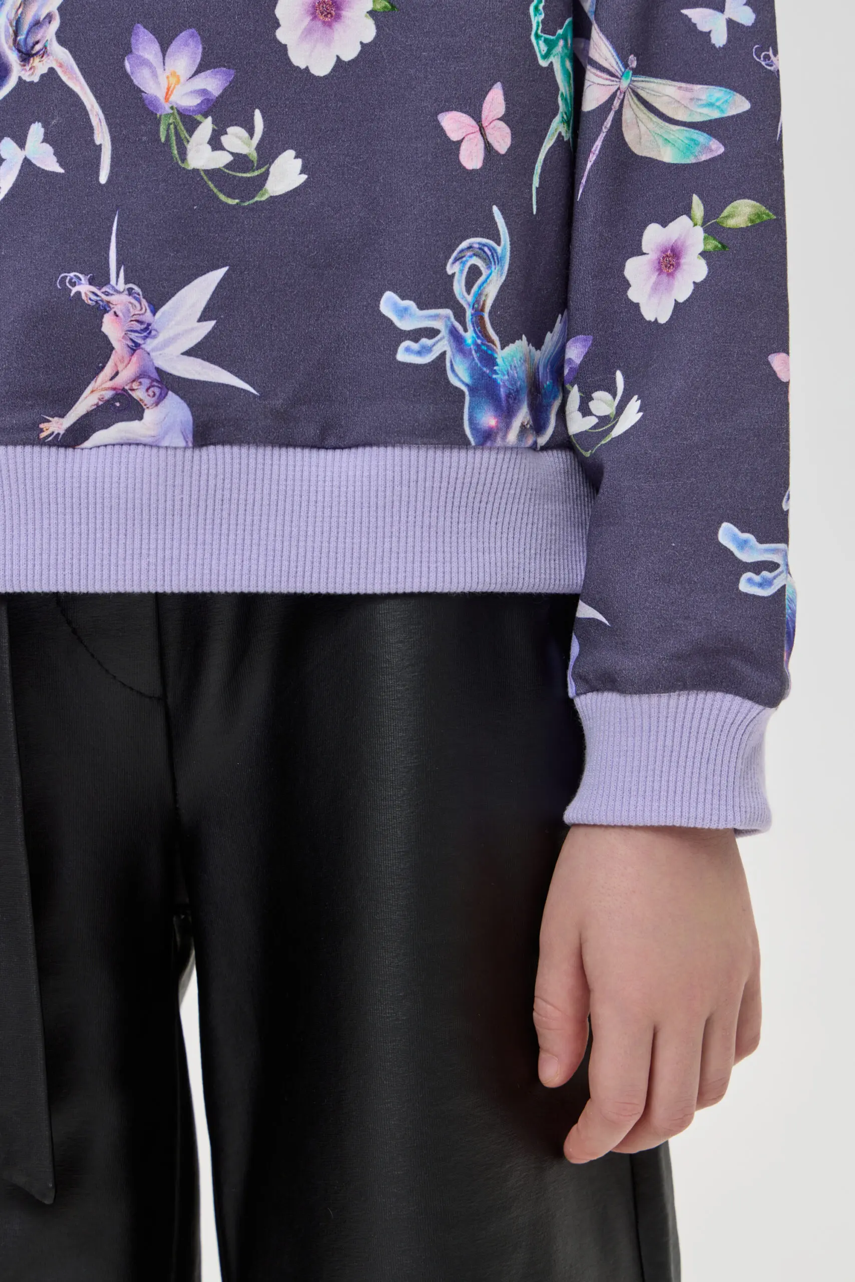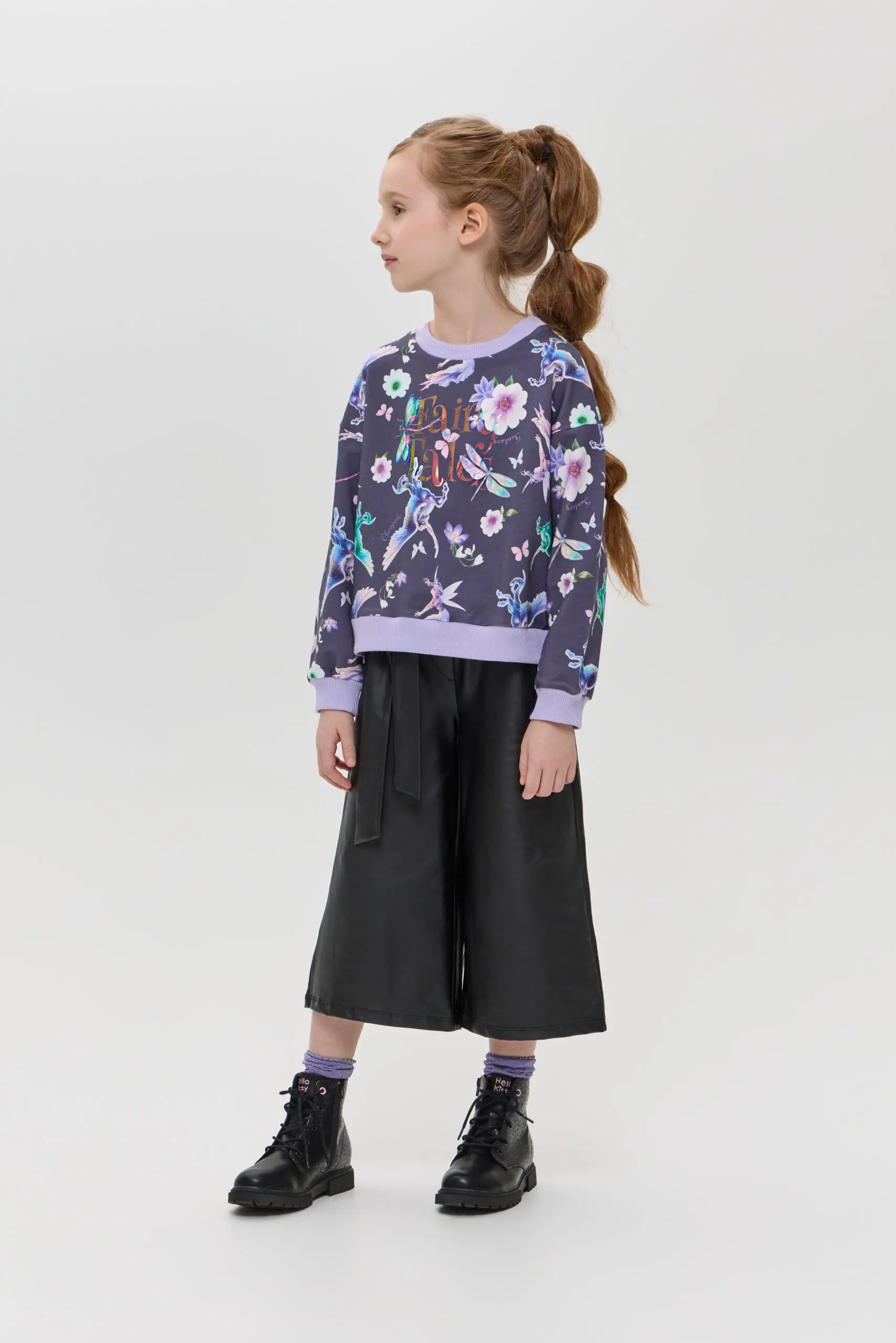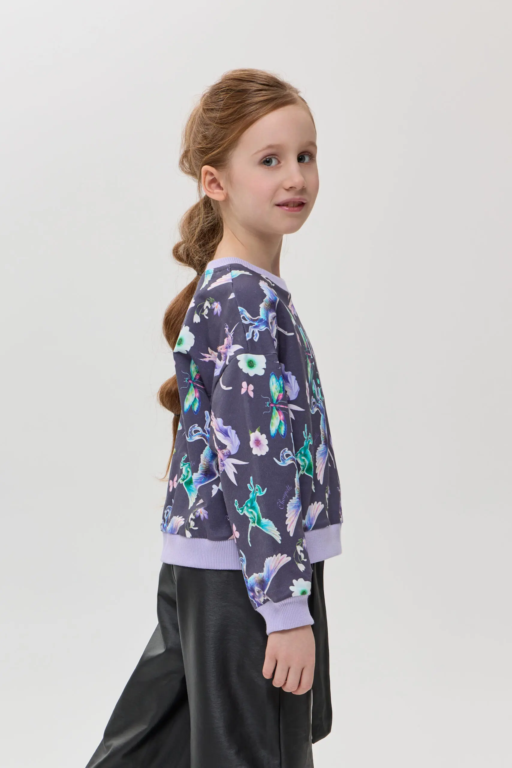 Трикотажный свитшот для девочки — это не просто элемент гардероба, а настоящая находка для каждой маленькой модницы. Удобная хлопковая модель свободного кроя обеспечивает максимальный комфорт на ... протяжении всего дня, позволяя свободно двигаться и играть. Округлый вырез горловины и длинные рукава с манжетами добавляют стильный штрих. Свитшот легко комбинируется с различными предметами гардероба: его можно носить как с юбками, так и с джинсами или брюками.