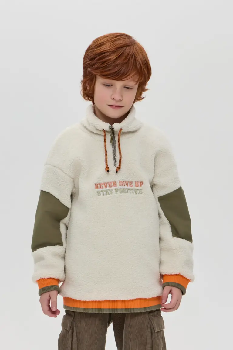 Детская толстовка в молочном цвете — отличный выбор для стильных и активных детей. Она выполнена из мягкого и приятного на ощупь материала. Толстовка имеет контрастные вставки ... на рукавах, что придает ей динамичный и современный вид. Яркий оранжевый кант на поясе и манжетах не только добавляет акцентов, но и подчеркивает общий стиль изделия, делая его более выразительным и привлекательным. Высокий ворот защищает от холода и создает уютное ощущение. Эта толстовка легко комбинируется с джинсами и спортивными брюками.