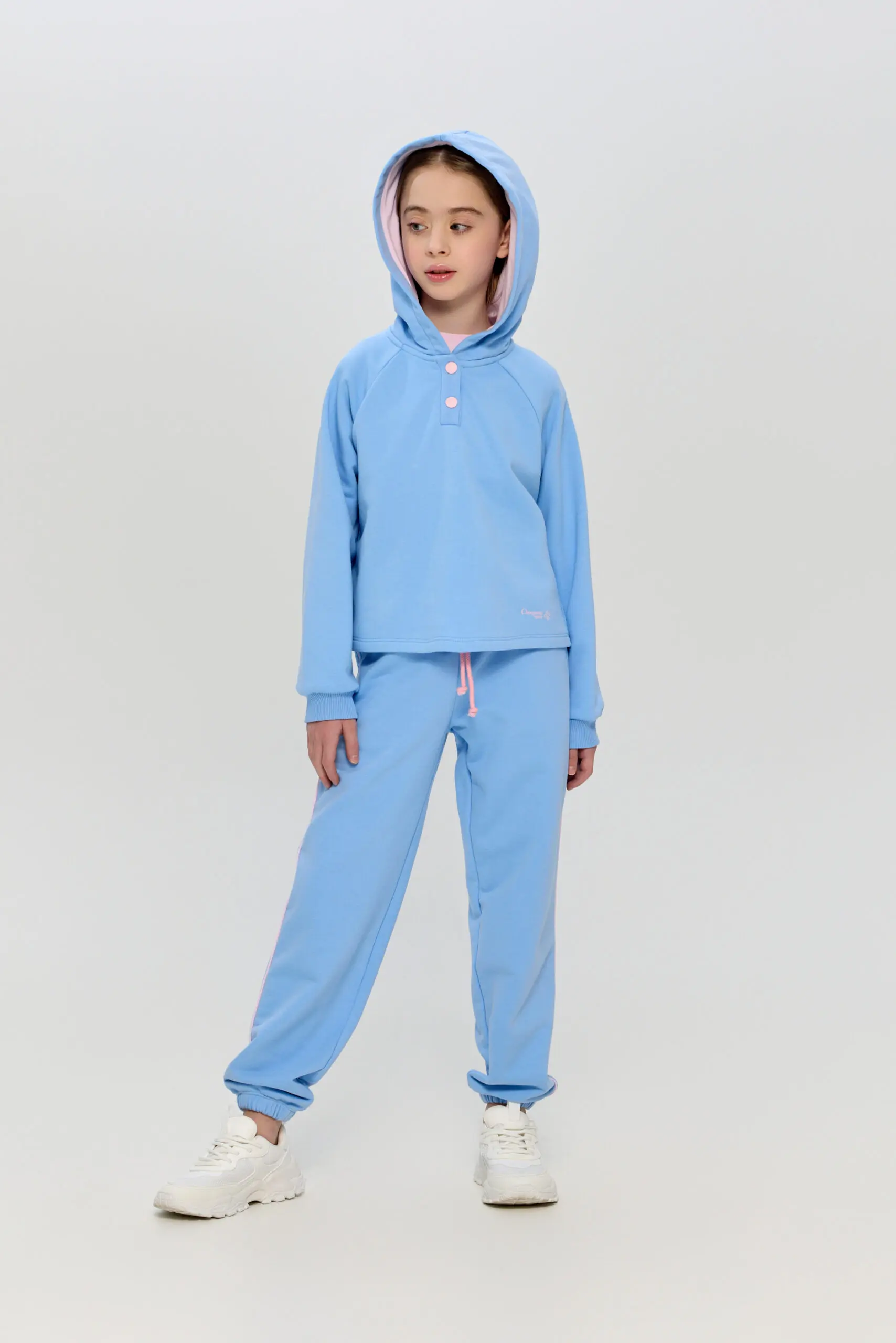 Худи спортивного стиля – отличный выбор для девочек, предпочитающих удобство и современный вид. Мягкий трикотажный материал обеспечивает ощущение тепла и уюта в прохладную погоду. Модель свободного ... силуэта, длинные рукава на манжетах. Застегивается на кнопки. Эта толстовка прекрасно подойдет как для спортивных тренировок, так и для активного отдыха на природе или повседневной носки. Практичный капюшон укроет от ветра и станет стильным дополнением к образу.