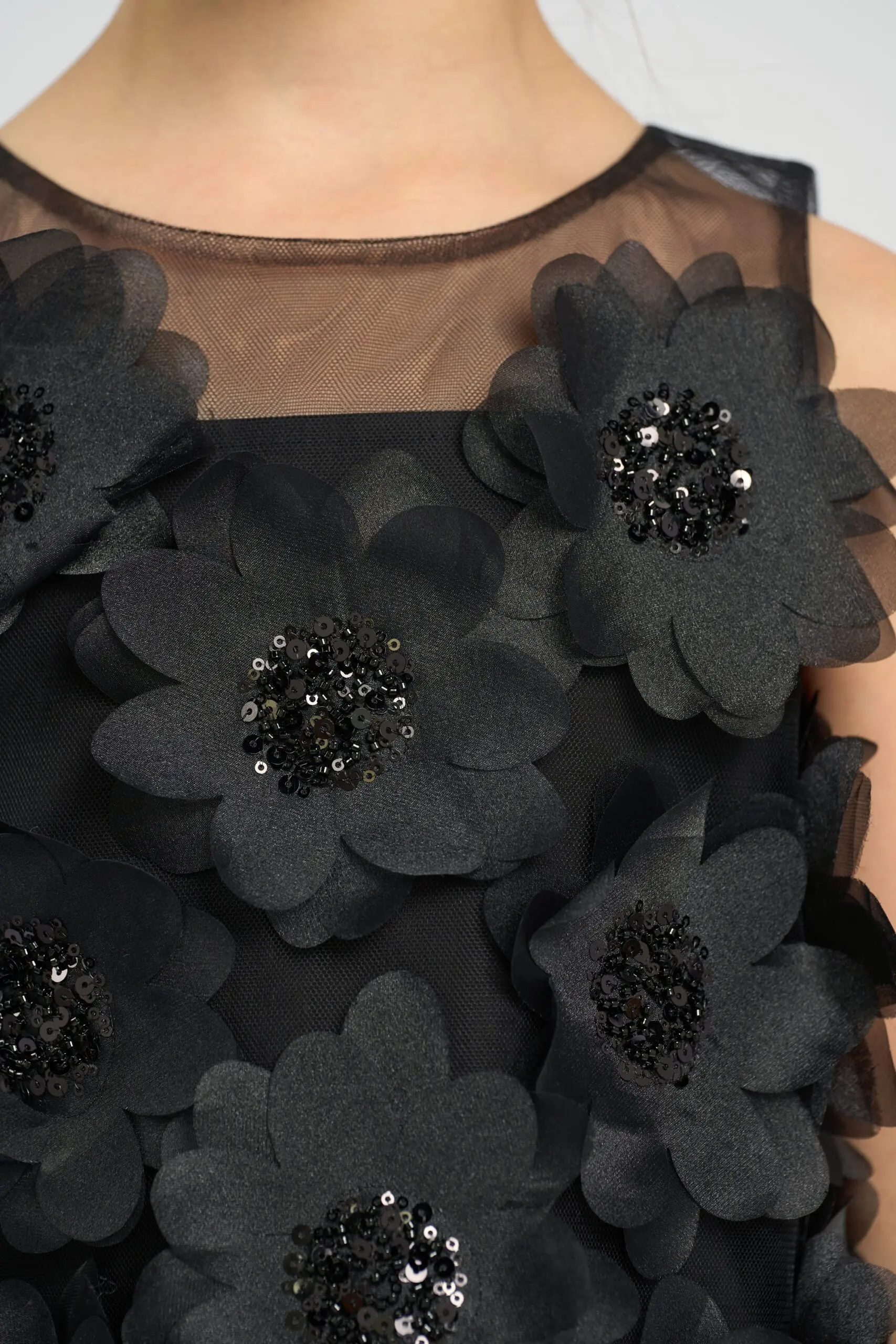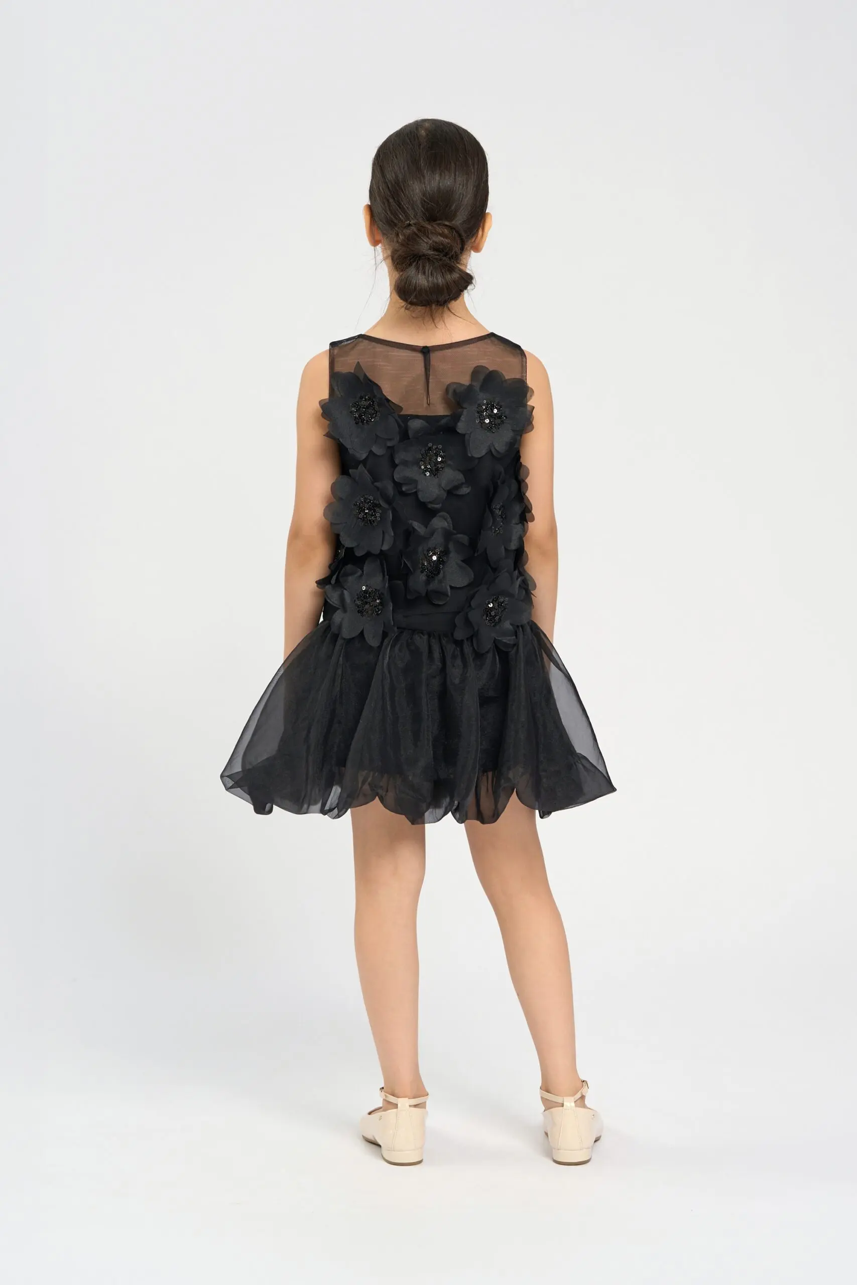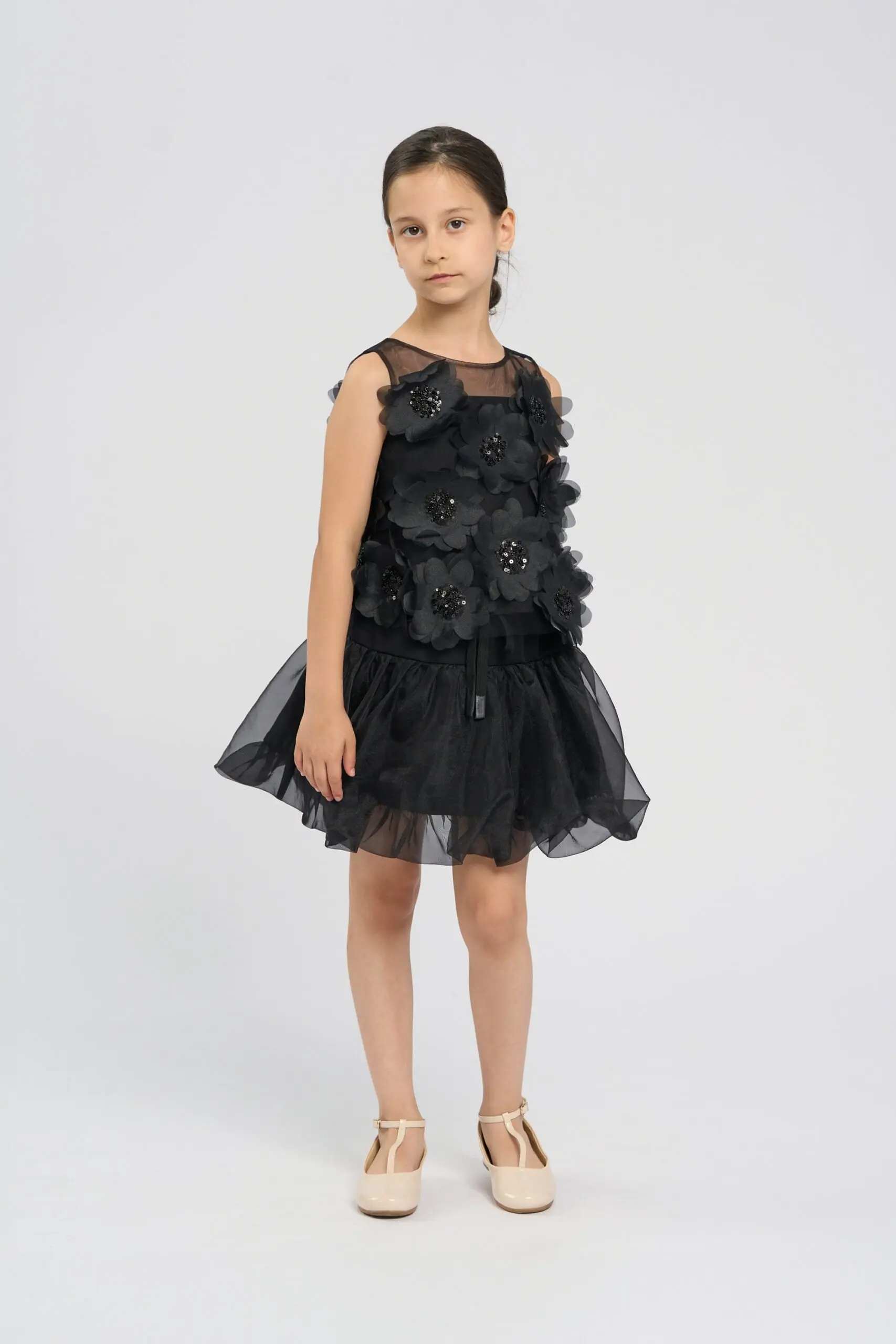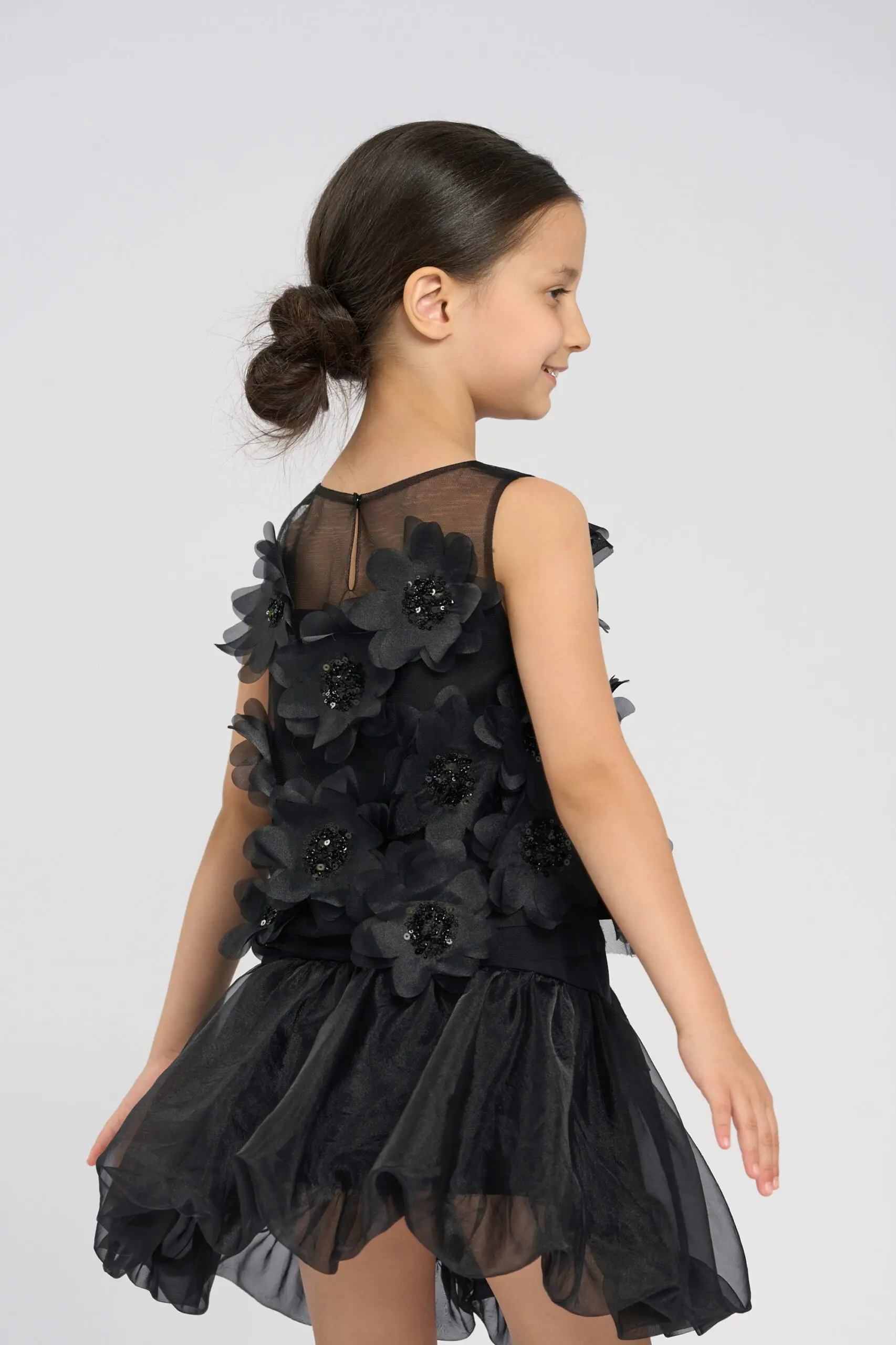 Чёрный топ с объёмными цветами для девочки – невероятно стильная и выразительная деталь детского гардероба. Объёмные цветы на передней части топа делают модель уникальной. Цветы придают ... топу выразительный и элегантный вид, который привлекает внимание и выделяет его. Сетка на плечах добавляет вечернюю ноту. Застёжка на пуговицу на спинке обеспечивает удобное надевание и снятие модели. Топ отлично подходит для создания как вечерних, так и повседневных образов с акцентом на оригинальность и стиль.