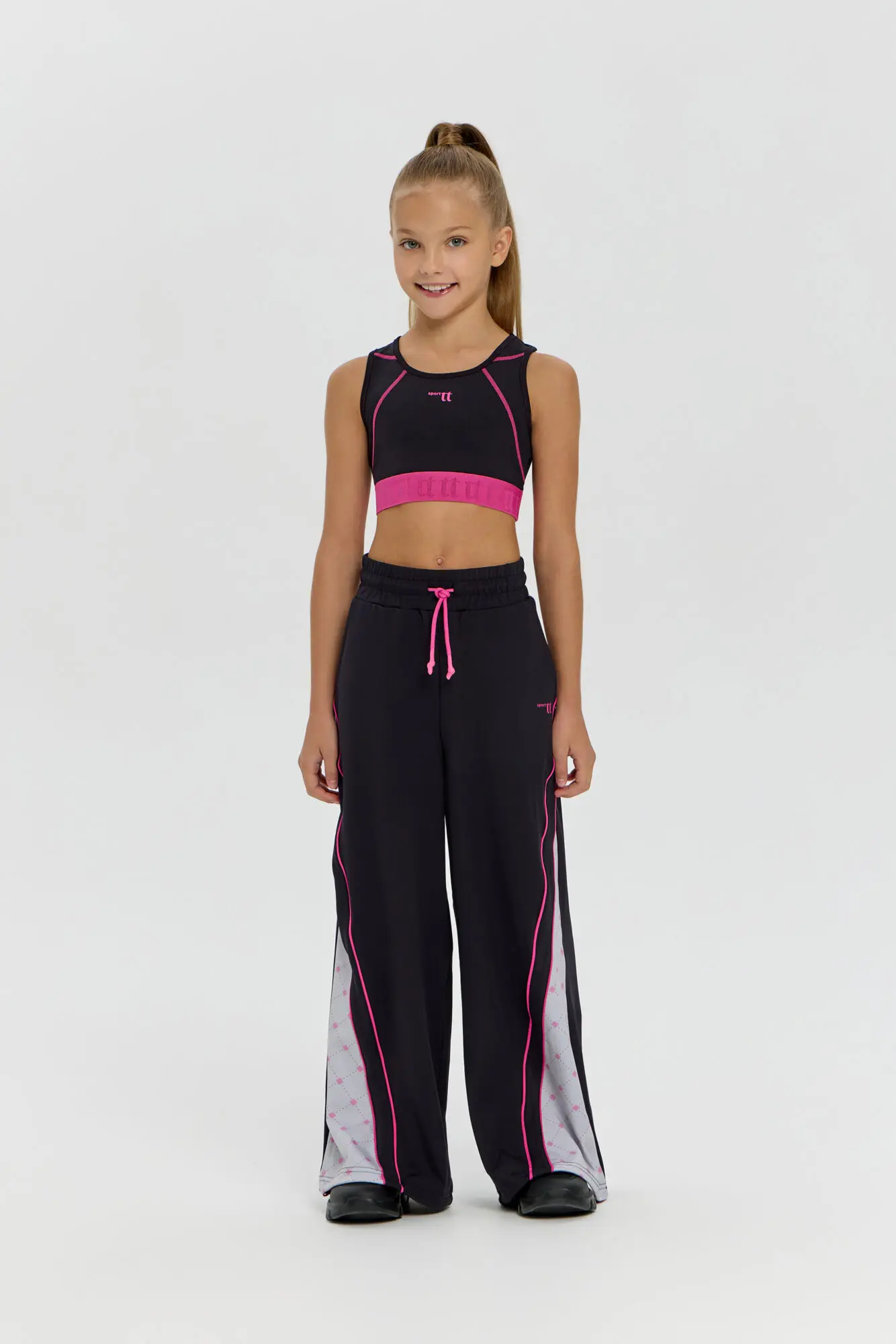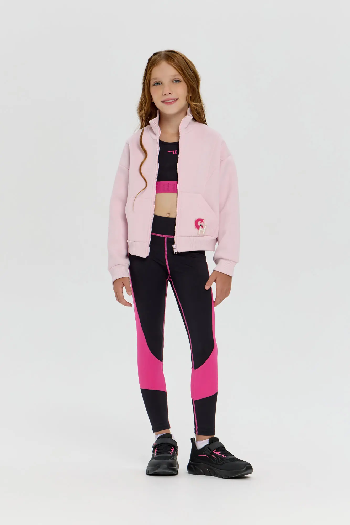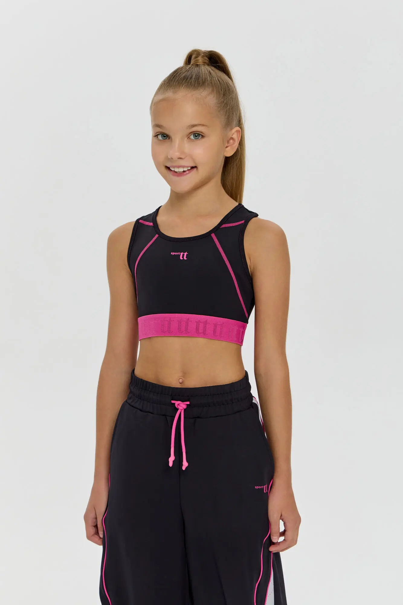 Функциональный спортивный топ для девочек, созданный для активных тренировок и танцев. Чёрно-розовая расцветка подчёркивает динамичный стиль, а фактурная эластичная резинка фиксирует изделие и обеспечивает комфорт при ... движении. Материал с технологией CH Dry обеспечивает отличную воздухопроницаемость и отводит влагу. Прекрасно комбинируется с лосинами, формируя полноценный костюм для занятий спортом, фитнесом или танцами. В прохладную погоду ансамбль можно дополнить модным рашгардом.