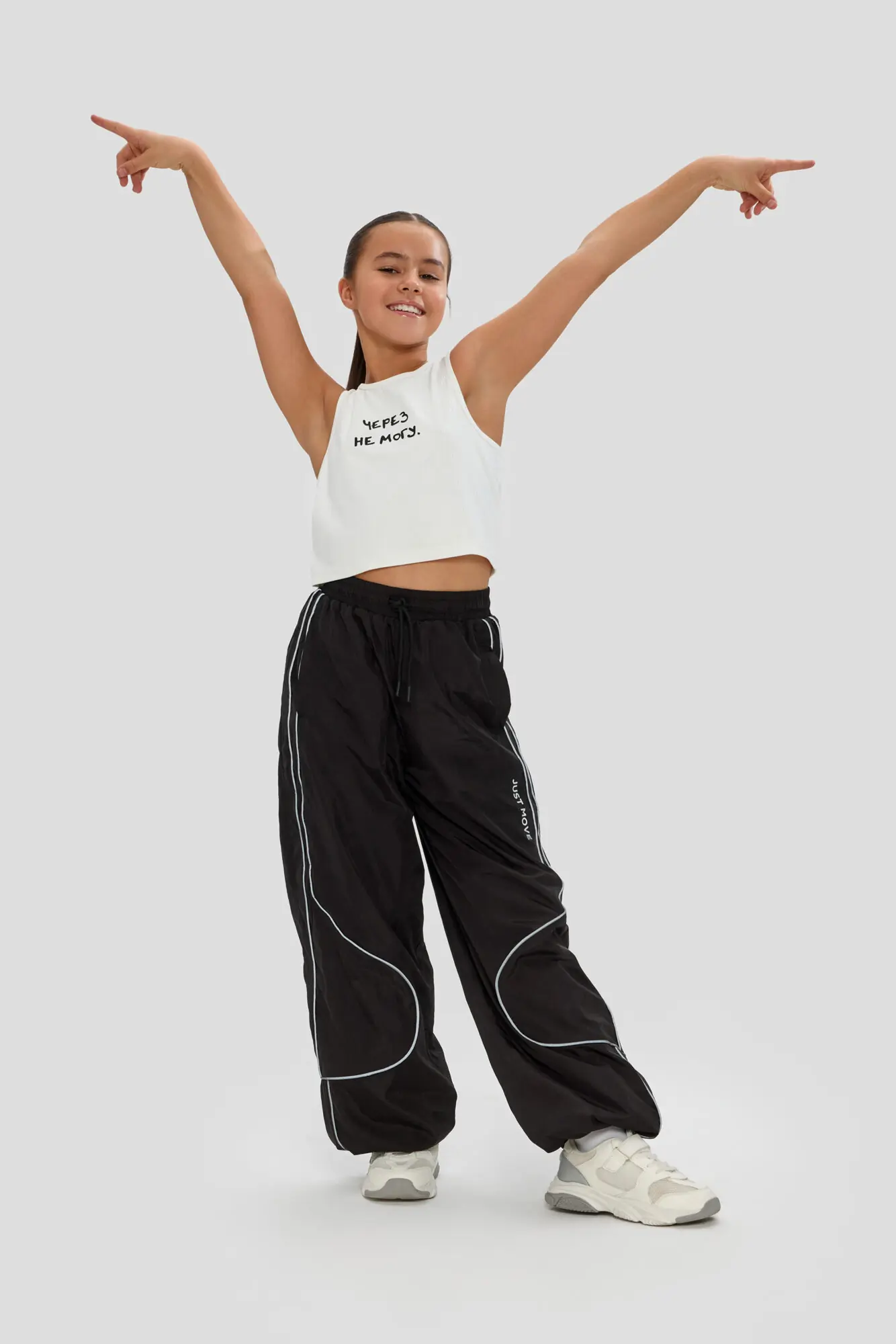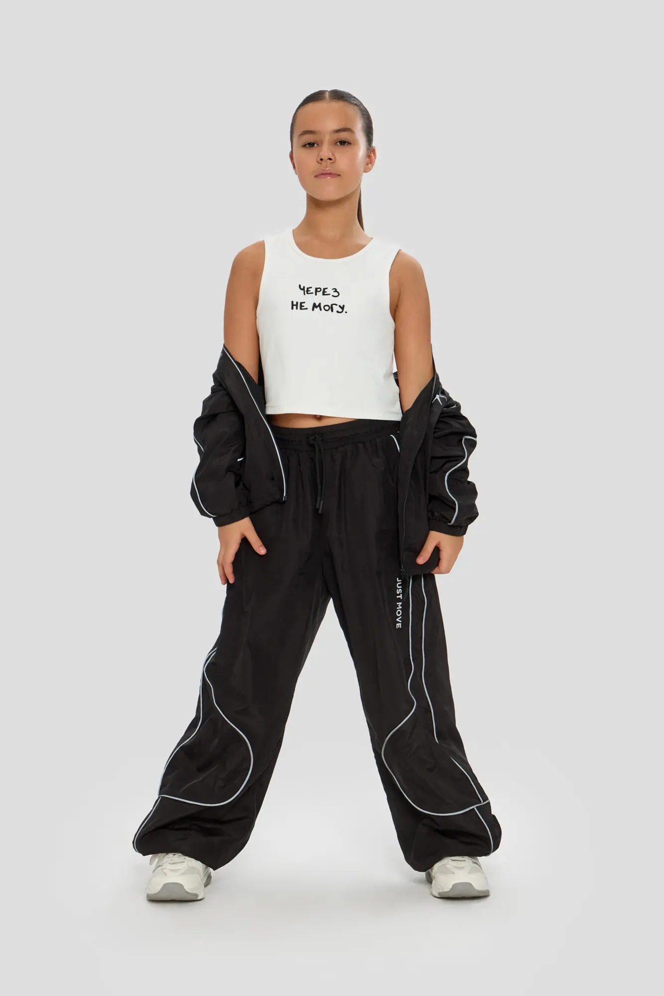 Майка из трикотажного полотна "лапша" коллекции TODES x Choupette прекрасно подойдет для активных тренировок, сценических номеров, репетиций и повседневного использования в стилистике стрит и хип-хоп культуры. ... Она уместна для кэжуал-образов, посещения баттлов, работы в студии, уличных танцев и разминок. Модель полуприлегающего силуэта без рукавов. Мягкий смесовый материал приятен для кожи и не вызывает дискомфорта. Выразительный текстовый принт с вдохновляющей фразой «Через не могу» добавляет образу яркий акцент.