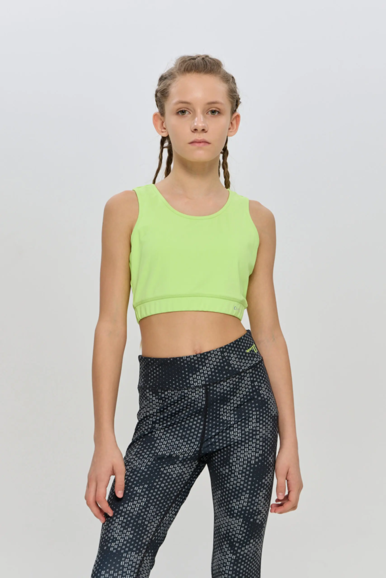 Укороченый топ идеально подойдет юной спортсменке. Изготовленный из спортивного эластичного трикотажа с технологией отводящей влагу, он обеспечит комфорт во время активных тренировок, будь то бег, теннис ... или фитнес. Облегающий силуэт, бретели и эластичная резинка внизу обеспечивают надежную посадку.
