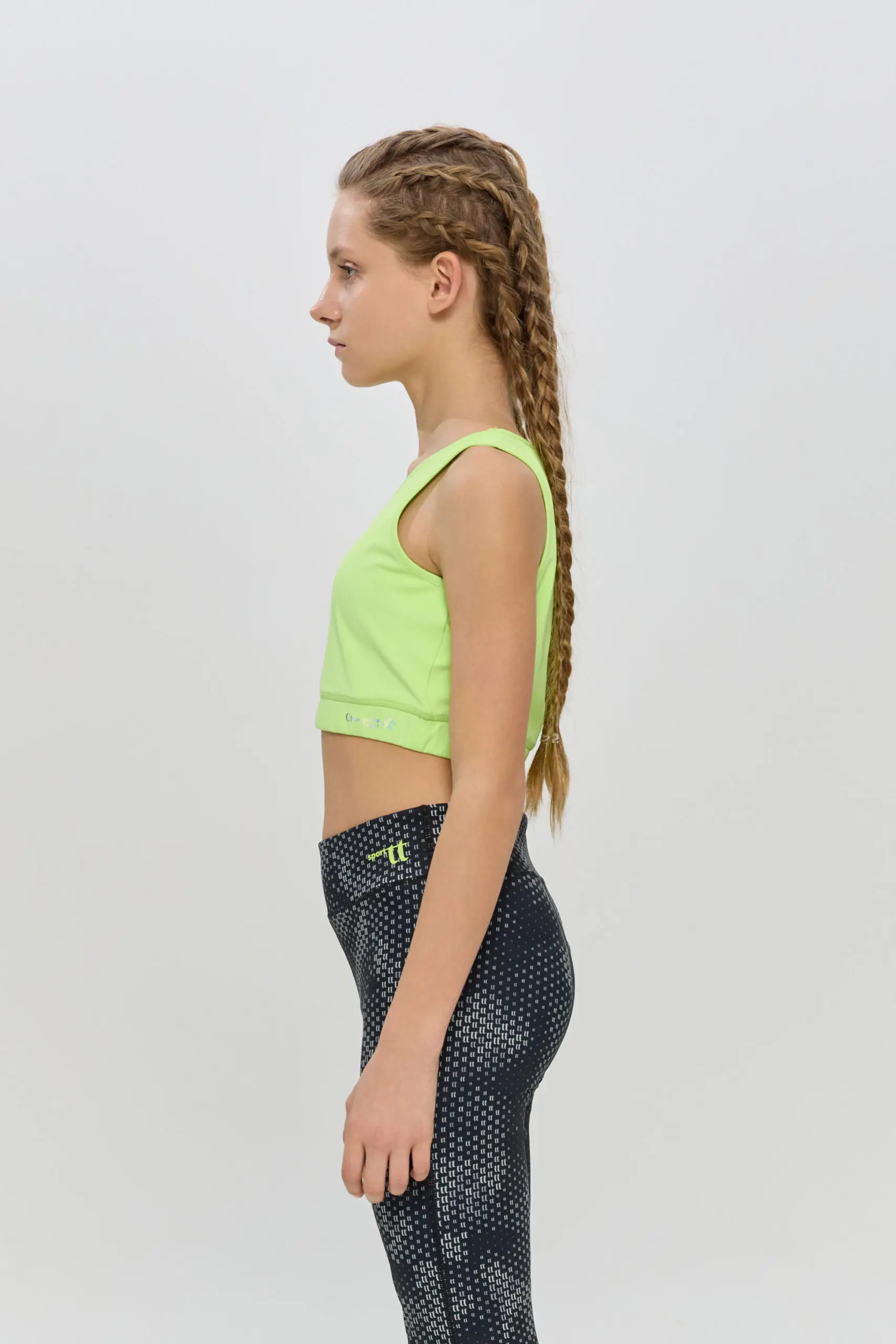 Укороченый топ идеально подойдет юной спортсменке. Изготовленный из бифлекса с технологией CH Dry, отводящей влагу, он обеспечит комфорт во время активных тренировок, будь то бег, теннис ... или фитнес. Облегающий силуэт, бретели и эластичная резинка внизу обеспечивают надежную посадку.