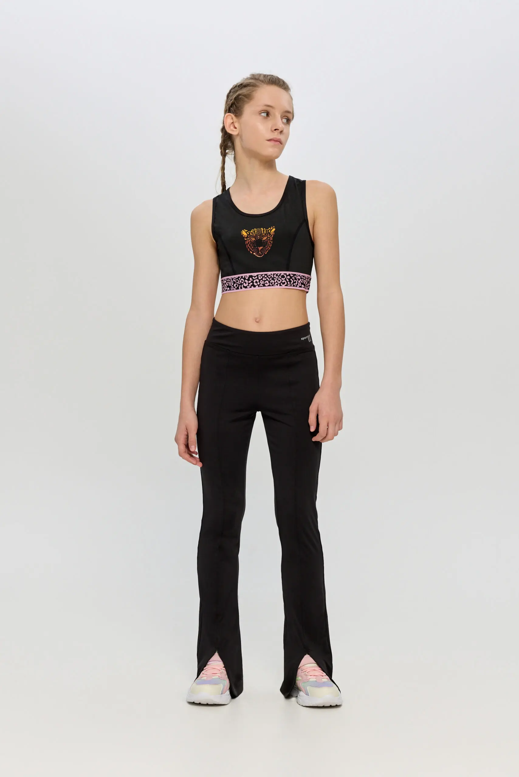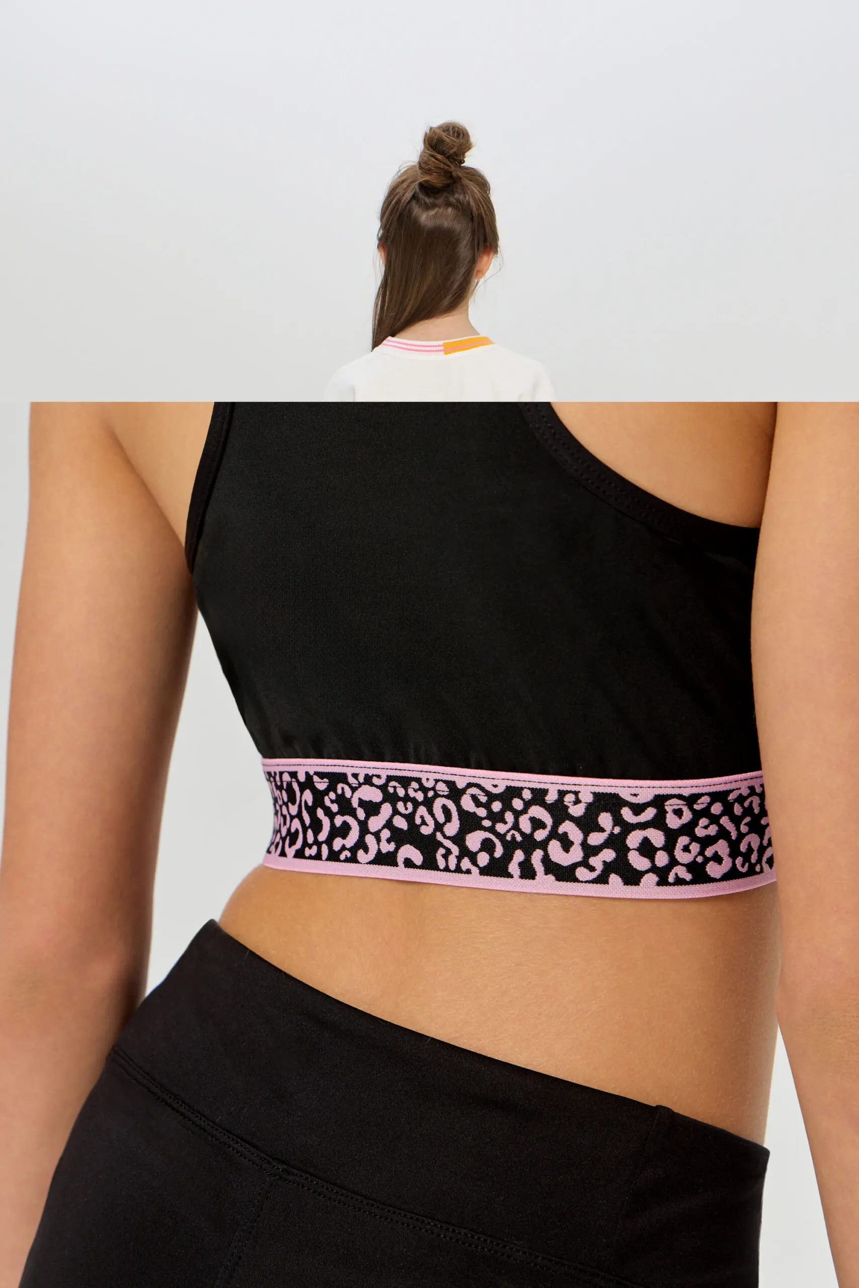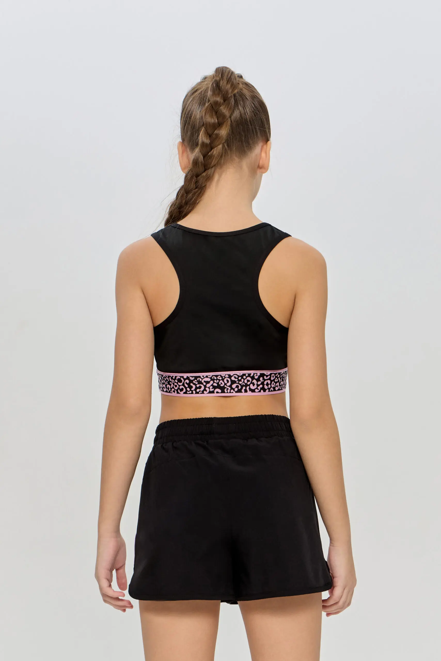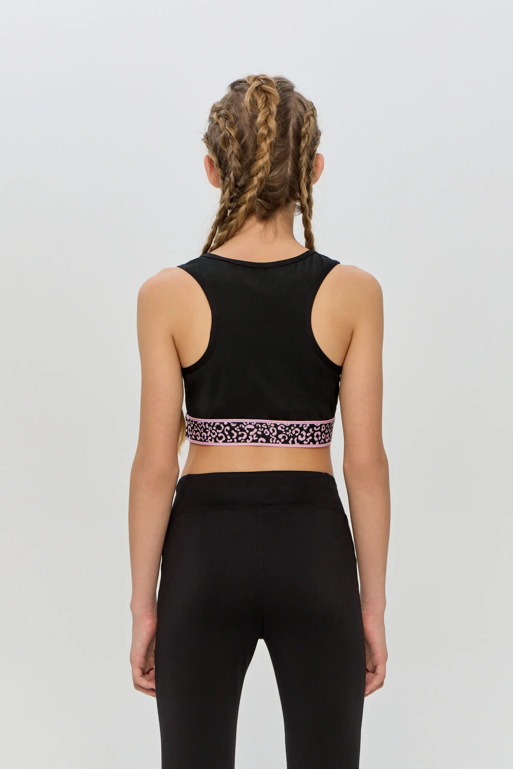 Прекрасное дополнение гардероба юной спортсменки − укороченный топ для девочки с трендовым анималистичным принтом сочетает в себе качество и удобство. Стильная модель из бифлекса отличается высоким ... качеством изготовления, эластичная ткань хорошо тянется, обеспечивая ребенку комфорт во время тренировок. Инновационная ткань с технологией CH Dry, отводящей влагу, неприхотлива в уходе.