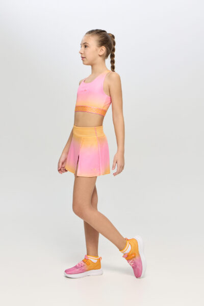 Спортивный топ для девочки отличная модель для занятий спортом. Благодаря использованию материала бифлекс с влагоотводящей технологией CH Dry, ребёнку будет комфортно во время активных тренировок: бега, ... игры в теннис или фитнеса. Модель прилегающего силуэта, на бретелях и эластичной контрастной резинкой по нижнему краю.