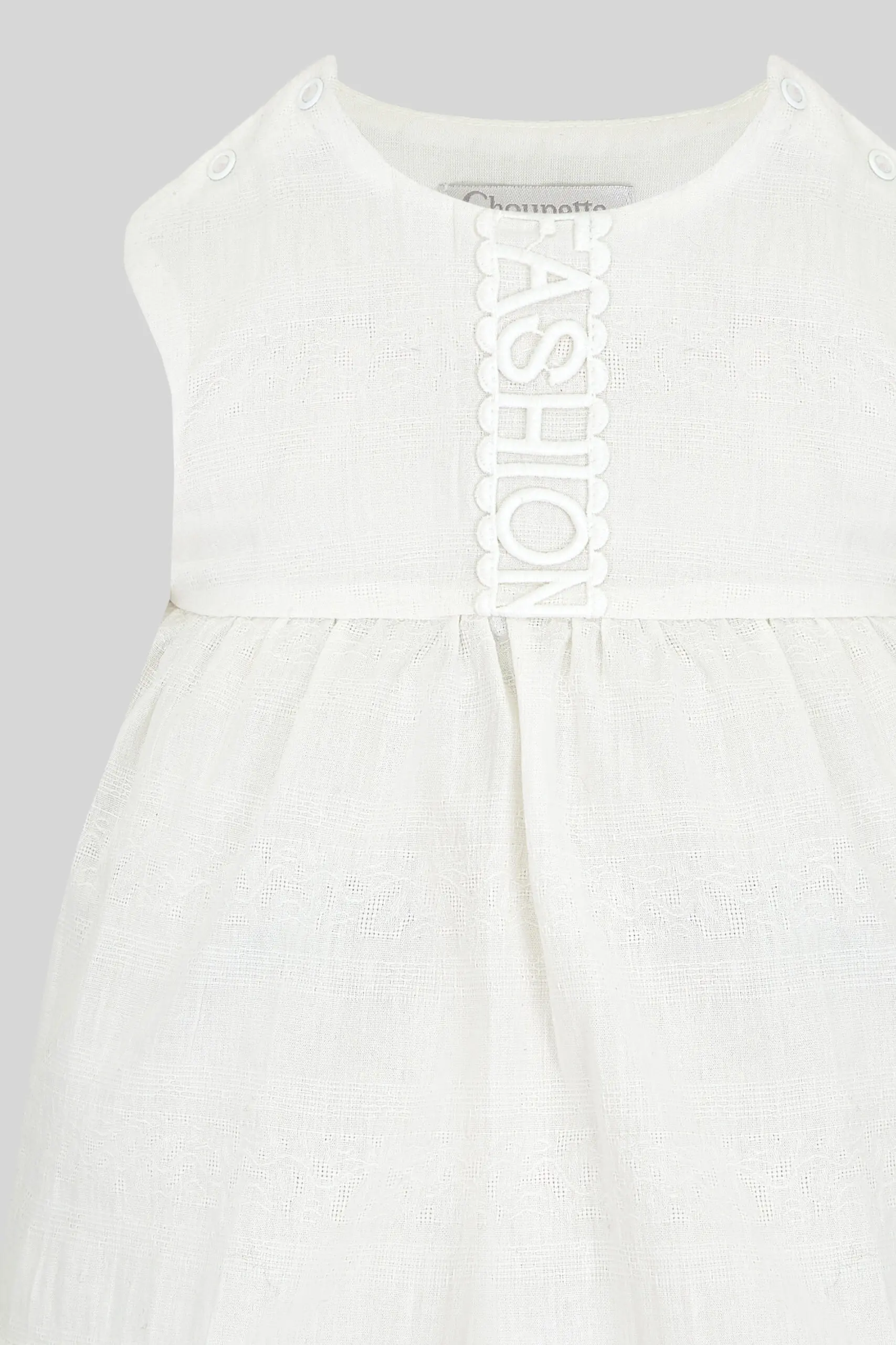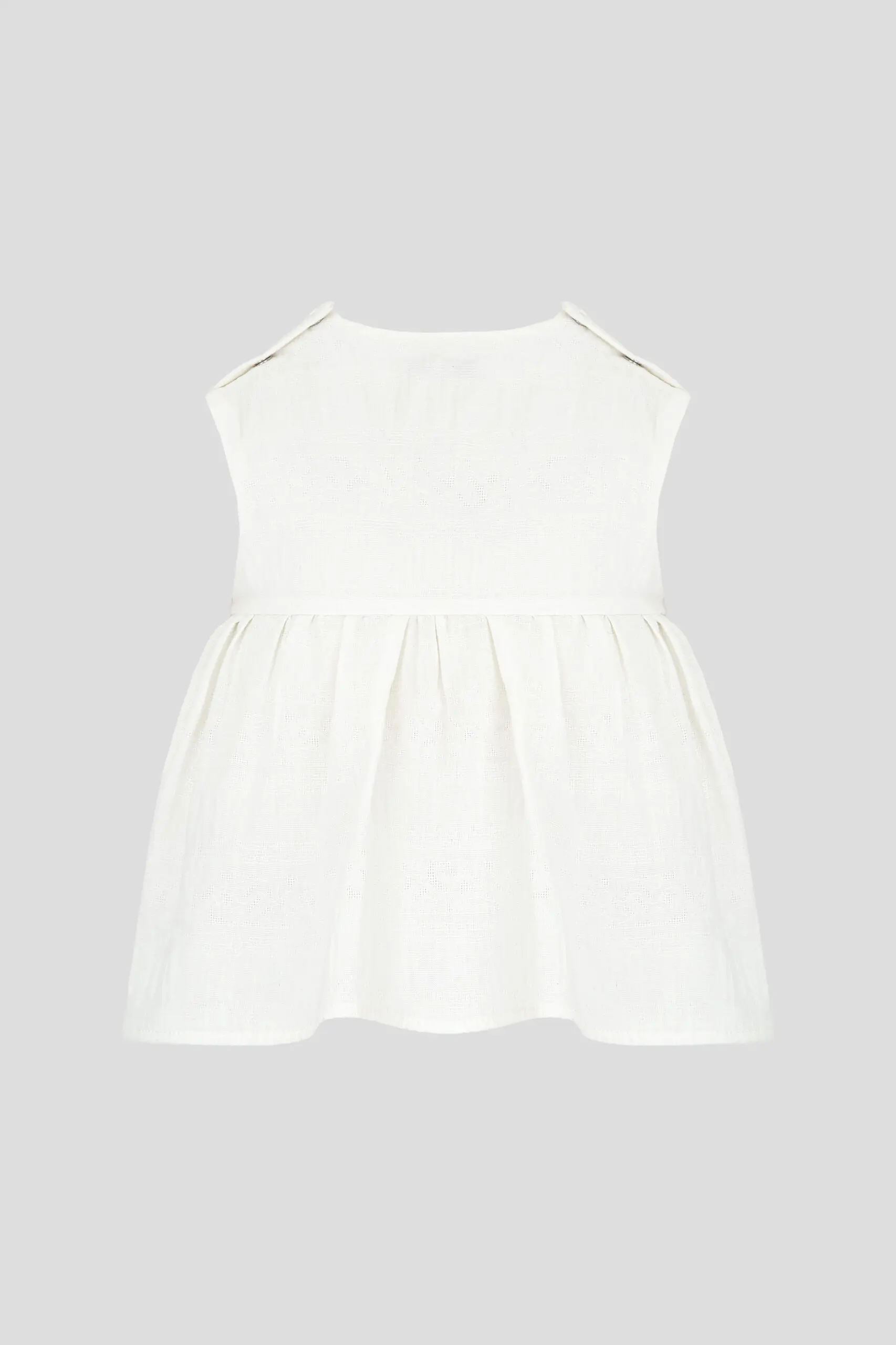 Легкая туника из хлопковой ткани с эффектом "крэш" идеально впишется в летний ансамбль маленькой модницы. Для изготовления этой модели использован "жатый" хлопок, известный своими дышащими свойствами ... и приятной на ощупь текстурой. Необычная мятая фактура придает тунике оригинальный внешний вид. Свободный крой обеспечивает максимальный комфорт и не сковывает движения ребенка. Удобные кнопки на плече облегчают процесс переодевания. Декор в виде брендированной тесьмы акцентирует внимание.