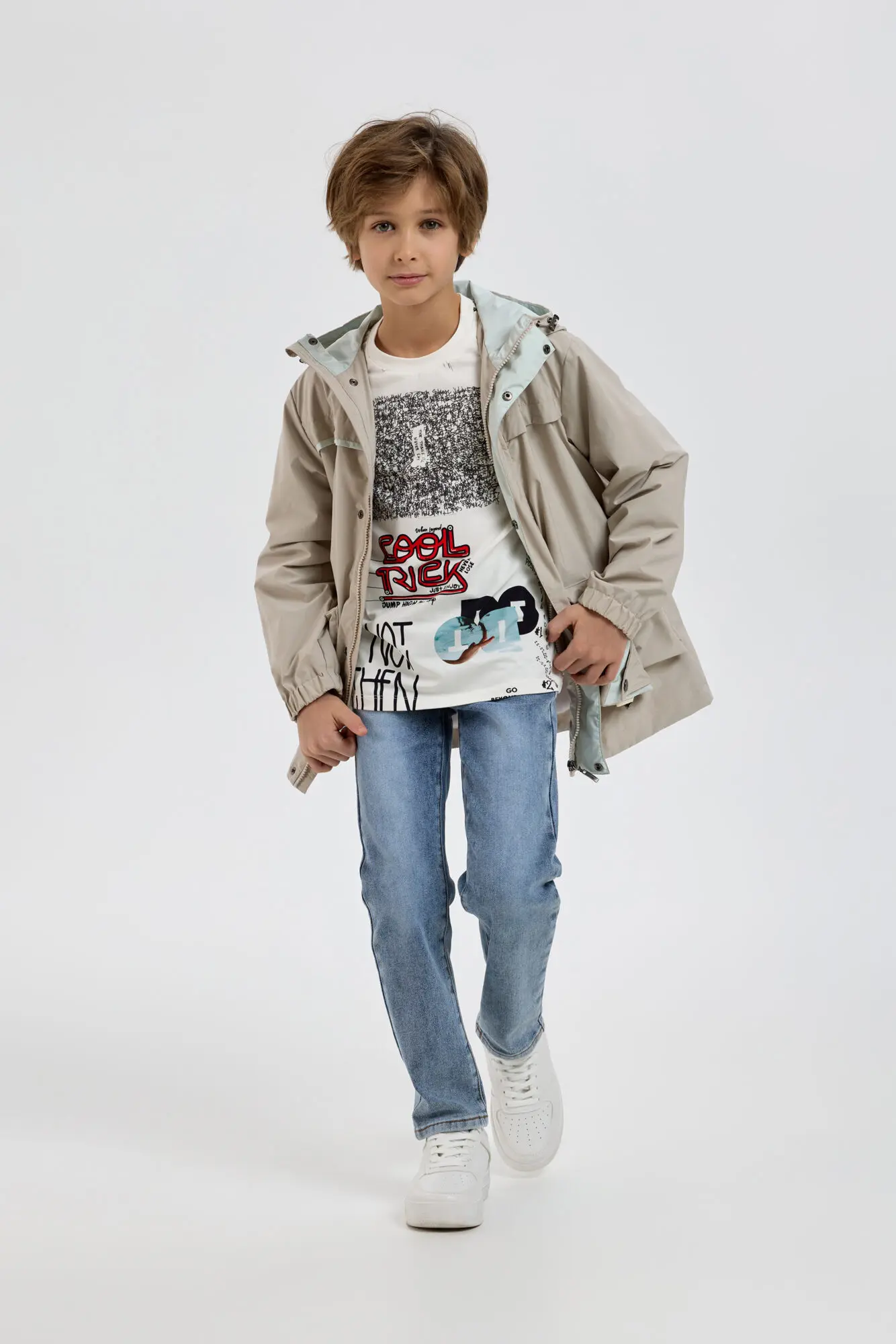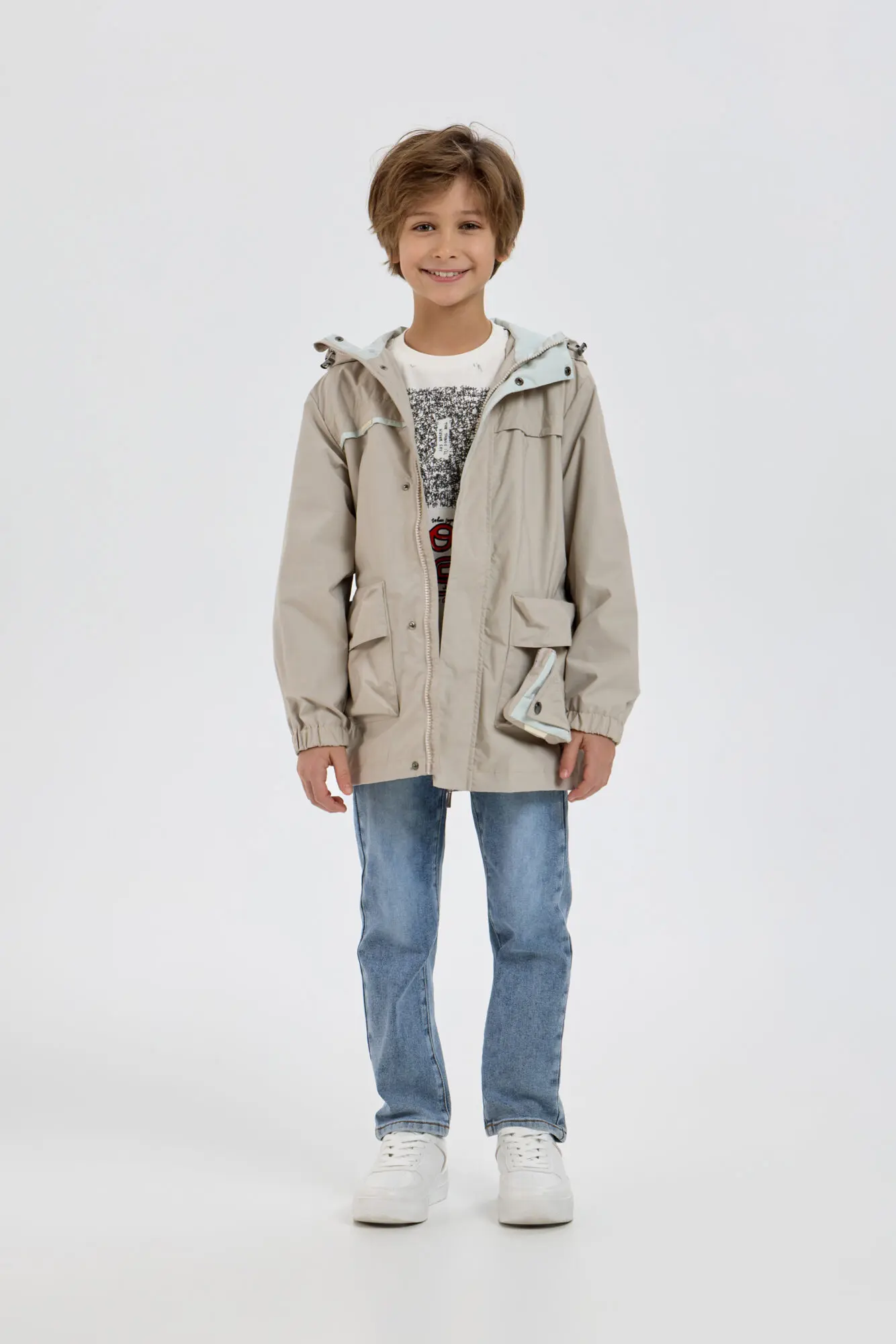 Ветровка для мальчика — это базовый элемент одежды, позволяющий формировать сдержанные и современные образы для города. Такая облегченная куртка станет отличным дополнением весеннего гардероба подростка. Конструктивные ... особенности: комбинированная застежка (молния и пуговицы), вместительные накладные карманы. Регулируемый капюшон обеспечит защиту от пронизывающего ветра. Внутренняя часть изделия изготовлена из смесовых материалов: хлопка и вискозы.