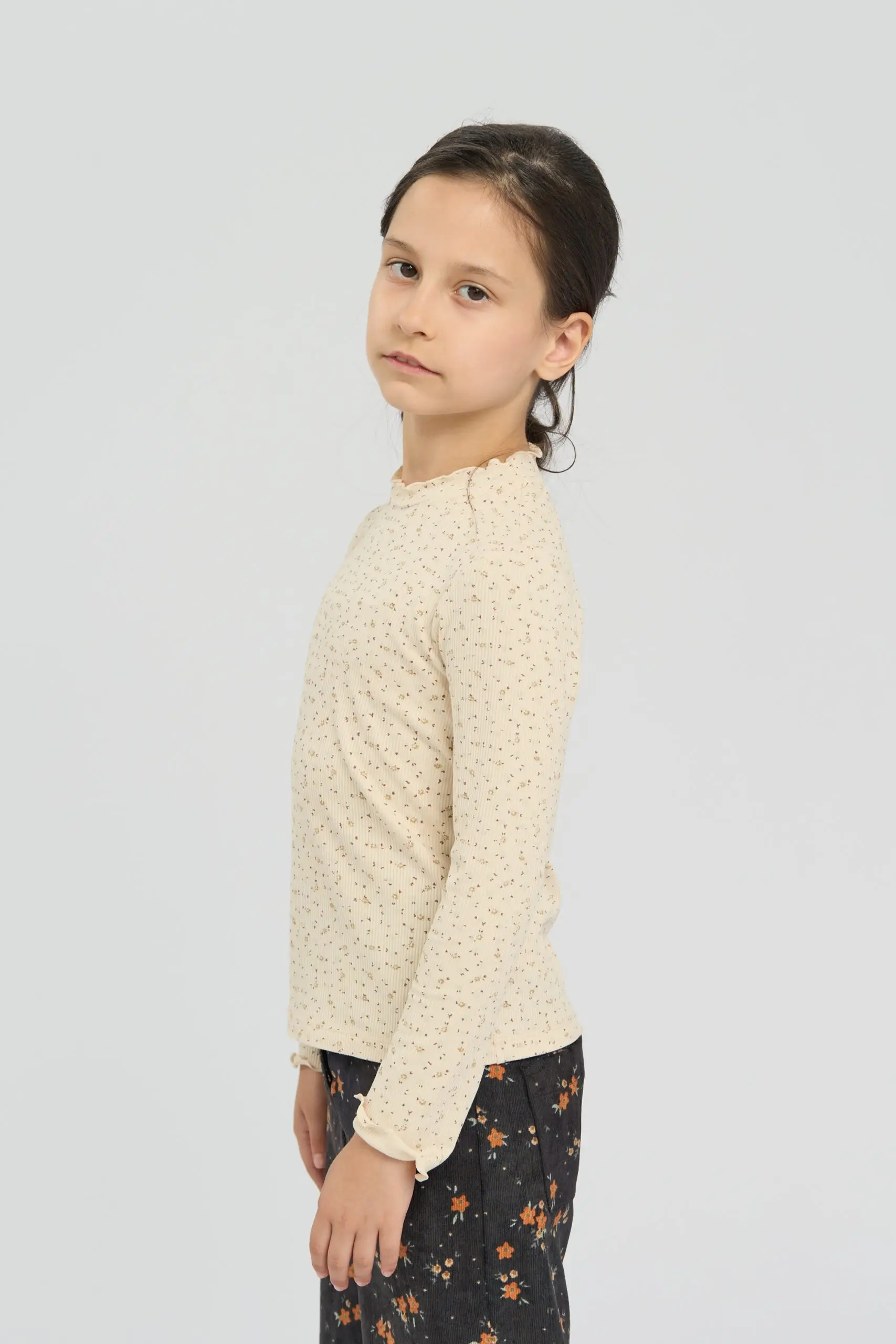 Водолазка из трикотажа «лапша» выполнена из ткани в нежном цвете экрю. Украшает дизайн милый цветочный принт. Удобный крой и длинные рукава позволяют ребенку свободно двигаться. Благодаря ... элегантному дизайну и качеству исполнения, водолазка станет незаменимым элементом детского гардероба. Модель гармонично комбинируется с джинсами, юбками или шортами.
