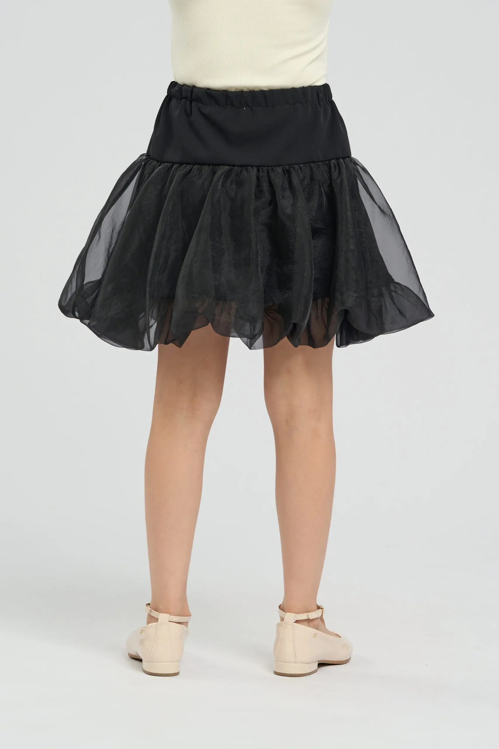 Юбка-баллон для девочки изготовлена из ткани универсального черного цвета. Она отличается пышной формой, создающей объемный силуэт, что придает образу игривость. Пояс с утягивающей кулисой обеспечивает комфортную ... посадку. Подкладка из вискозы приятна детской коже. Черный цвет делает юбку универсальной: ее можно сочетать с различными топами и аксессуарами, создавая как повседневные, так и праздничные образы.