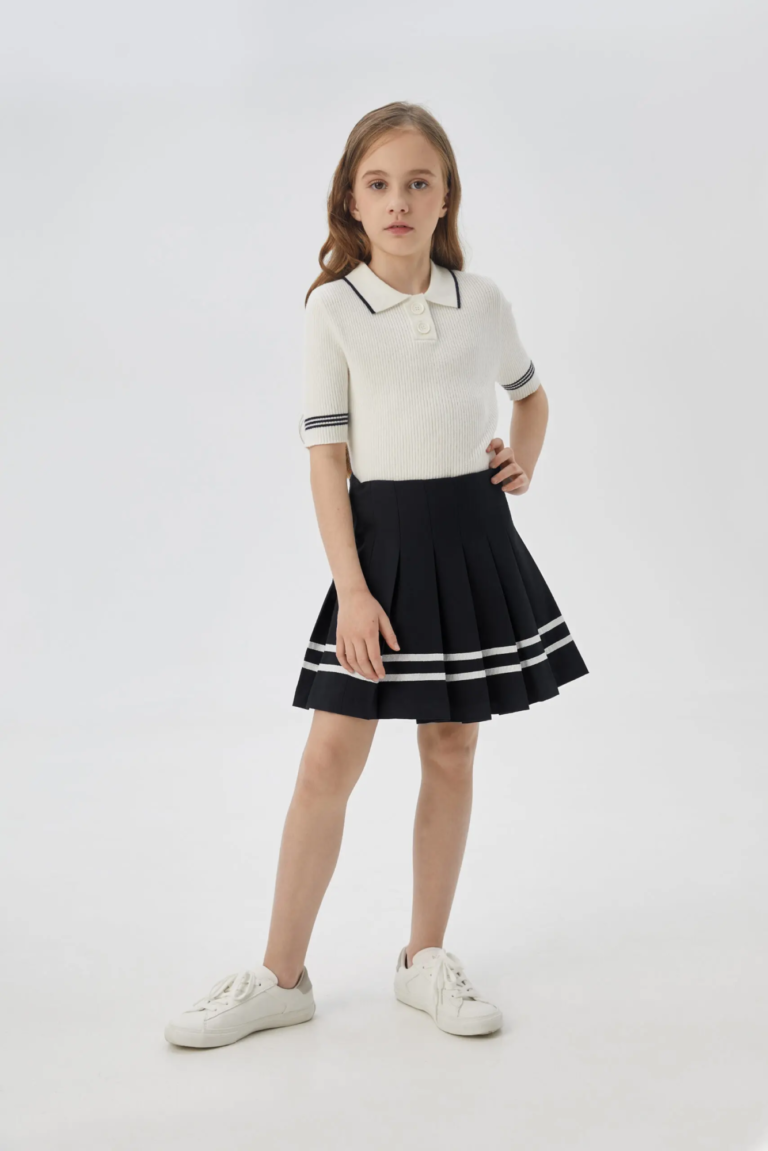 Модная юбка в складку может дополнить как повседневный, так и школьный гардероб. Модель хорошо сочетается с любыми блузками и футболками.