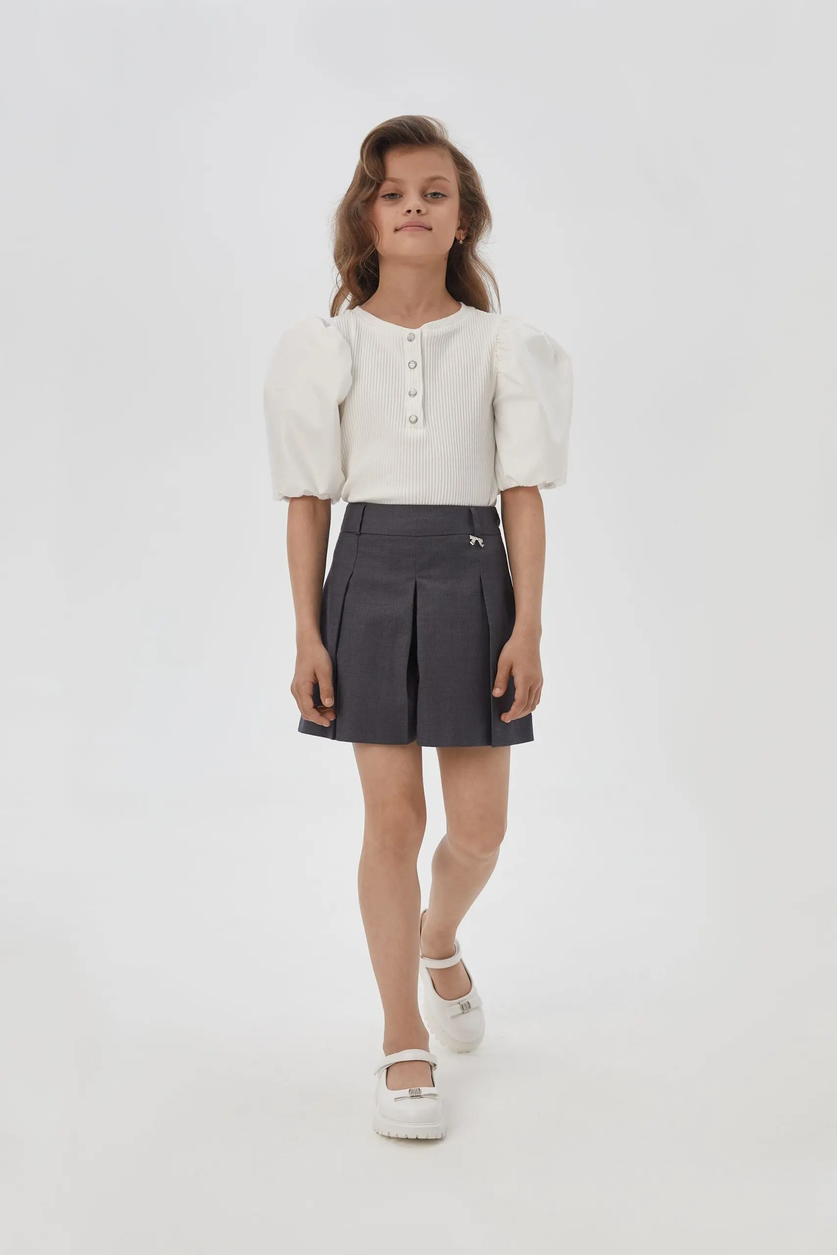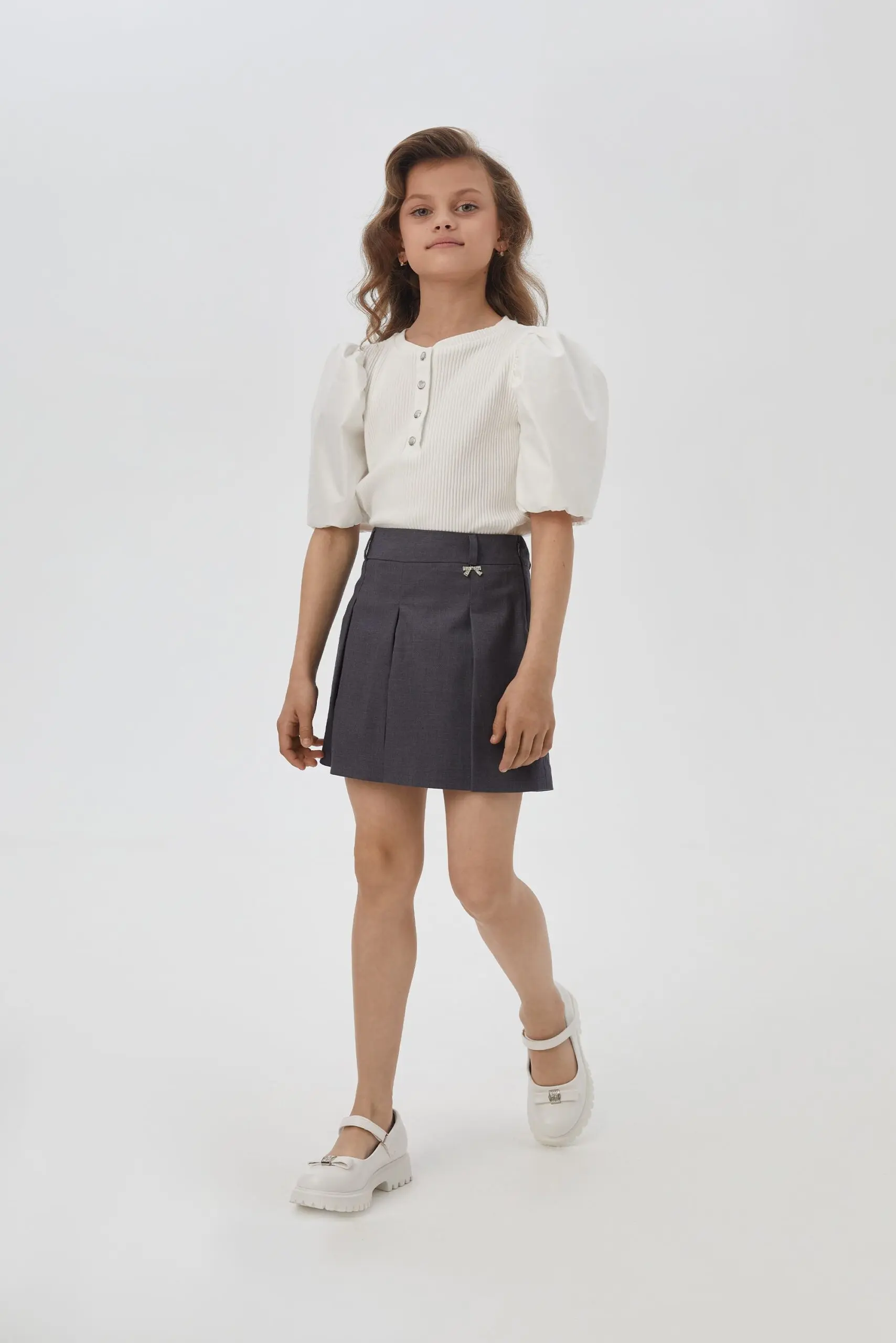 Стильная юбка-шорты для девочек – это комфортное и функциональное решение для школьных будней. Изделие выполнено из высококачественной смесовой ткани. Вискозная подкладка с хорошей воздухопроницаемостью гарантирует дополнительный ... комфорт при носке. Характерные черты модели: широкие складки, регулируемый пояс для удобной посадки, шлевки для ремня, застежка-молния. Необычный акцент – украшение в виде бантика.