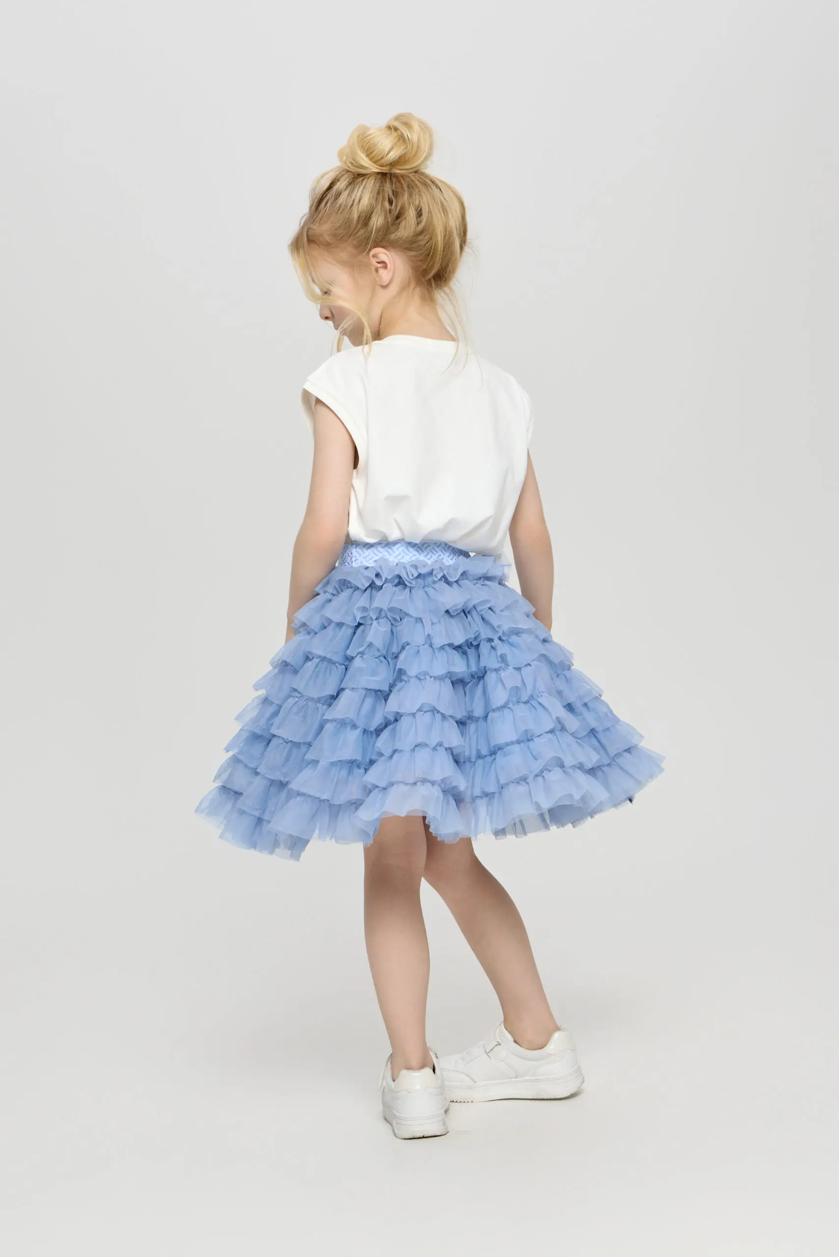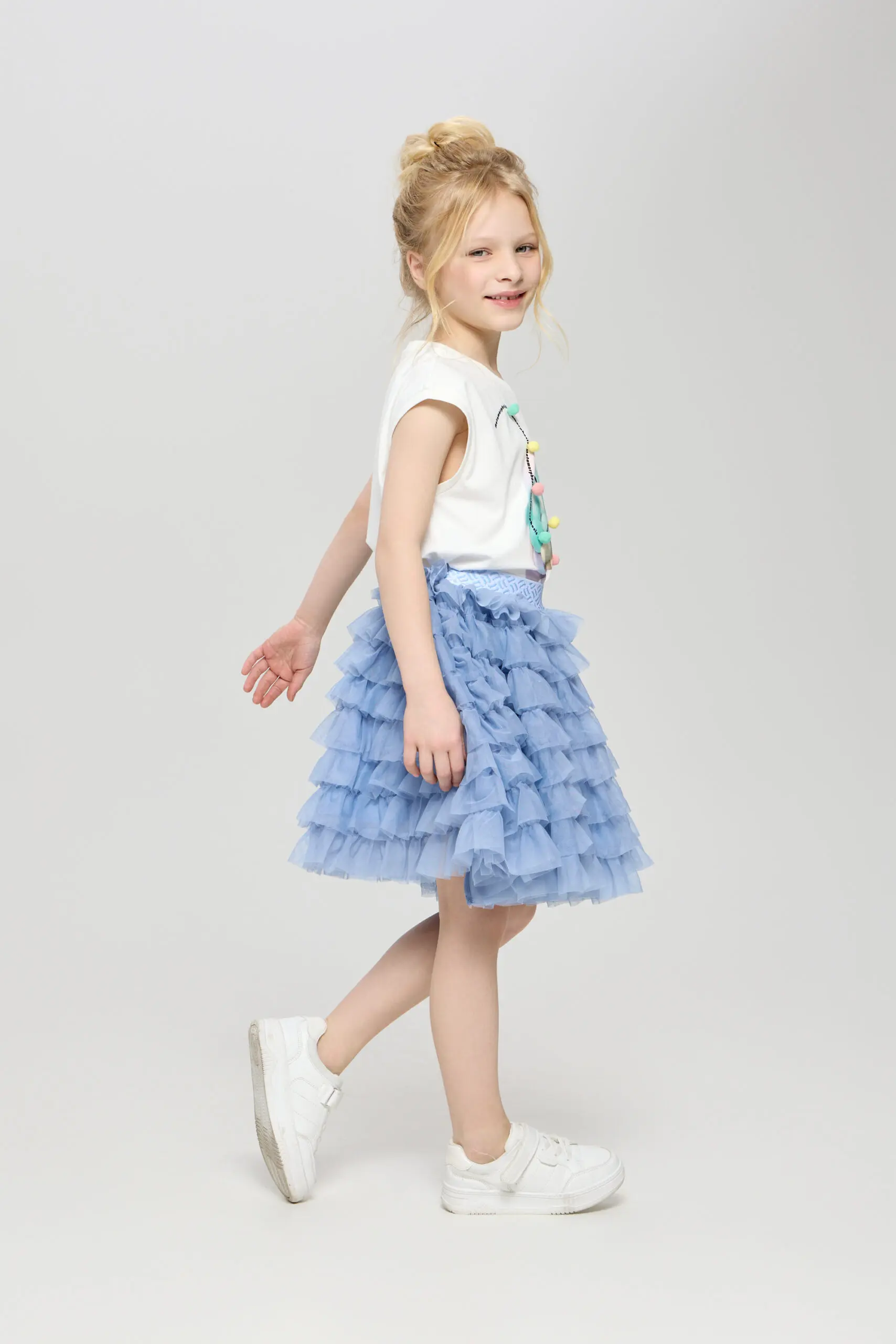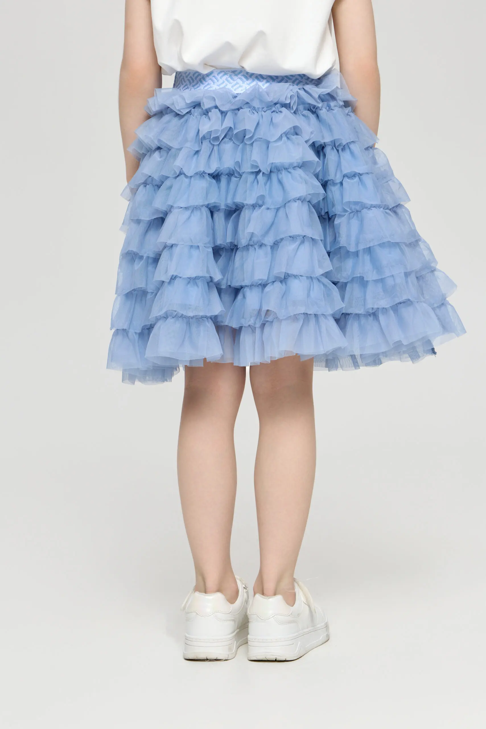Многоярусная юбка в васильковом цвете станет ярким акцентом в гардеробе девочки. Каждый ярус юбки добавляет объем и динамику. Эластичный пояс обеспечивает удобную посадку, позволяя юбке идеально ... сидеть на талии. Модель прекрасно сочетается с различными топами и блузками, позволяя создавать разнообразные образы.