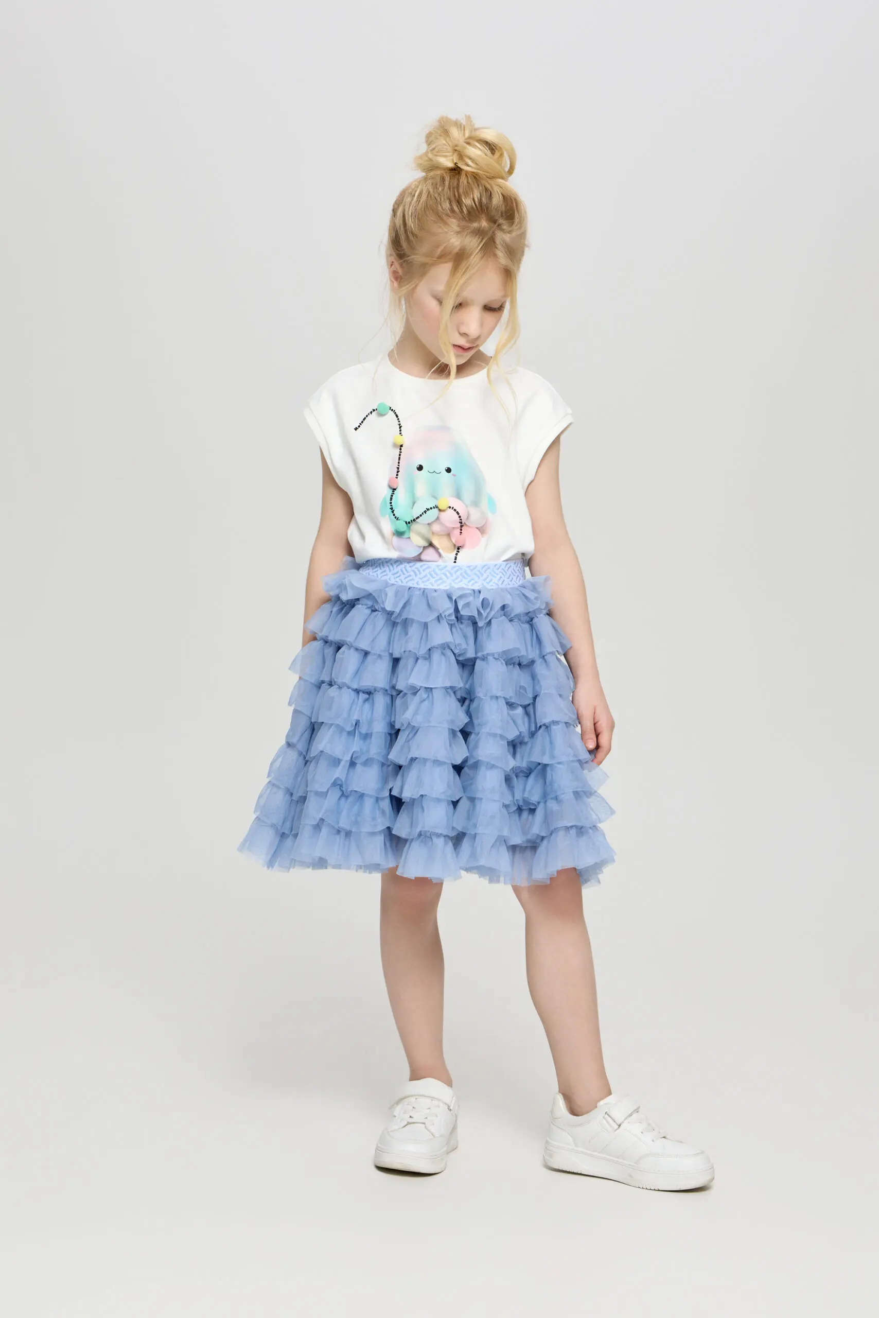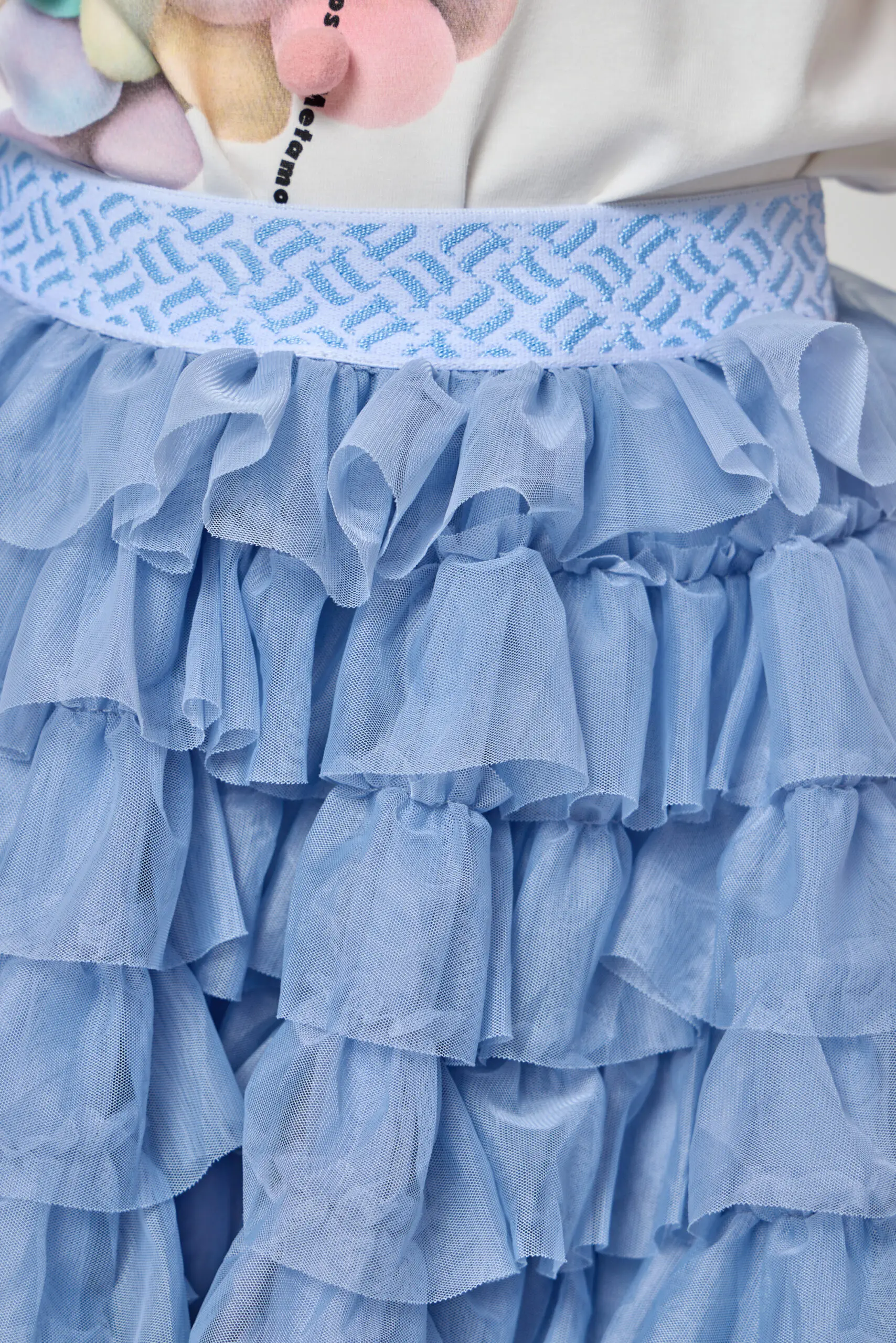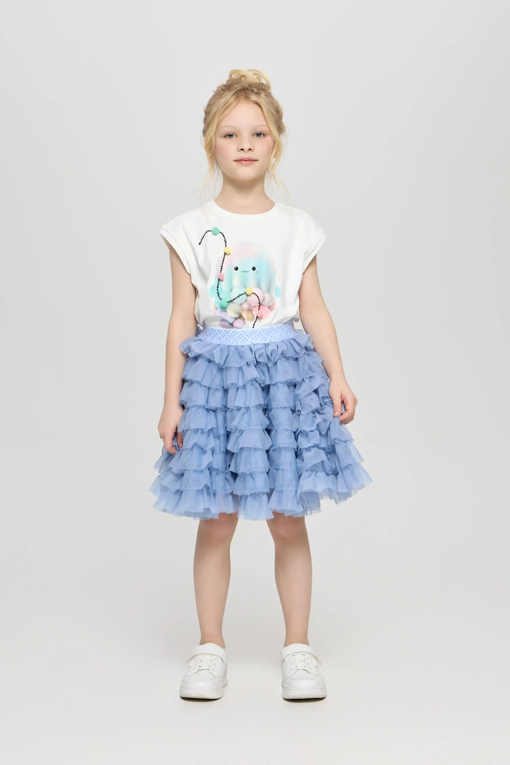 Многоярусная юбка в васильковом цвете станет ярким акцентом в гардеробе девочки. Каждый ярус юбки добавляет объем и динамику. Эластичный пояс обеспечивает удобную посадку, позволяя юбке идеально ... сидеть на талии. Модель прекрасно сочетается с различными топами и блузками, позволяя создавать разнообразные образы.