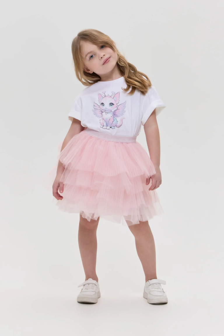 Многоярусная юбка для девочки выполнена в розовом цвете. Юбка состоит из нескольких слоев, что придает ей объем и динамичность. Розовый цвет добавляет наряду нежности и игривости, ... делая его подходящим как для повседневной носки, так и для особых случаев. Эластичный пояс обеспечивает комфортную посадку и легкость в использовании.
