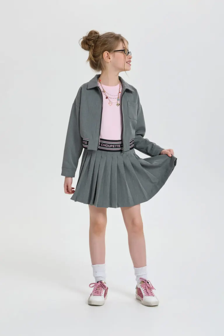 Юбка в складку для девочки– это проверенный временем и функциональный вариант для гардероба. Благодаря своему нейтральному серому оттенку, она без труда комбинируется с разнообразными блузками, свитшотами, ... водолазками, пиджаками и куртками, что превращает её в ключевую вещь для создания множества образов. Модель отличается завышенной талией и удобной эластичной резинкой, гарантирующей комфортную фиксацию на талии. Дизайн юбки выполнен в стиле плиссе. Произведена юбка из качественного смесового материала,который сохраняет форму и не требует сложного ухода.