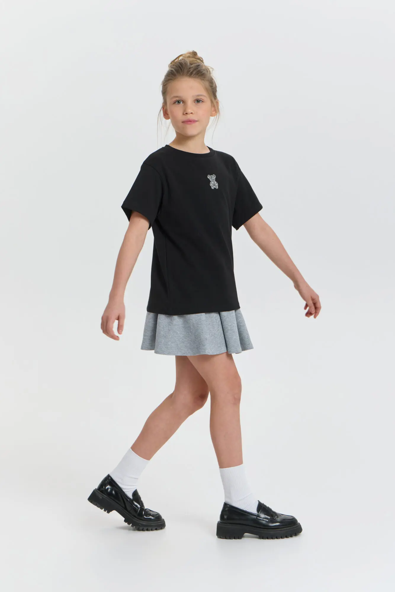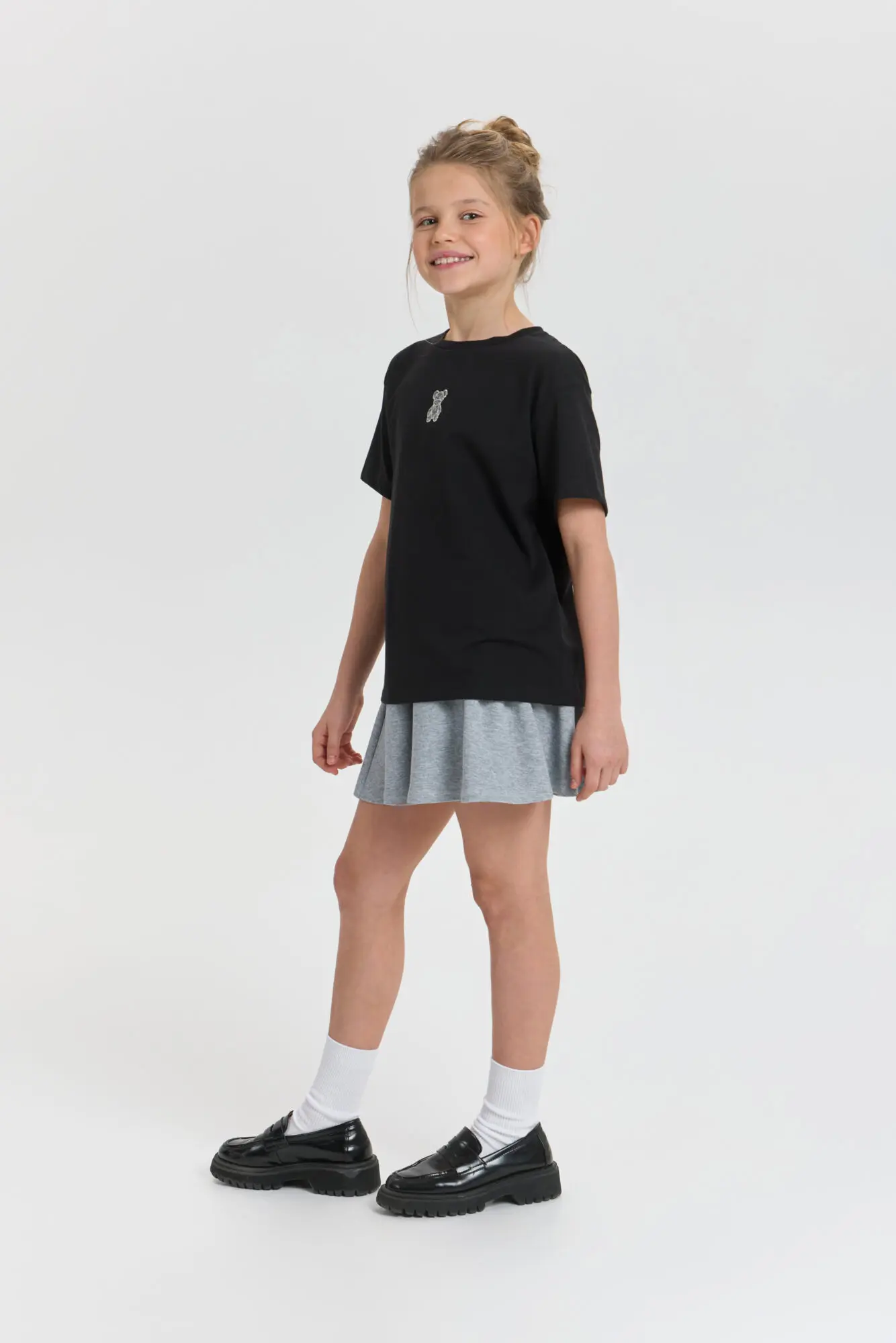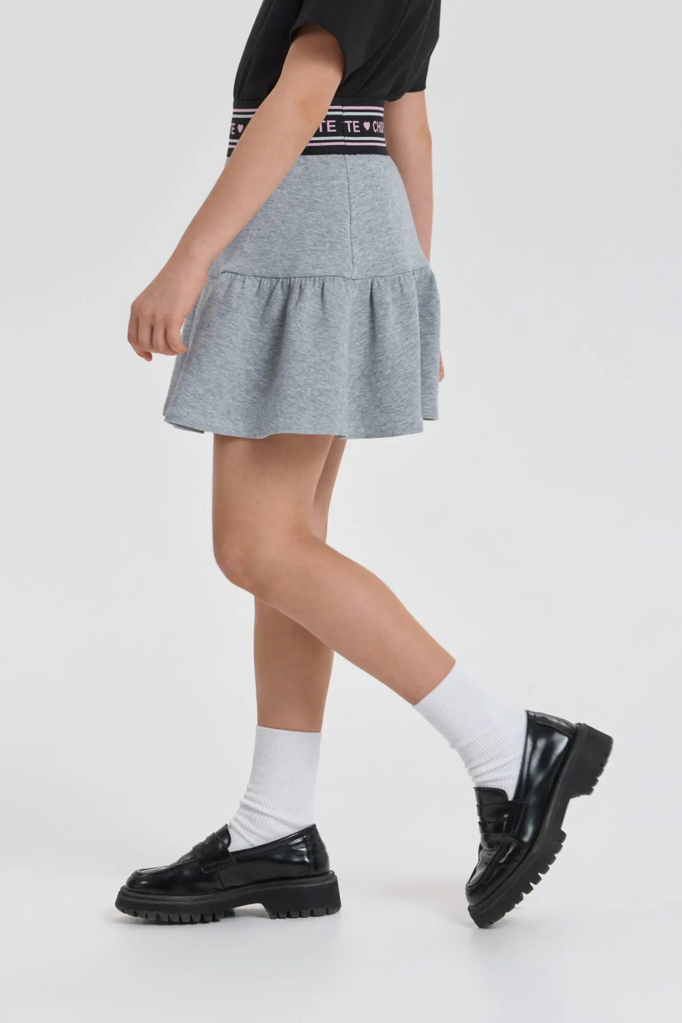 Модная юбка с широким воланом для девочки – это стильный и практичный вариант, который подойдет как для ежедневного использования, так и для торжественных случаев. Фасон – ... свободный. Эластичная широкая резинка на поясе гарантирует идеальную посадку. Объемная оборка в нижней части придает юбке легкость и воздушность. Нейтральный серый оттенок позволяет сочетать эту модель с разнообразными предметами гардероба различных цветов.
