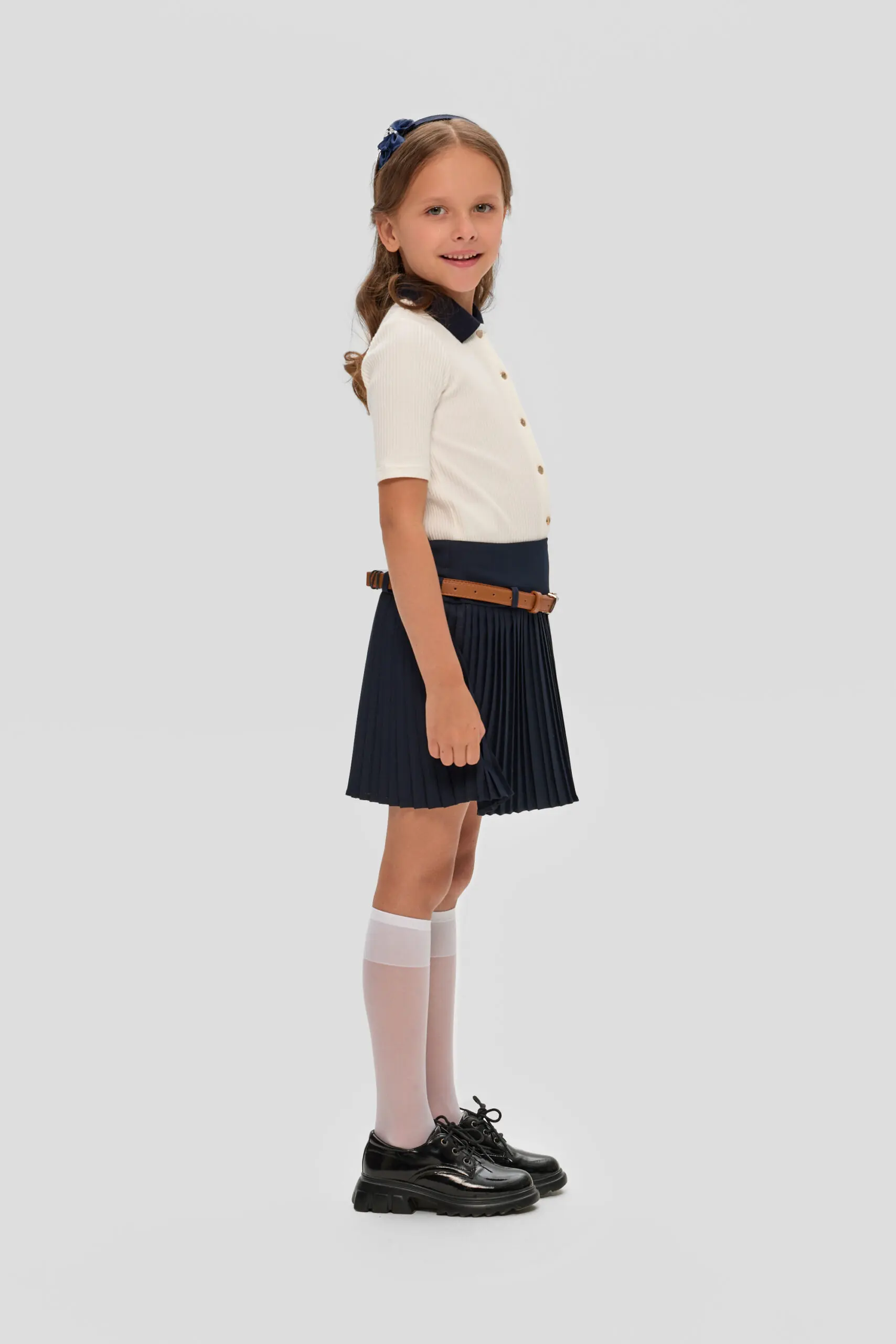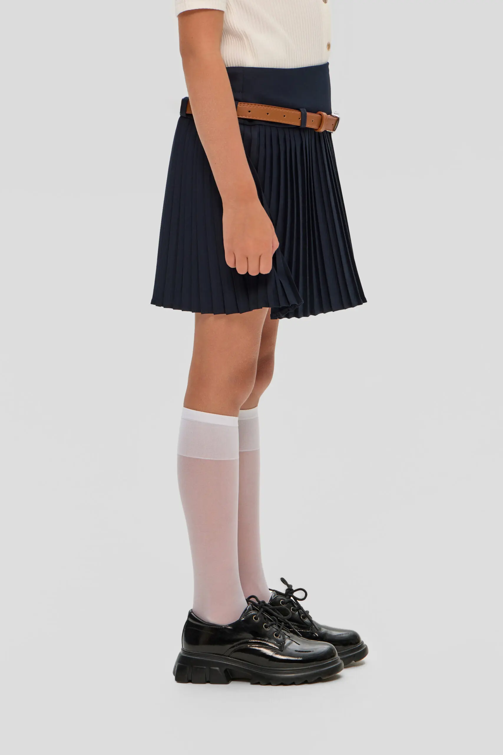 Школьная юбка плиссе – это неизменная классика, которая никогда не выходит из моды. Модель с кокеткой и модным ремнем – отличный вариант для создания стильного школьного ... образа. Кокетка обеспечивает идеальную посадку юбки по фигуре. Ремень, в свою очередь, выполняет не только функциональную роль, поддерживая юбку на месте, но и является стильным акцентом завершающим образ. Модель изготовлена из высококачественной смесовой ткани, устойчивой к износу и скатыванию. Вискозная подкладка отличается мягкостью, хорошей воздухопроницаемостью.
