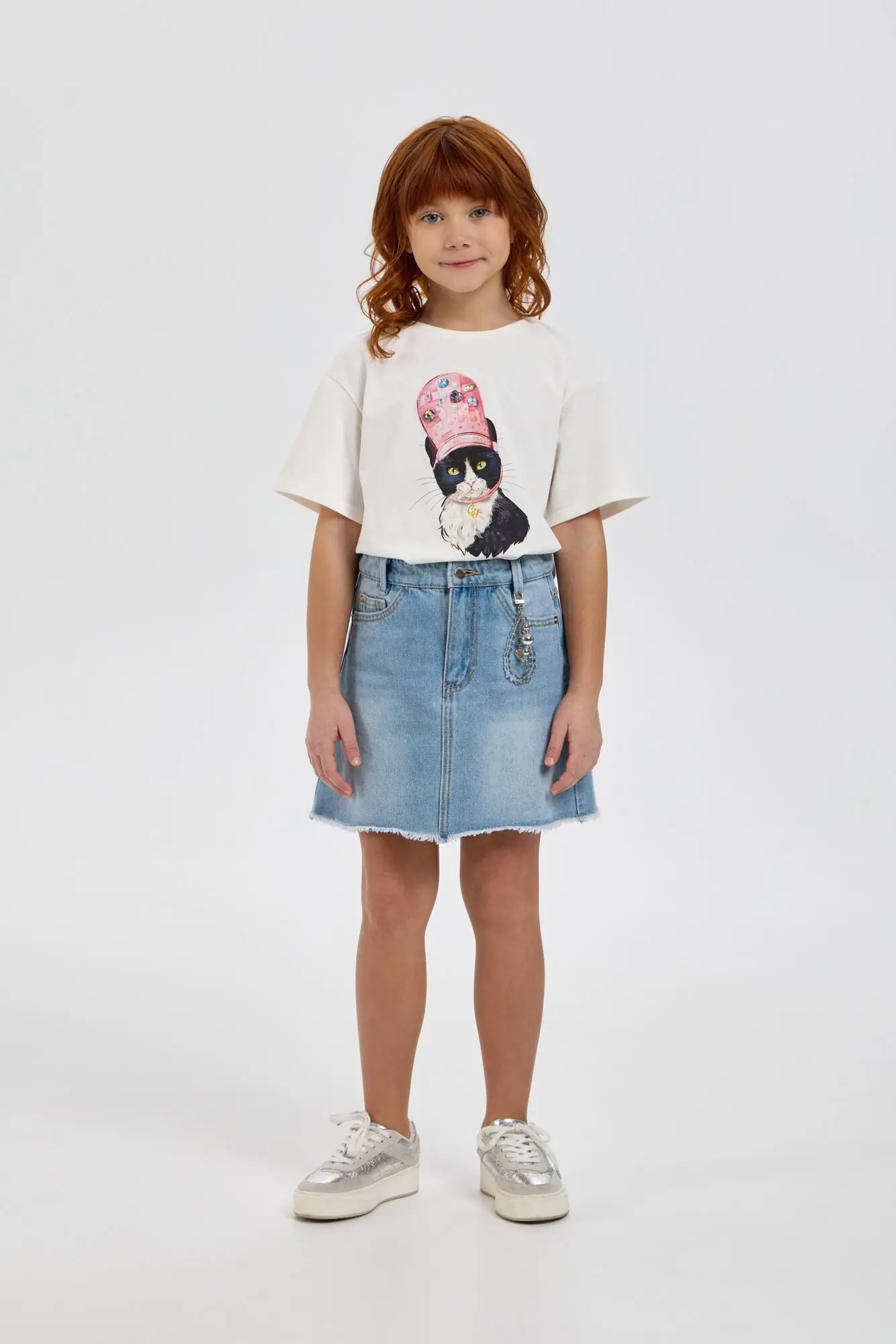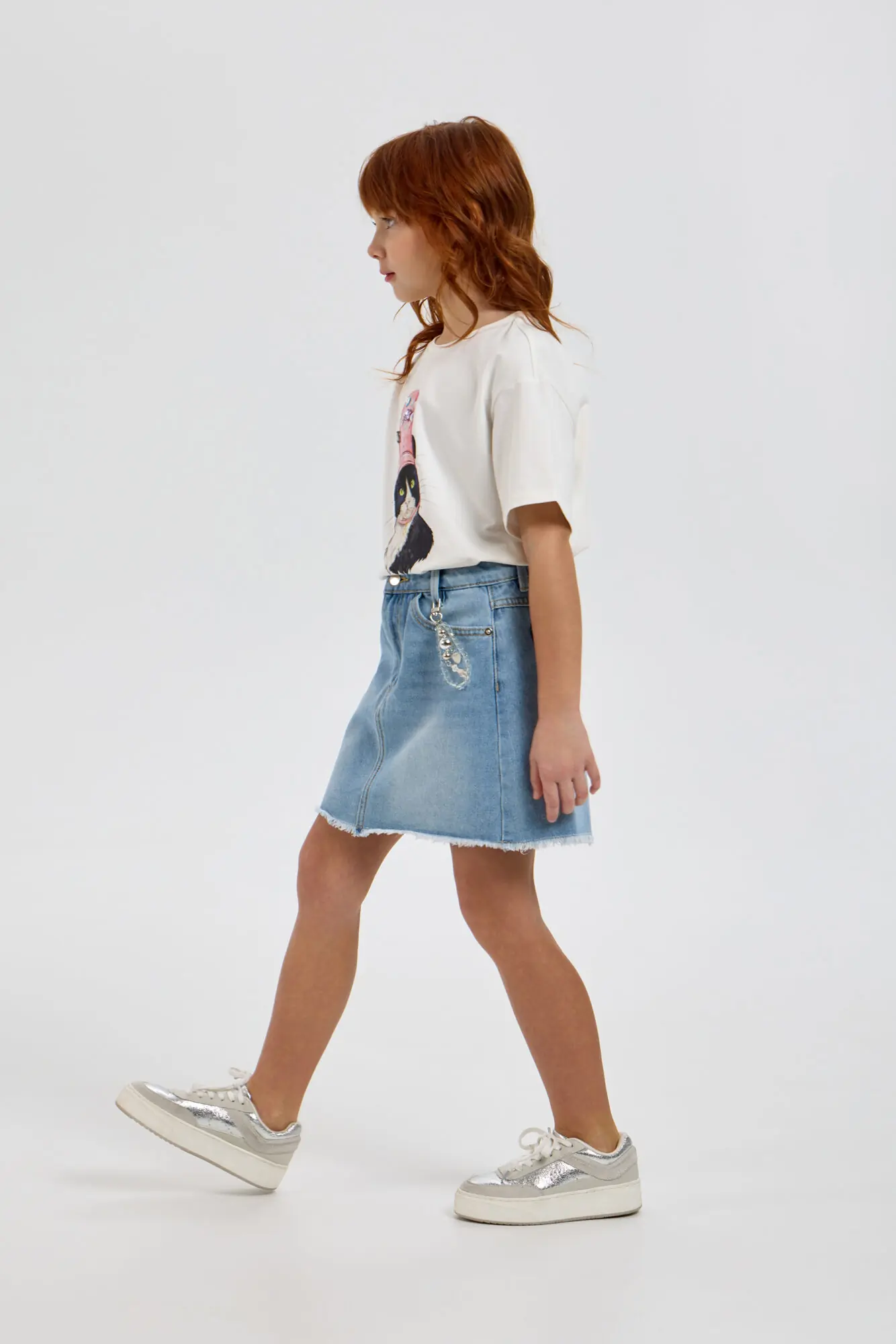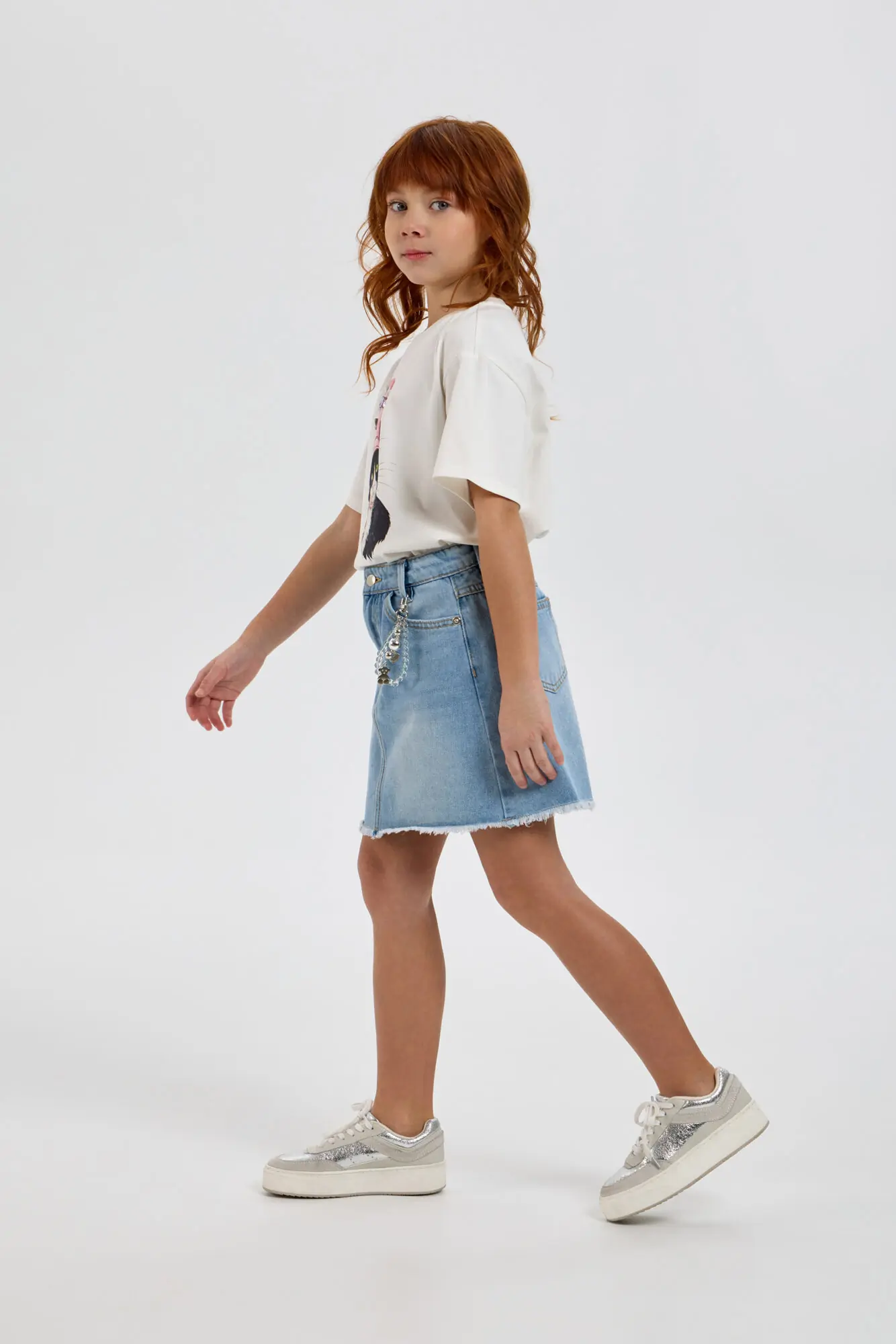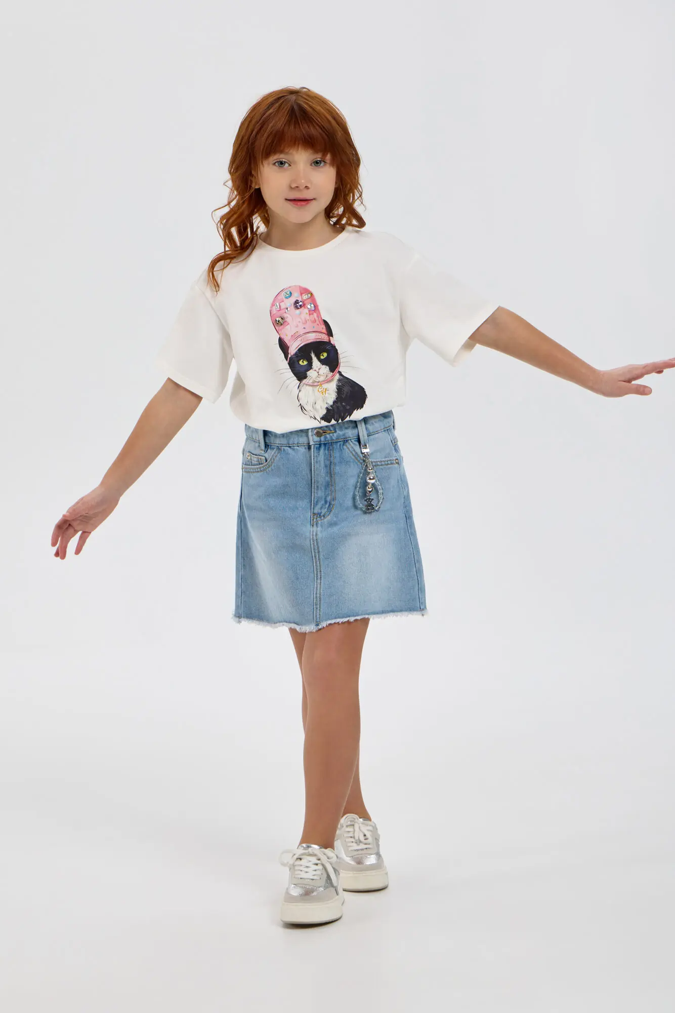 Юбка из денима – незаменимая вещь в ежедневном гардеробе девочки. Модель трапециевидного силуэта выглядит модно и актуально. Карманы, расположенные сбоку и сзади, делаю юбку не только ... красивой, но и удобной. Застежка на молнию и пуговицу, шлевки для ремня и возможность регулировки талии гарантируют идеальную посадку по фигуре ребенка. Стильный брелок завершает образ.