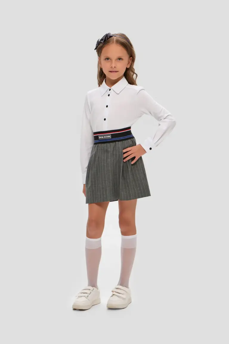 Современные дизайнеры, учитывая потребности юных модниц, разрабатывают изделия, которые позволяют выразить индивидуальность и чувство стиля даже при соблюдении школьного дресс-кода. Элегантная серая юбка в полоску для ... девочки - стильный, удобный и практичный элемент школьного гардероба. Модель изготовлена из смесовой ткани с вискозной подкладкой. Отличительными чертами юбки являются: широкий, контрастный пояс на эластичной резинке, боковые карманы и удобная молния сзади. Эта универсальная модель гармонично сочетается как со школьной одеждой, так и с повседневными вещами, например, джемперами и толстовками.