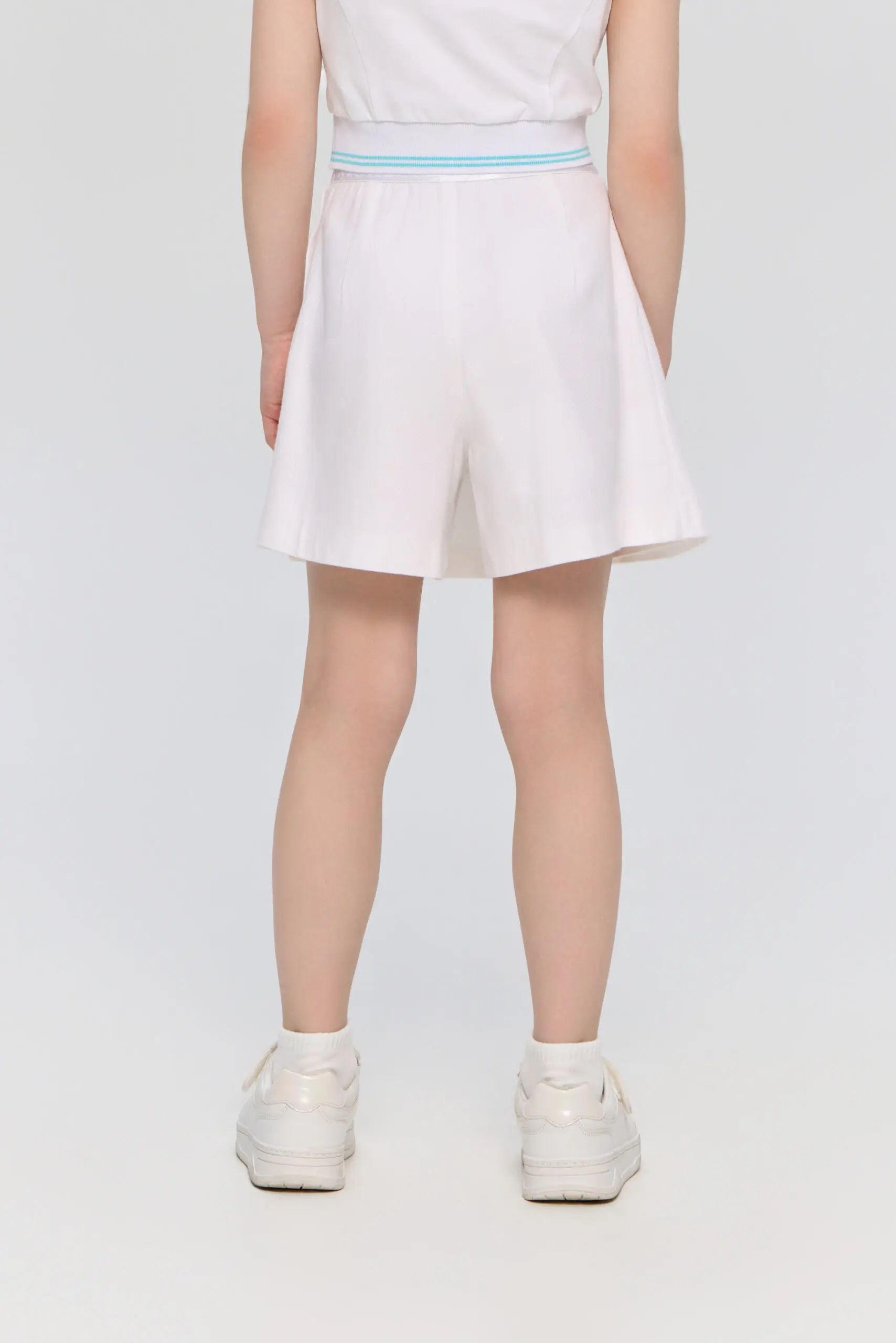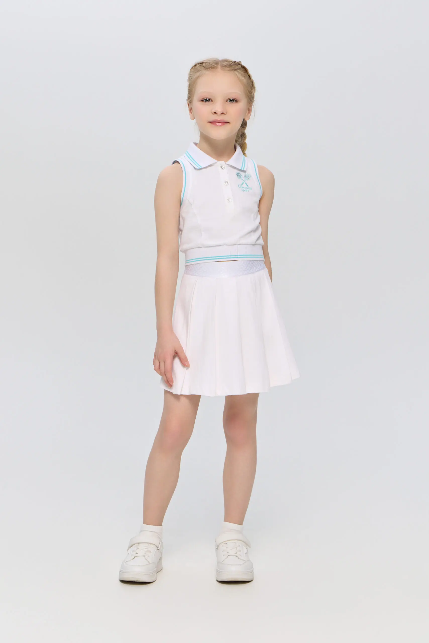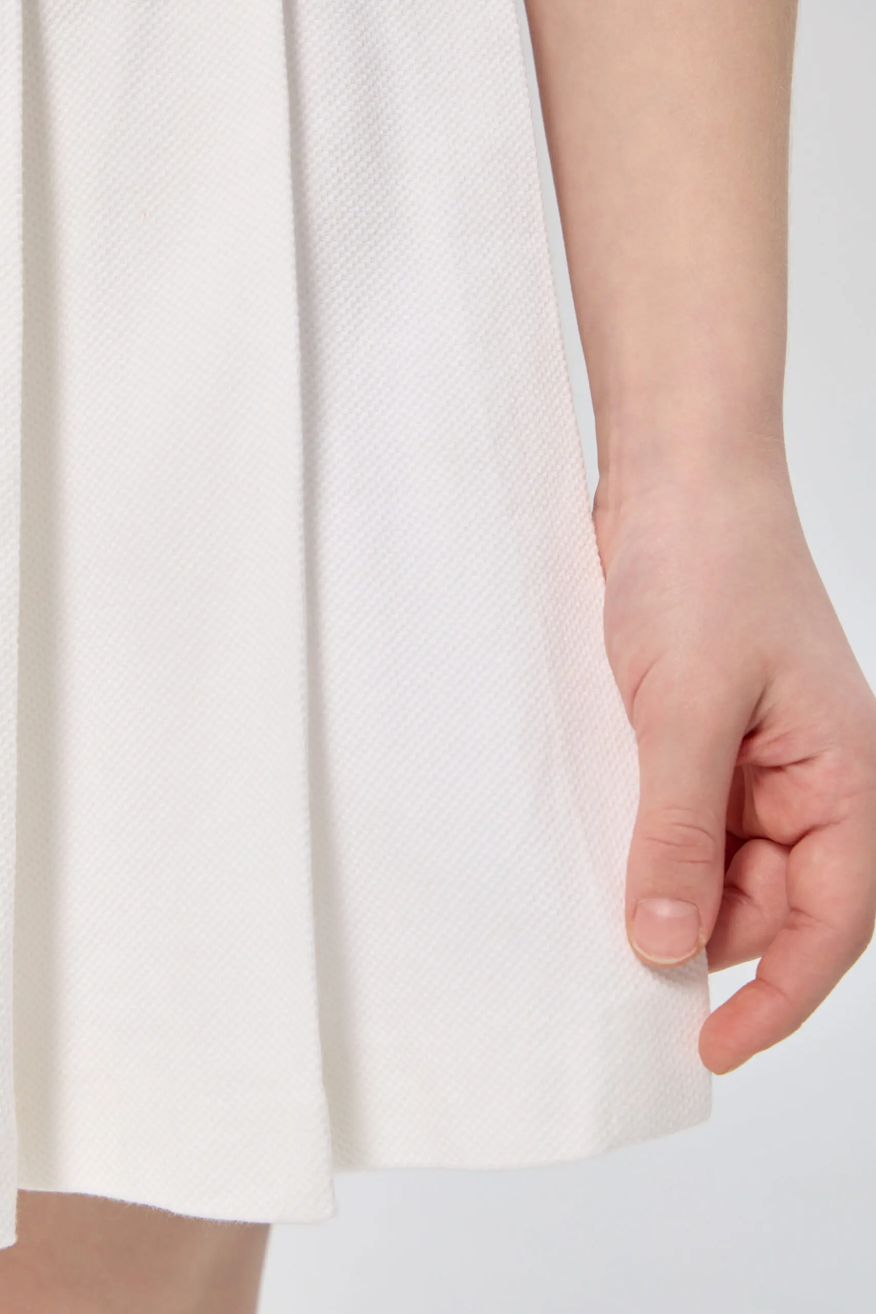 Юбка-шорты со складками, выполненная в белом цвете, идеально подходит для тенниса и других активных видов спорта. Благодаря продуманному крою, юбка-шорты не ограничивает движений, позволяя свободно выполнять ... маневры на корте. Аккуратные складки придают изделию элегантный вид. Эластичный пояс обеспечивает надежную фиксацию. Короткая длина позволяет легко передвигаться и выполнять любые спортивные элементы без ограничений.